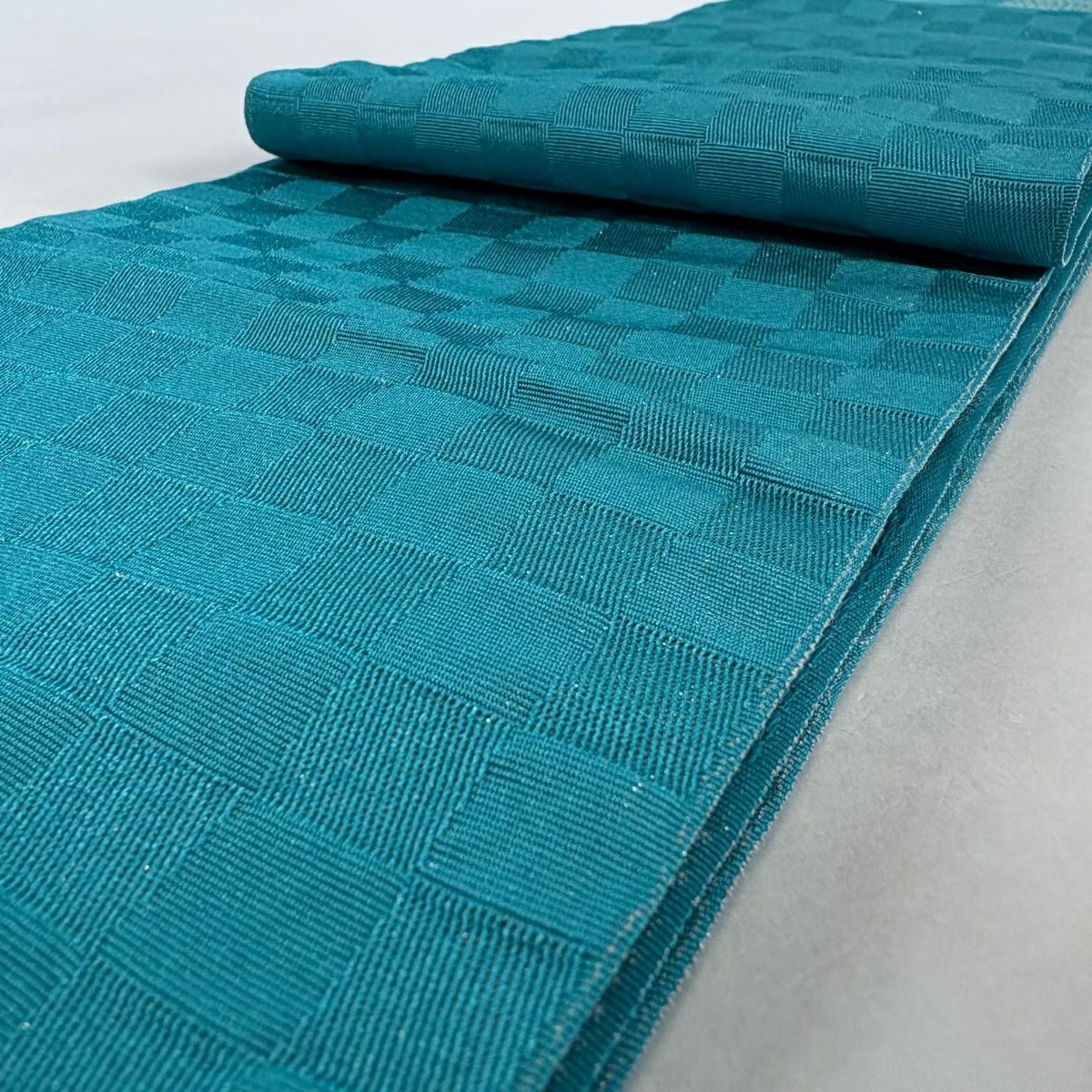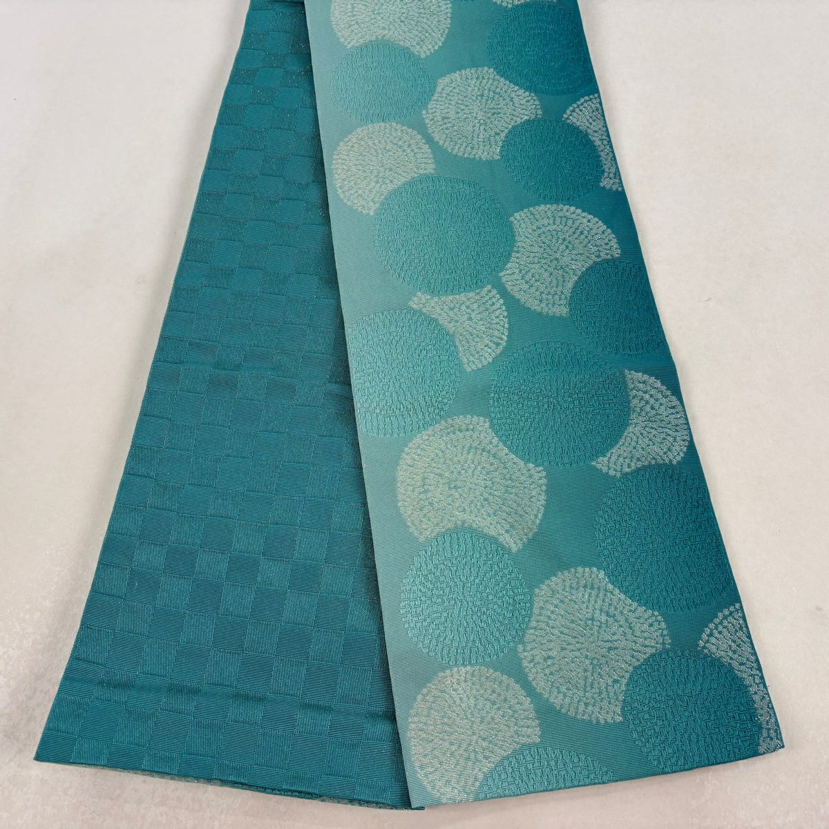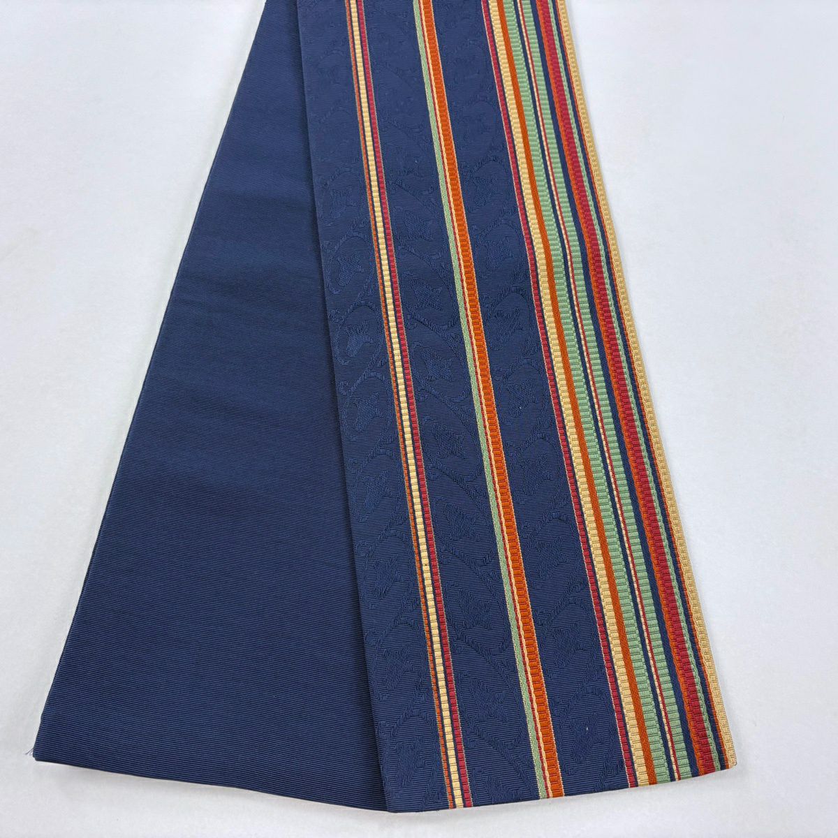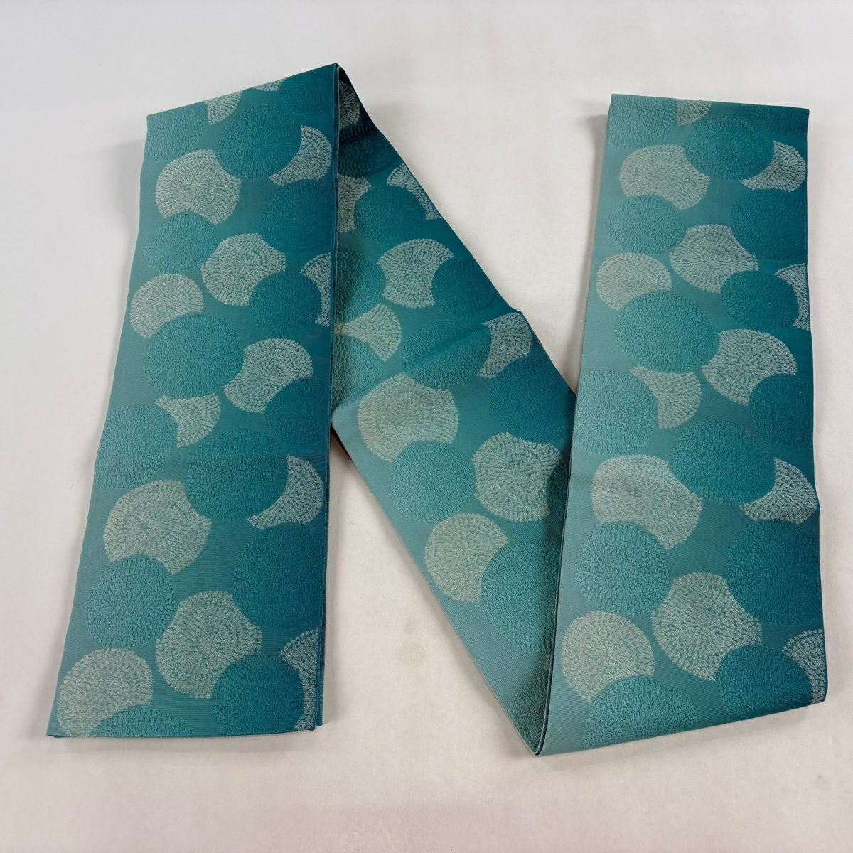 半幅帯 優品 唐草 縞 薄緑 化繊