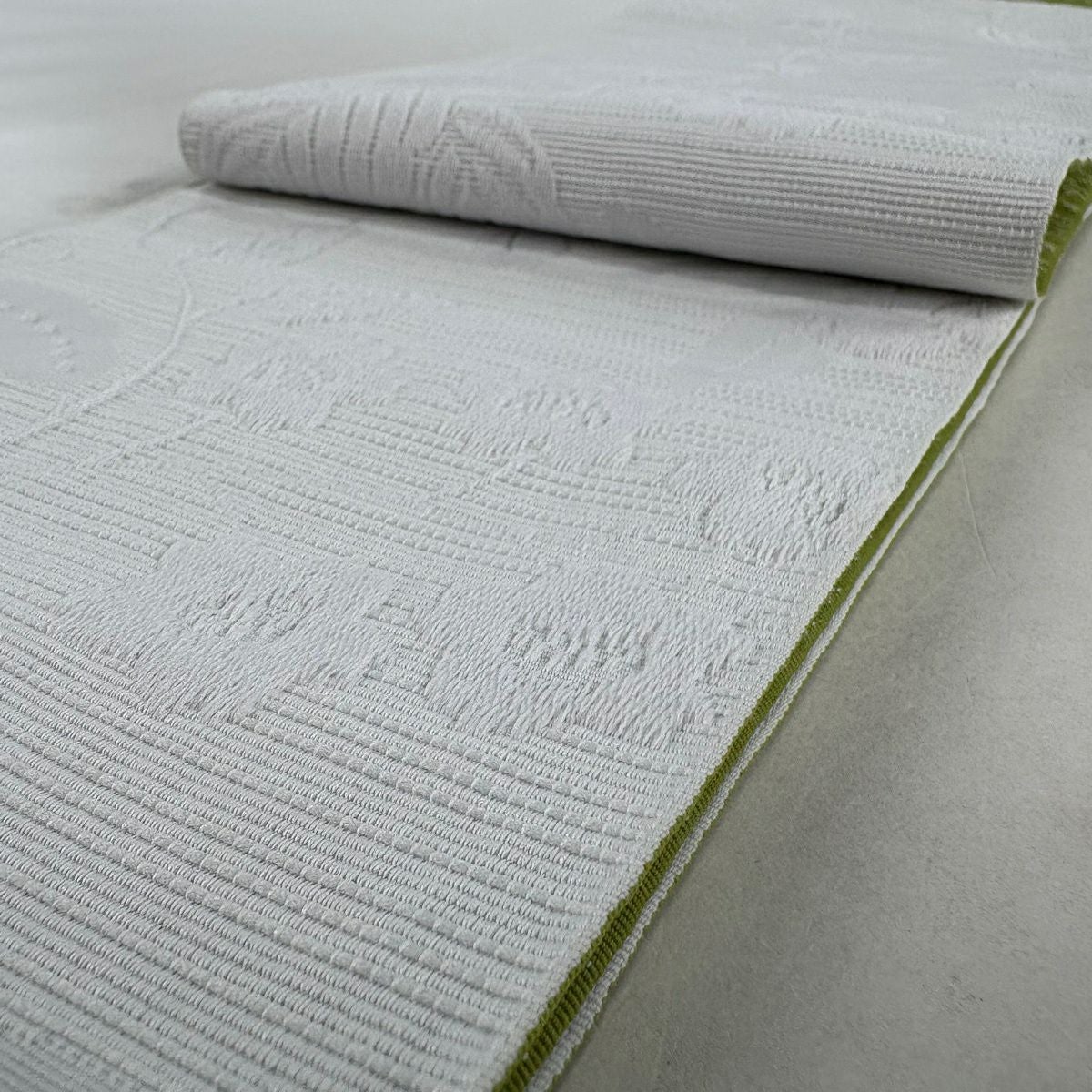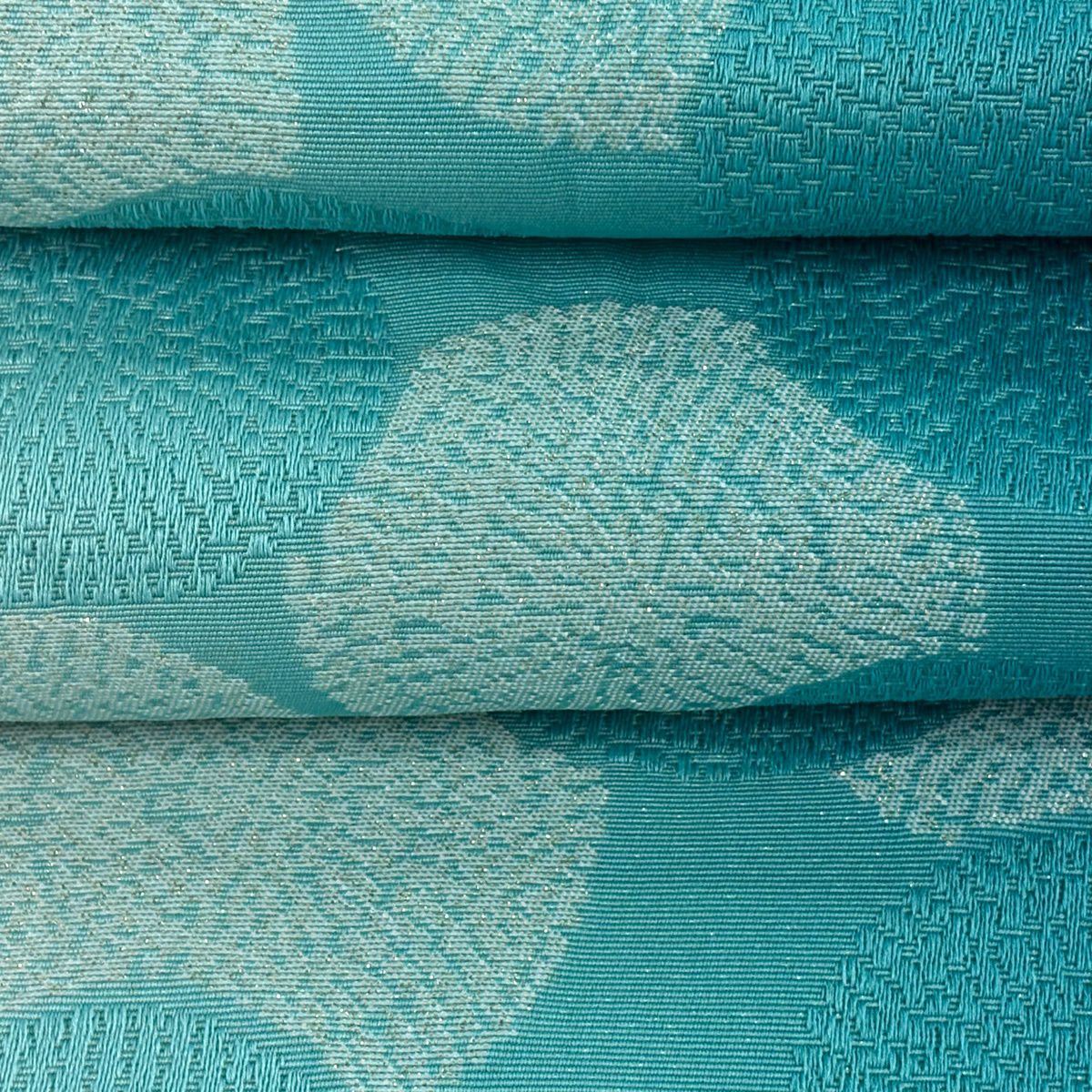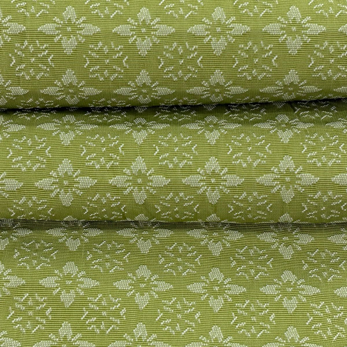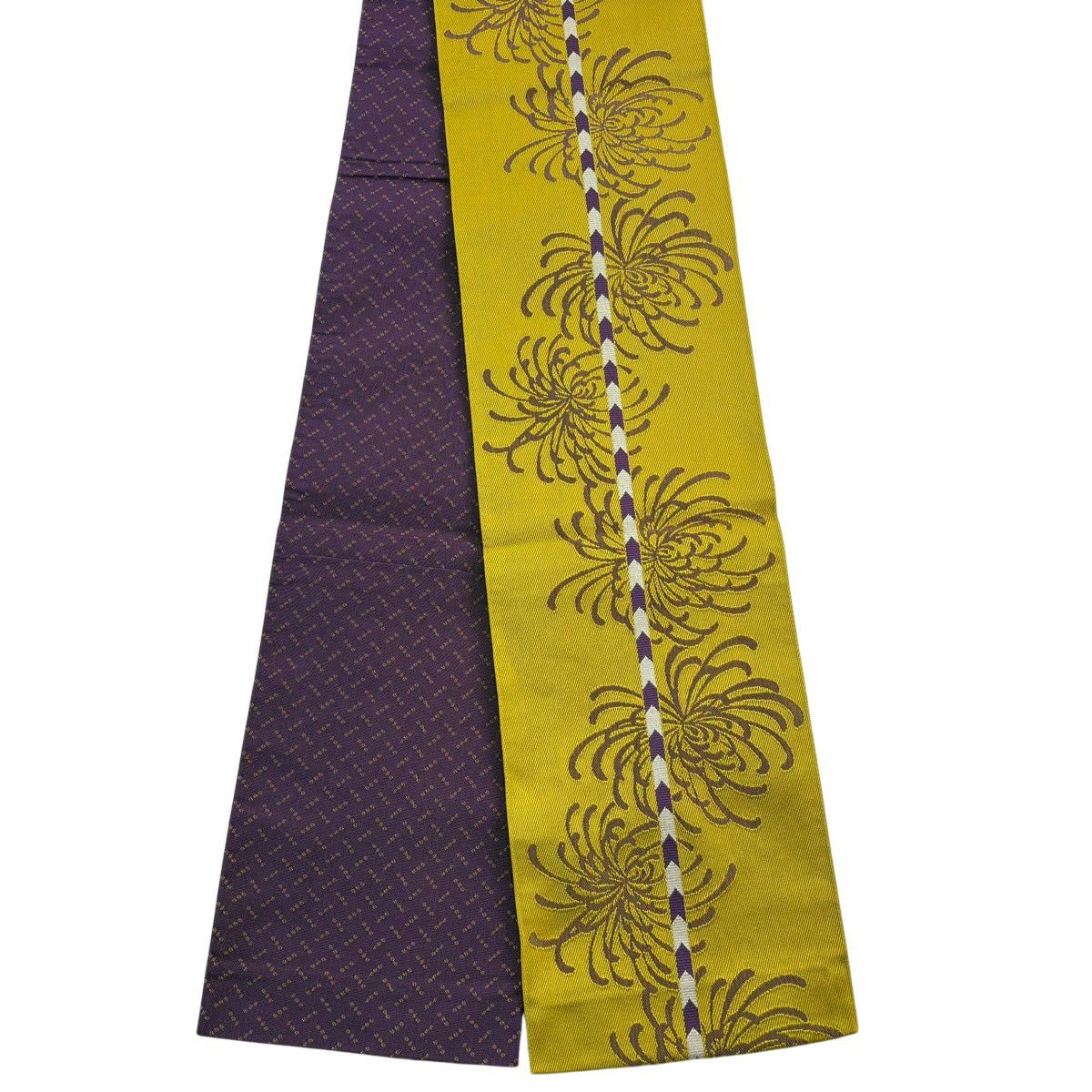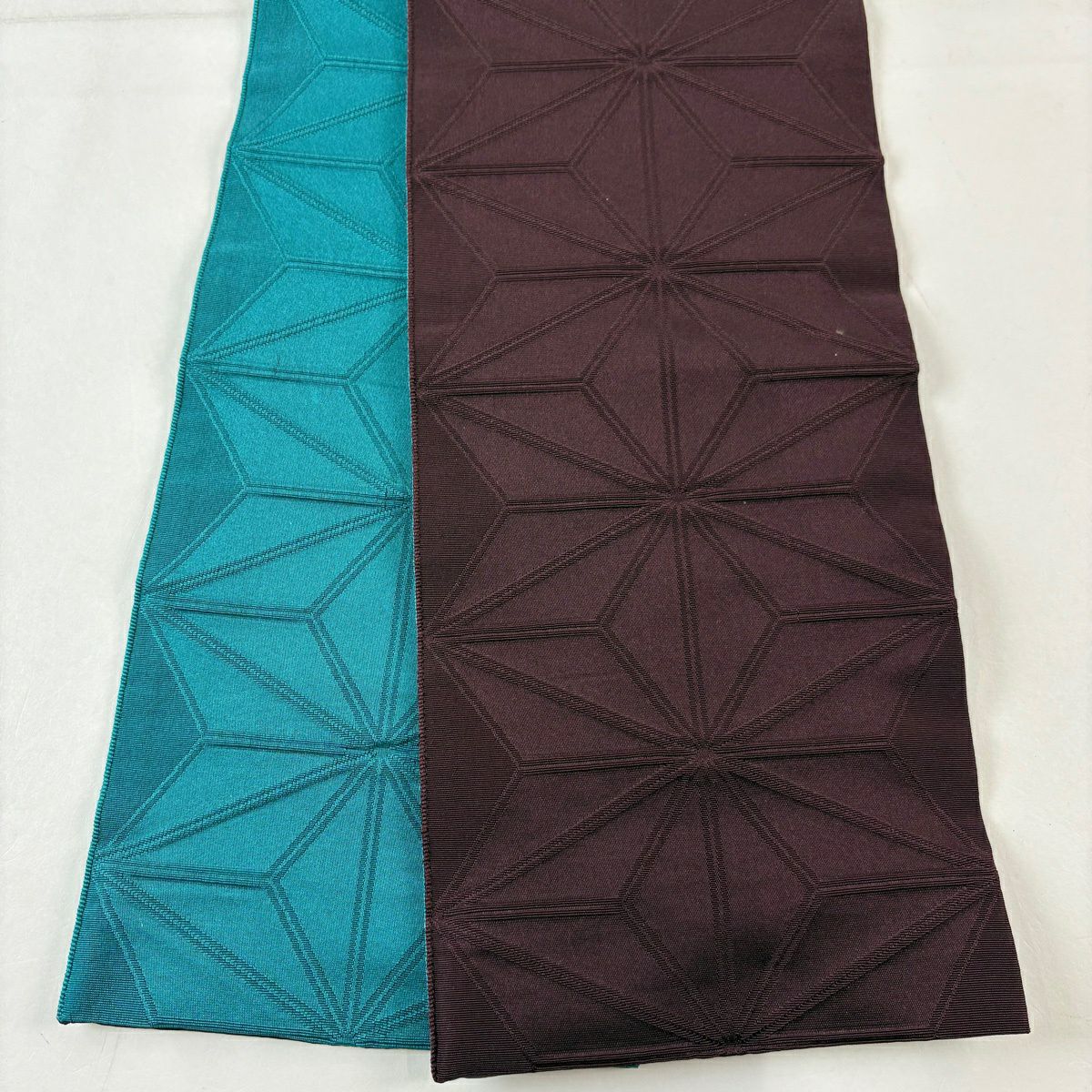 半幅帯 優品 唐草 縞 薄緑 化繊