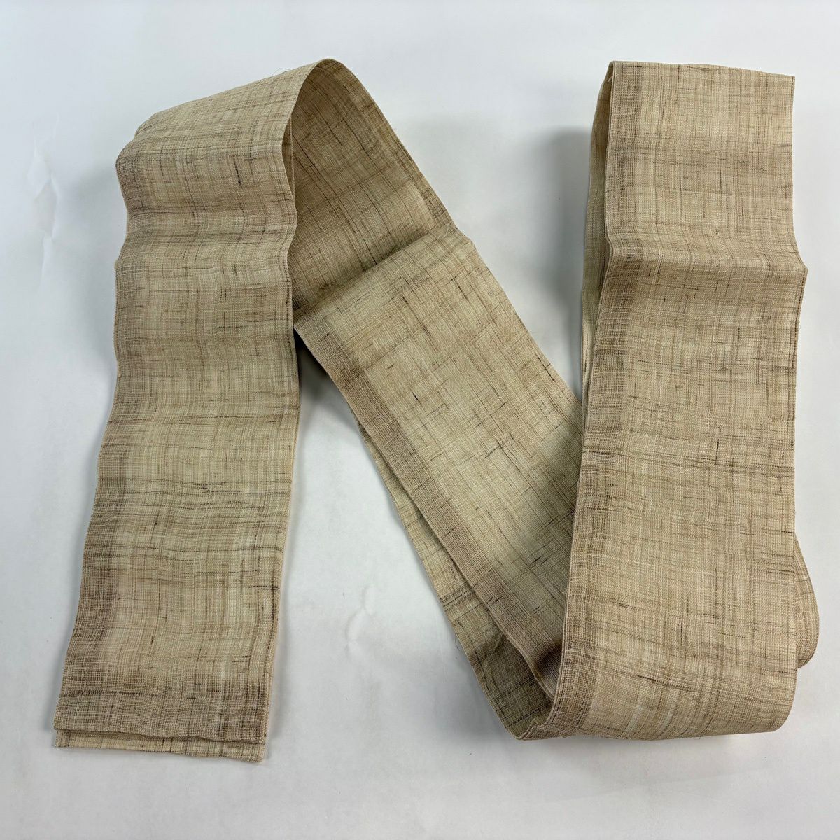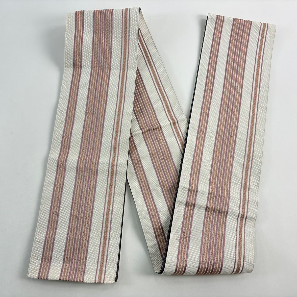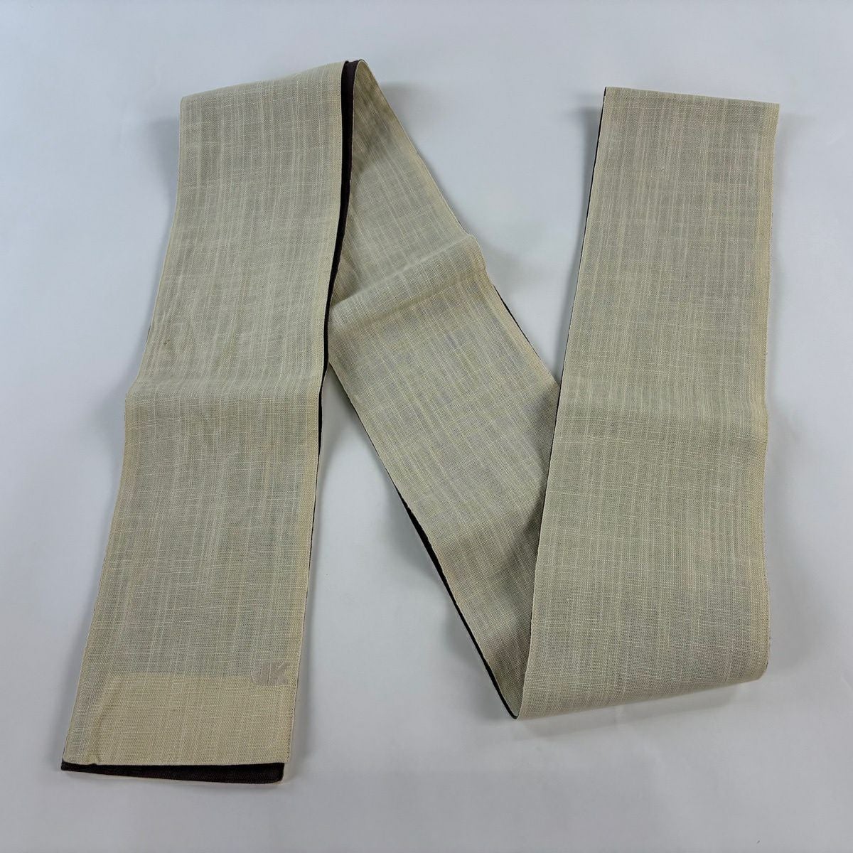 半幅帯 優品 夏帯 縞 薄茶色 麻