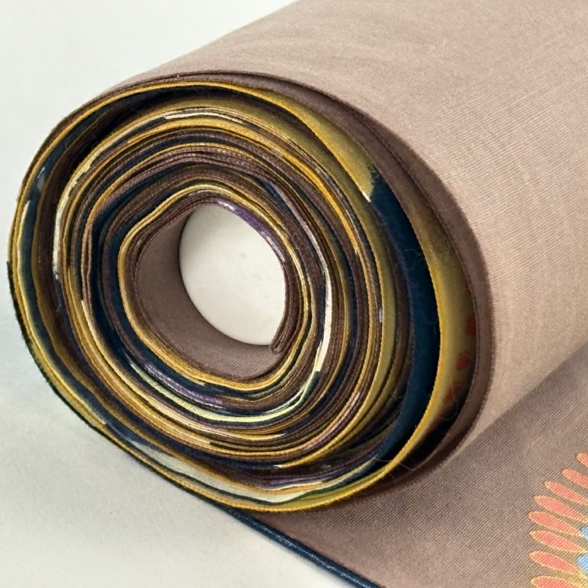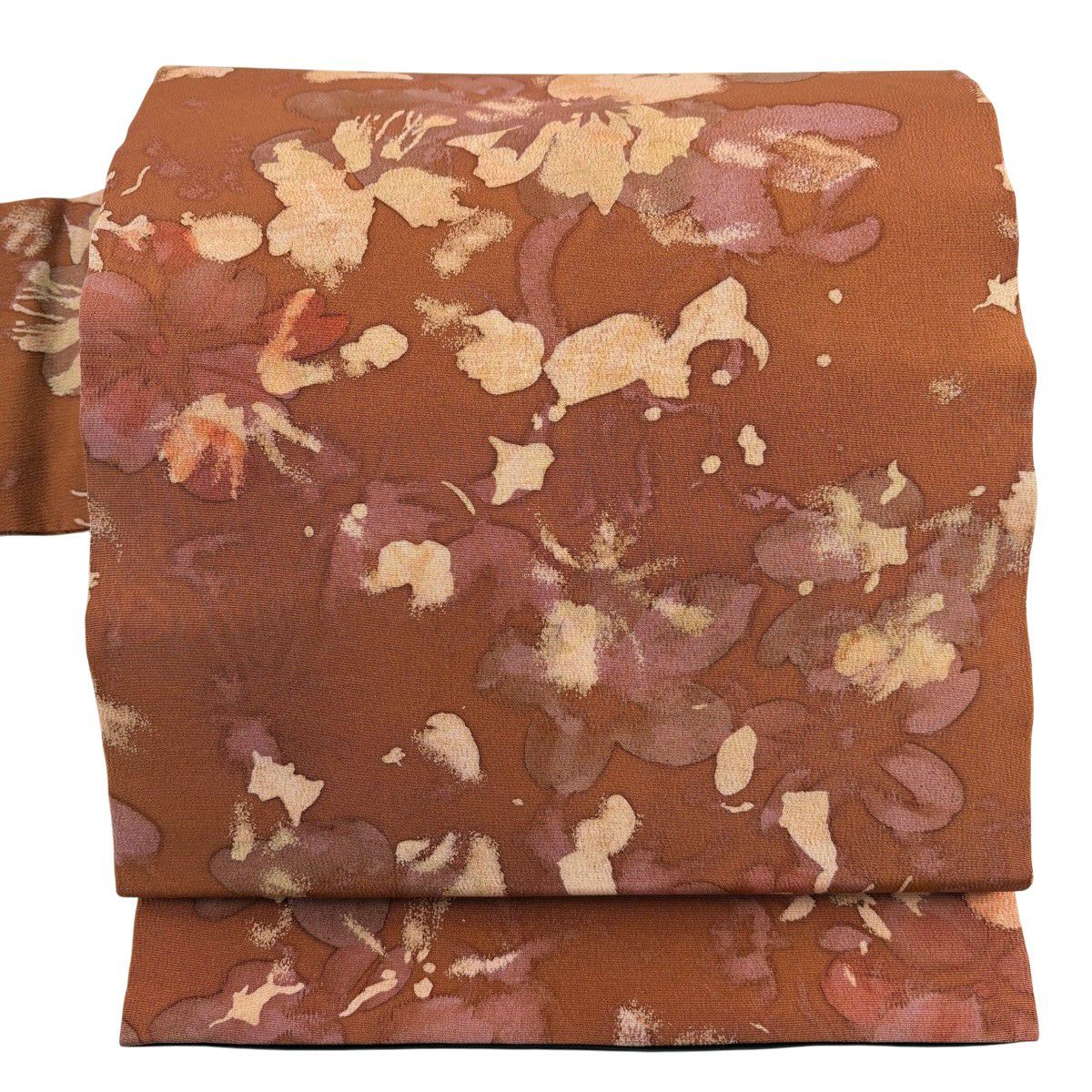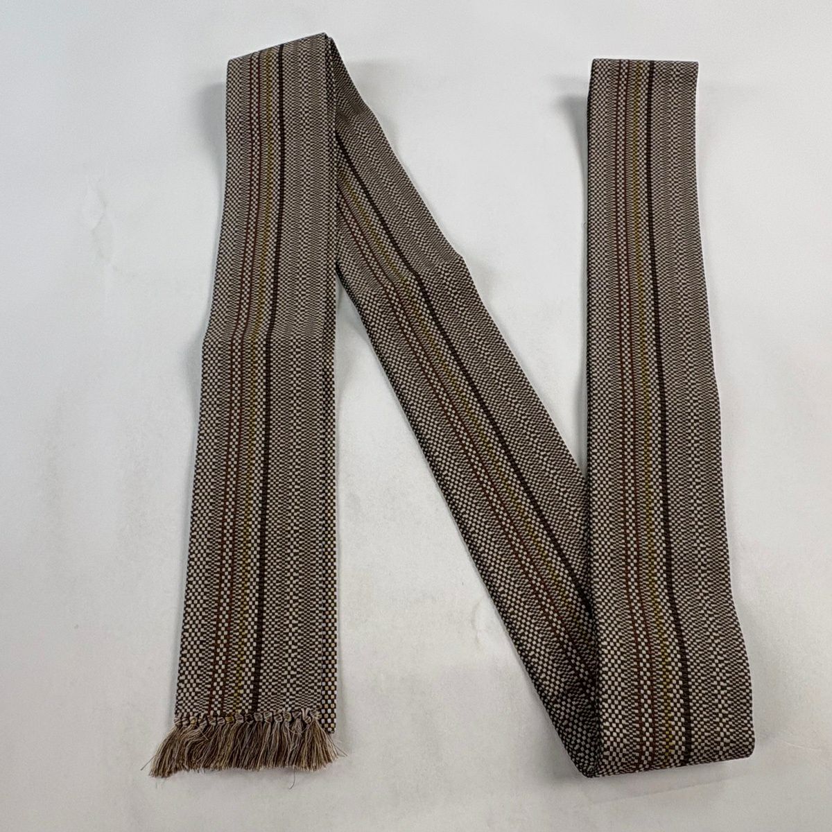 半幅帯 優品 夏帯 縞 薄茶色 麻
