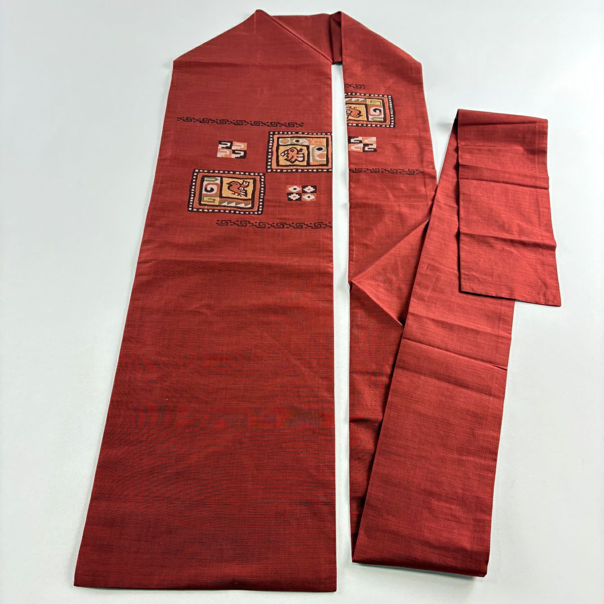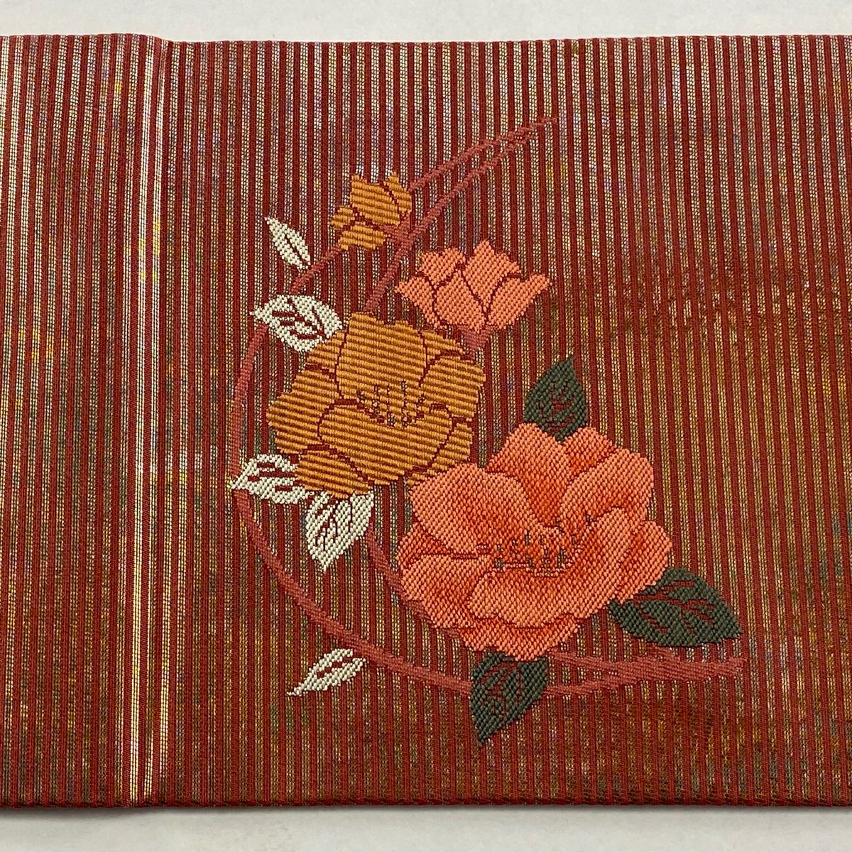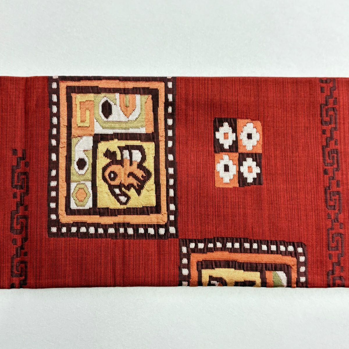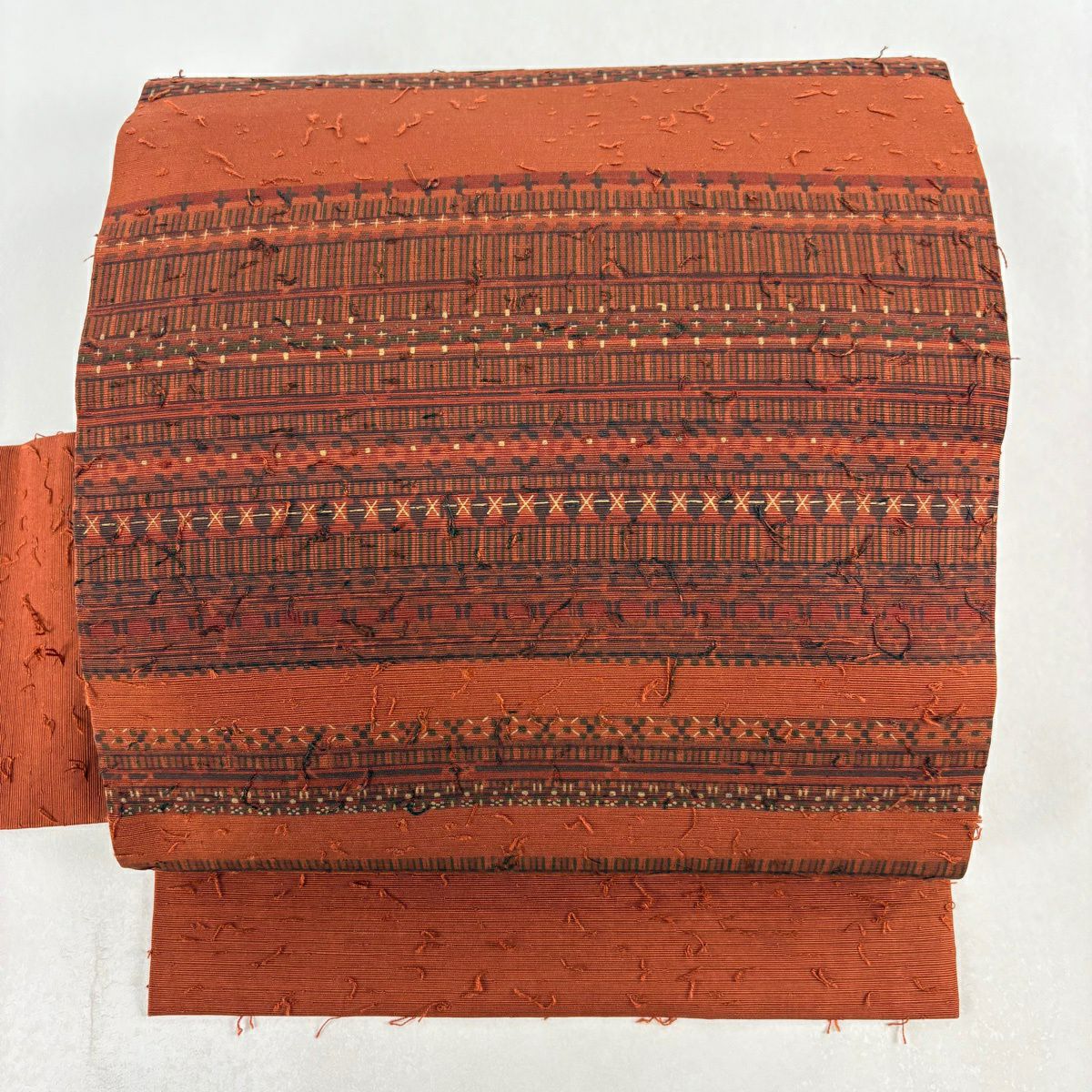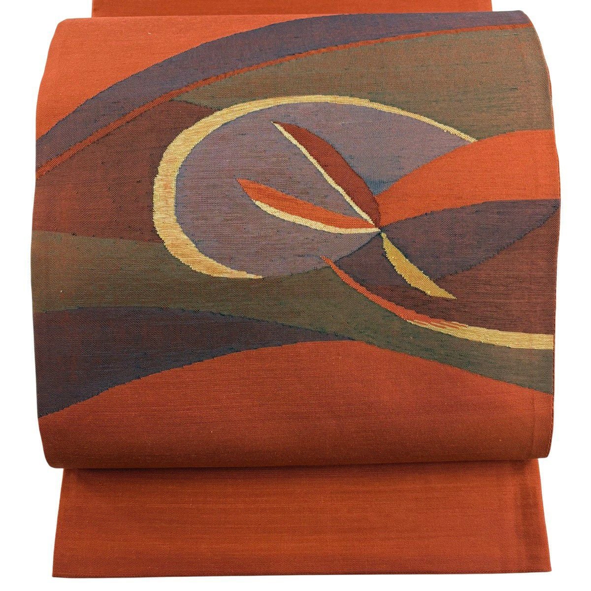 【美品】 袋帯 優品 幾何学模様 箔 赤茶 お太鼓柄 正絹