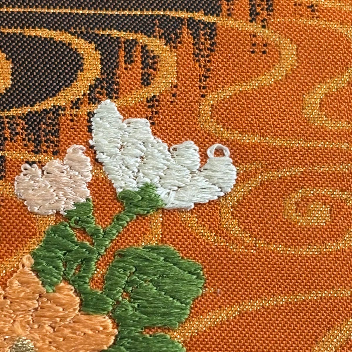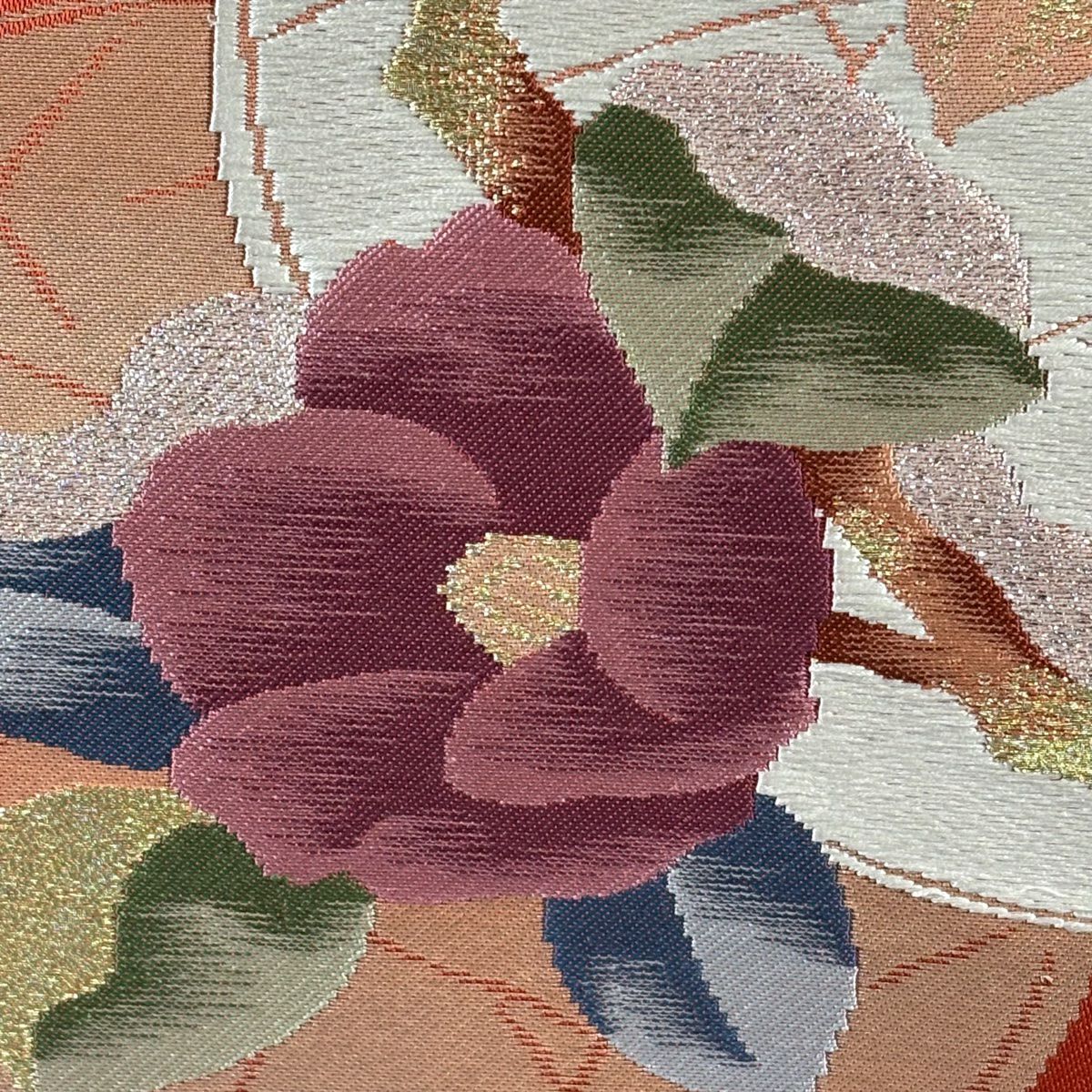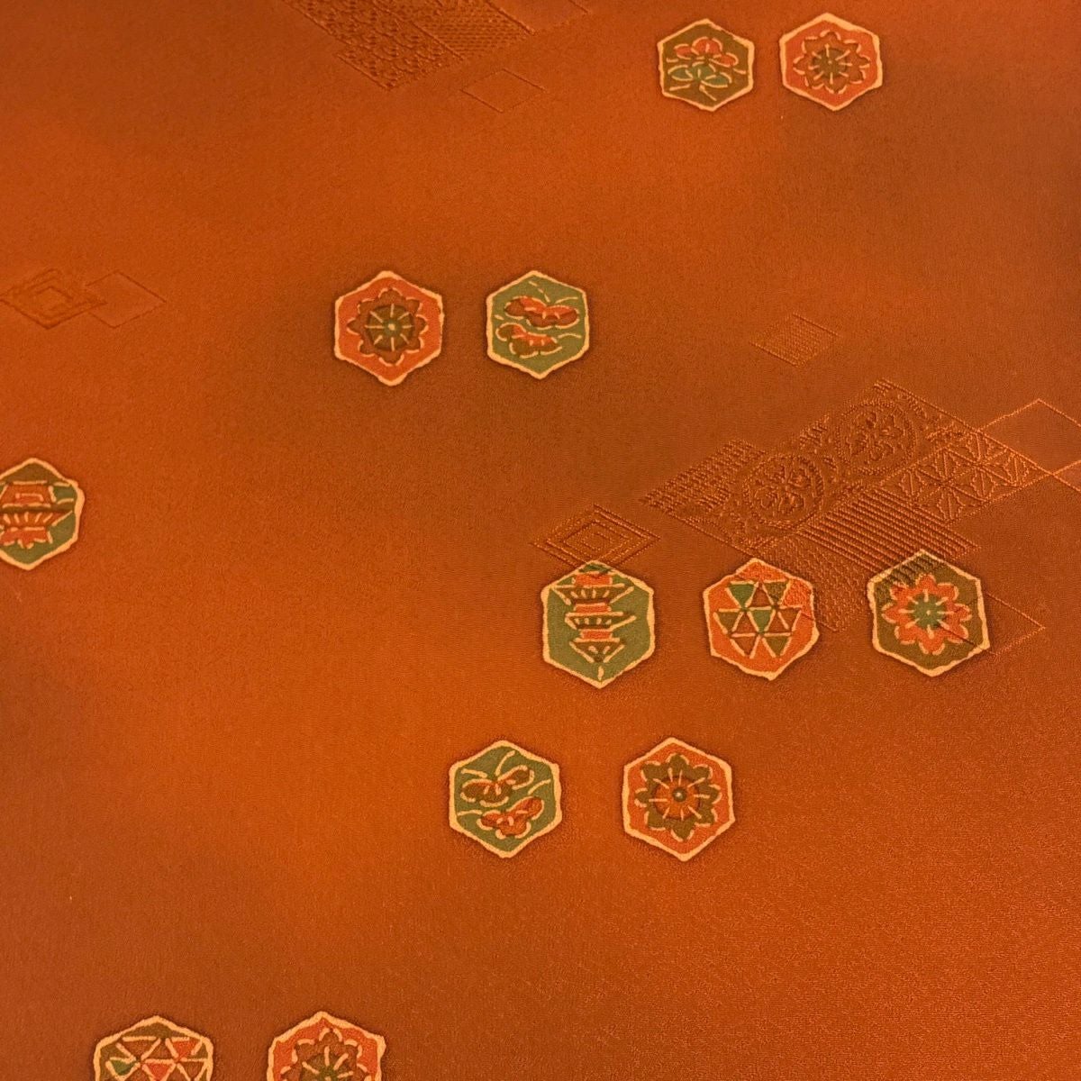 反物 優品 羽尺 羽織 和装コート 花 菱 オレンジ 正絹
