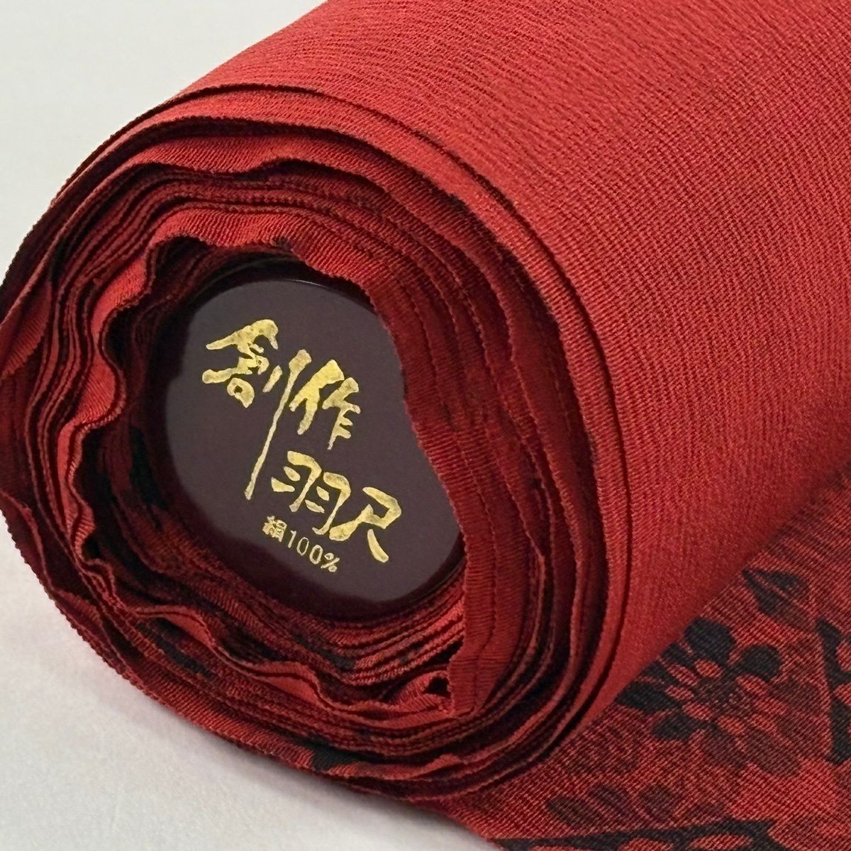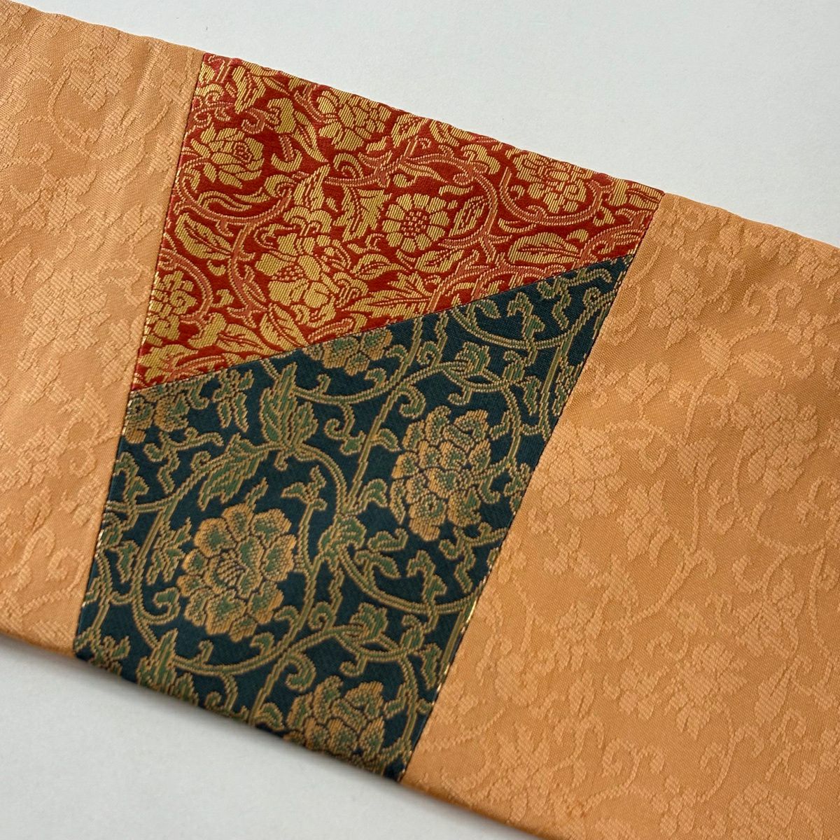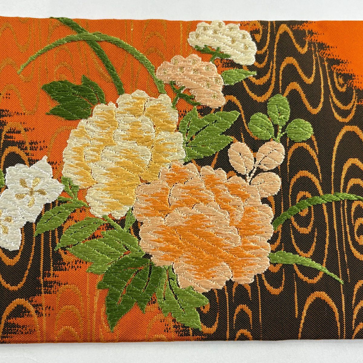 反物 優品 羽尺 羽織 和装コート 花 菱 オレンジ 正絹