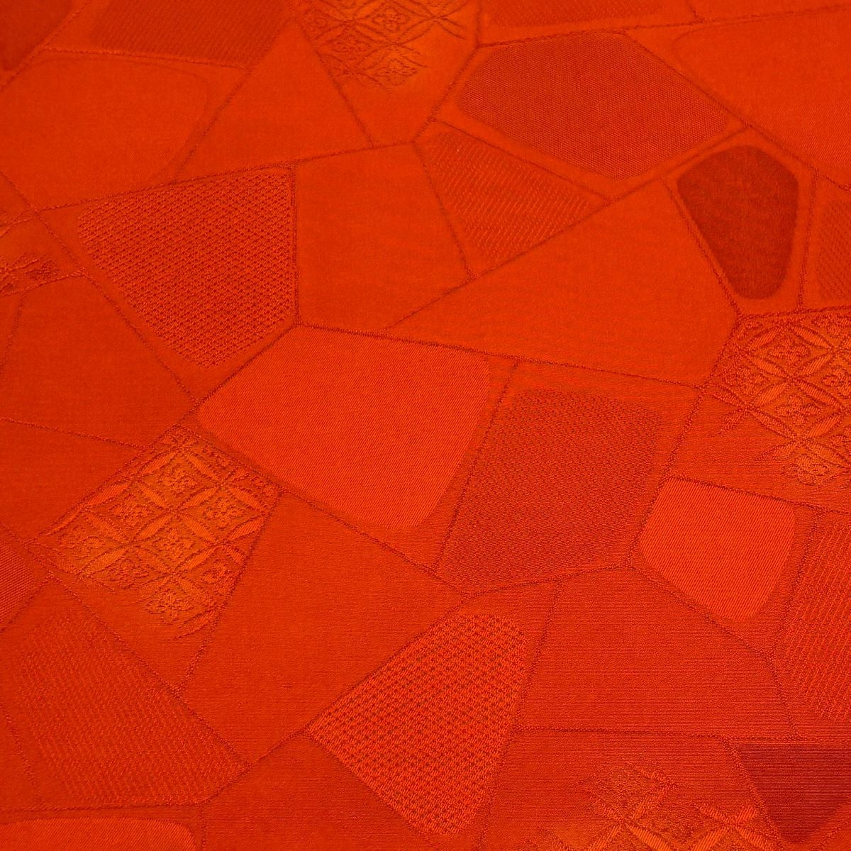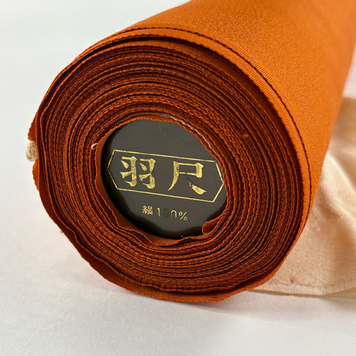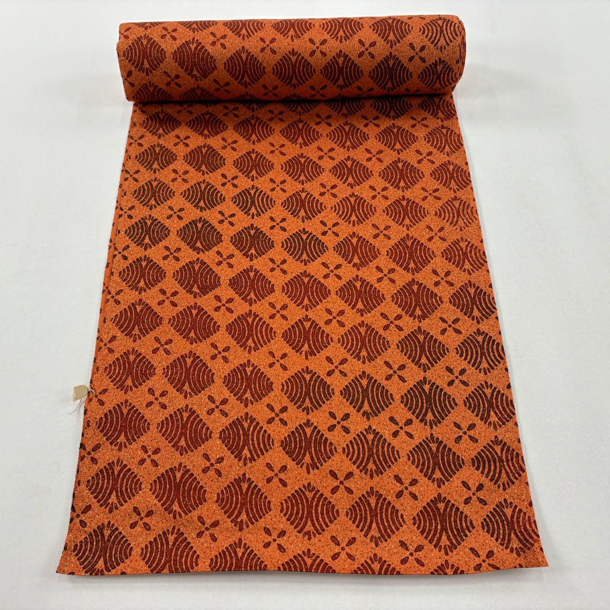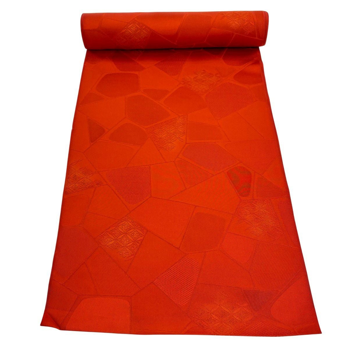反物 優品 羽尺 羽織 和装コート 幾何学 オレンジ 正絹