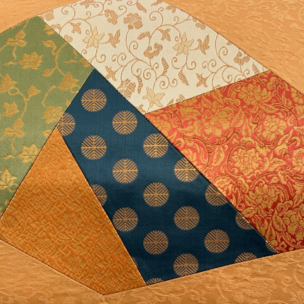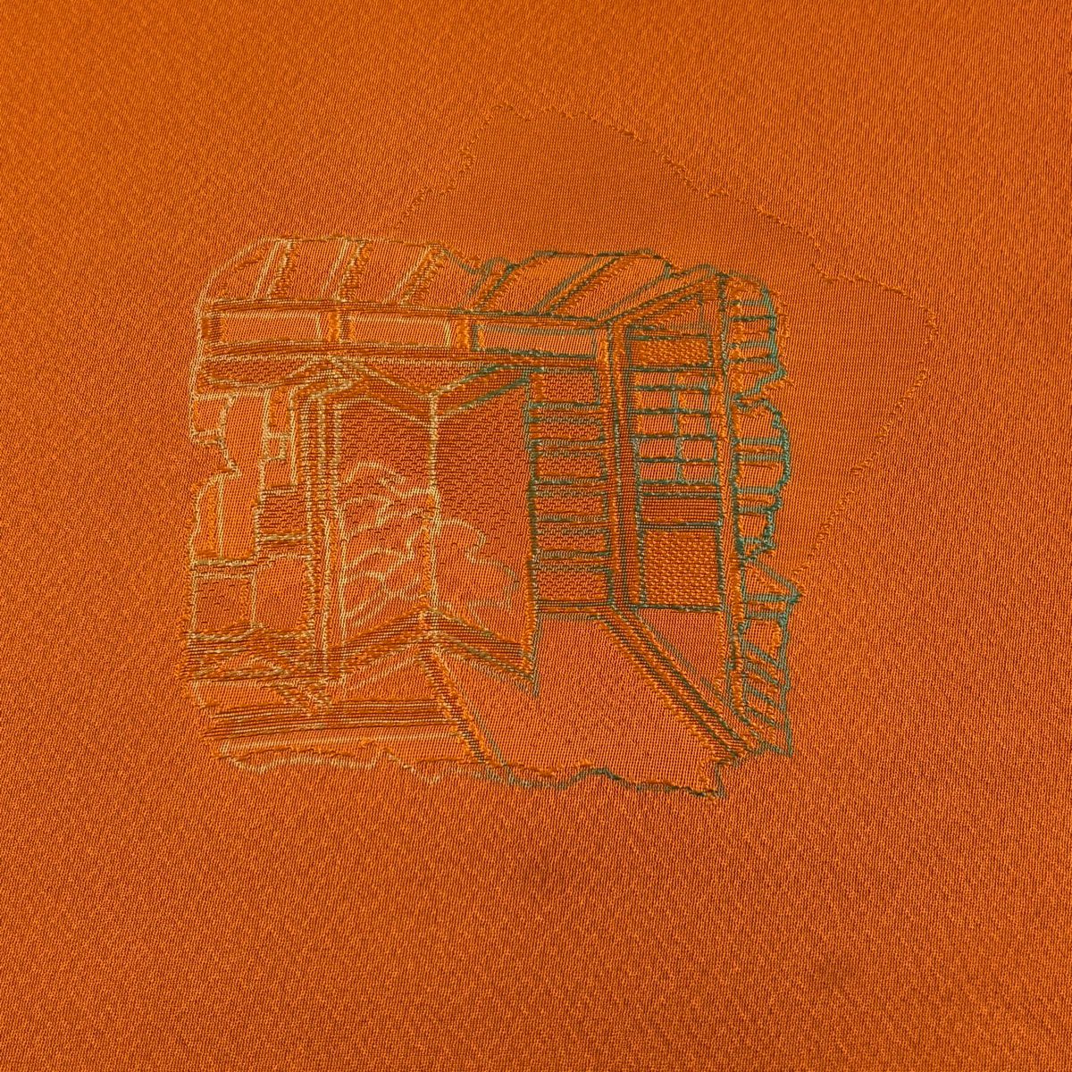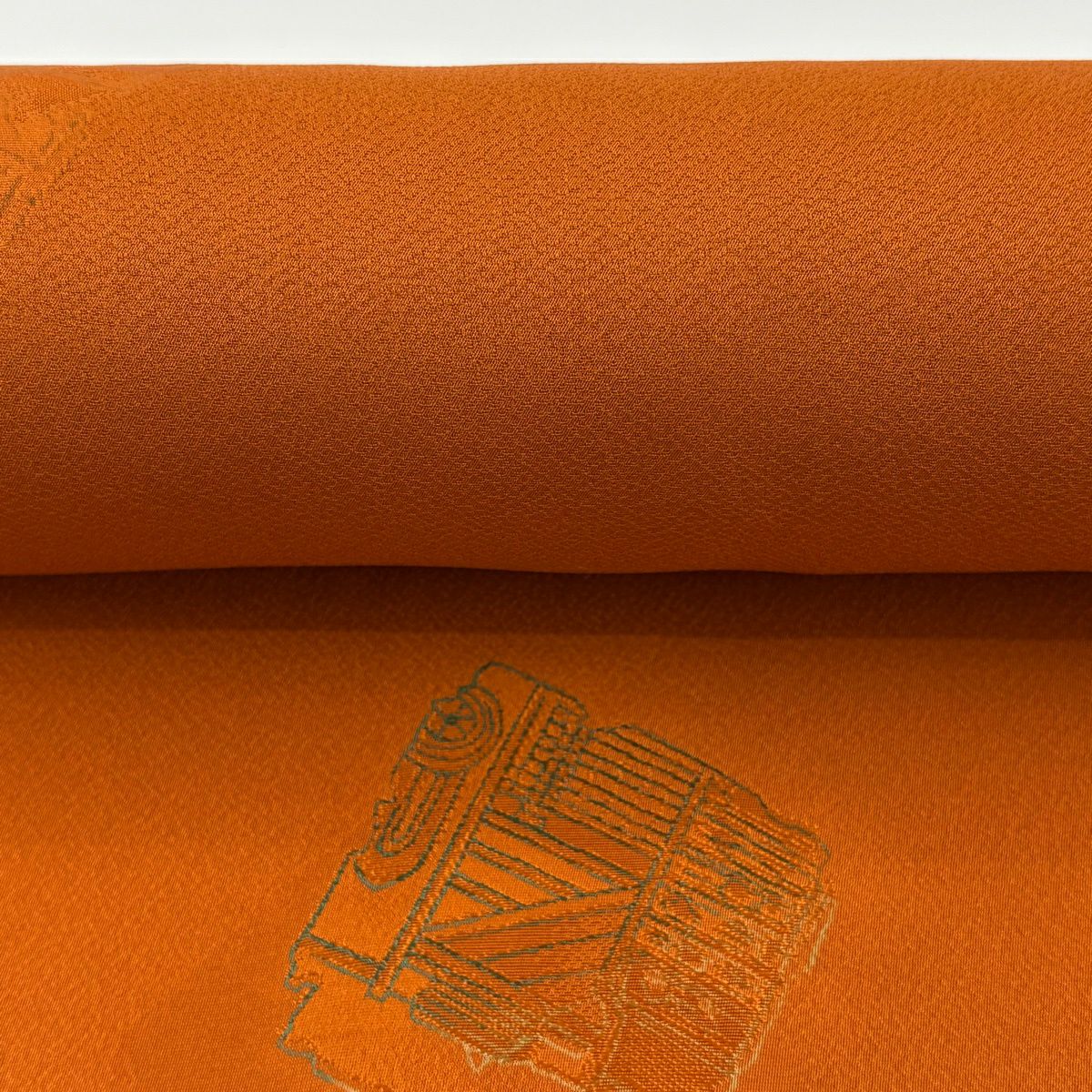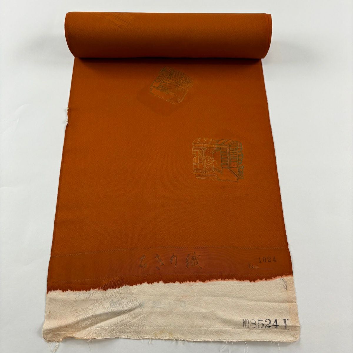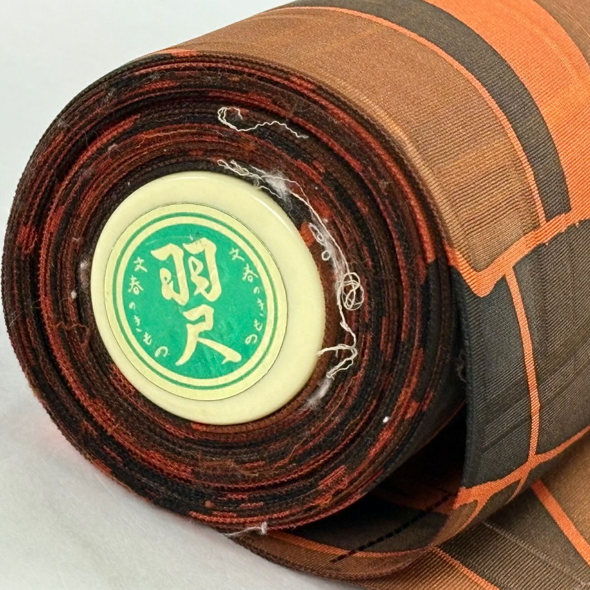 反物 優品 羽尺 羽織 和装コート 幾何学 オレンジ 正絹