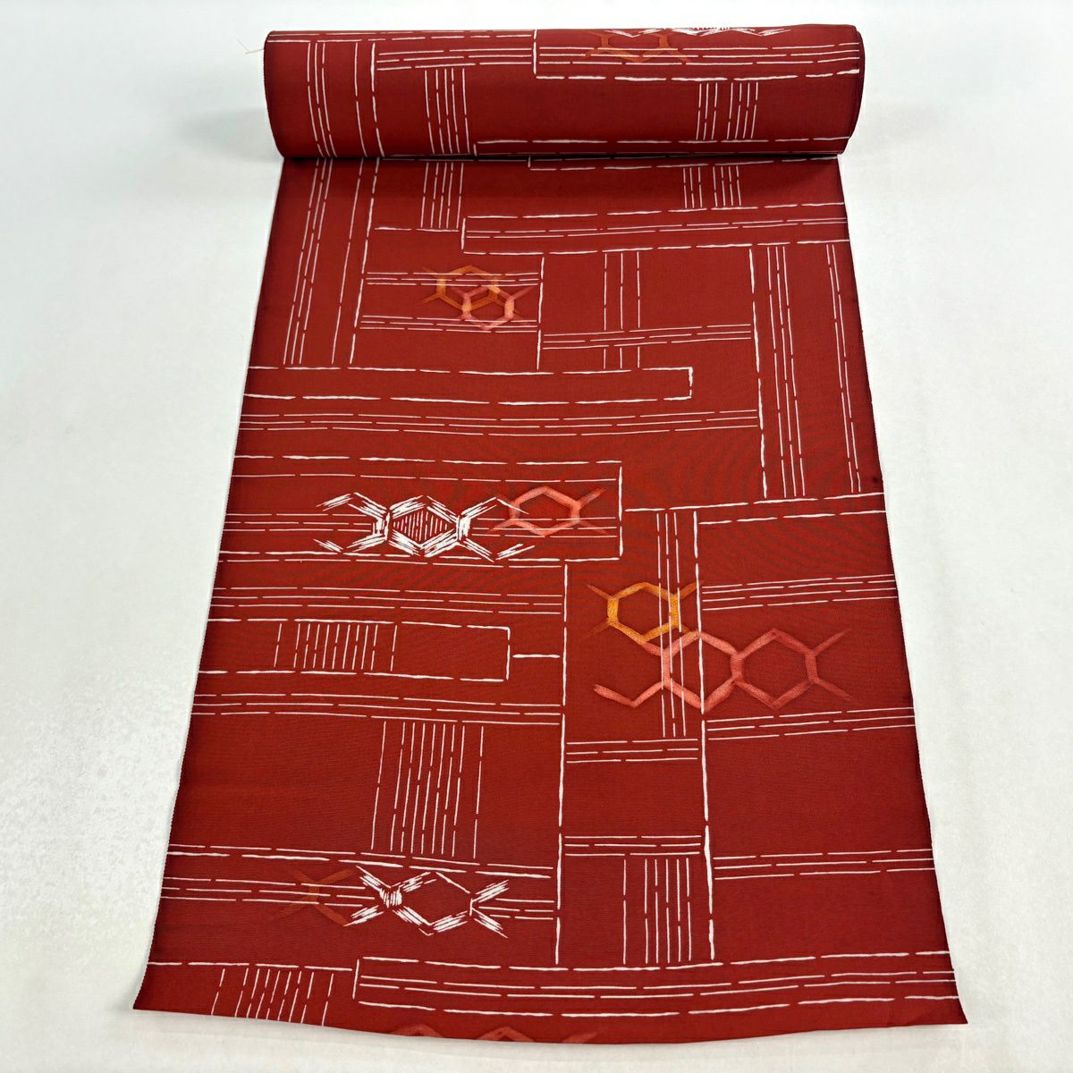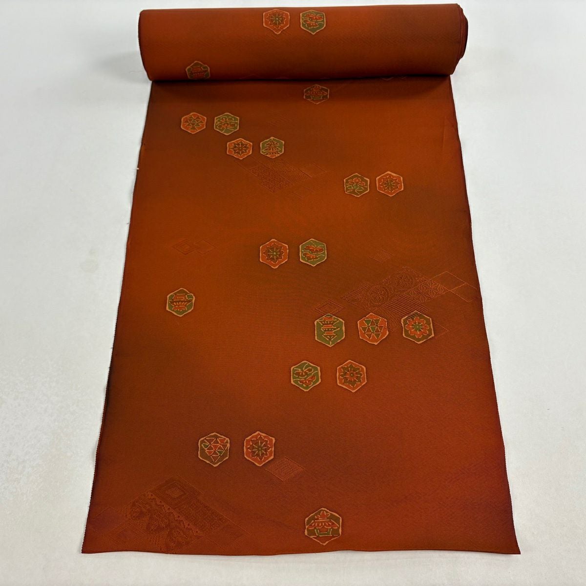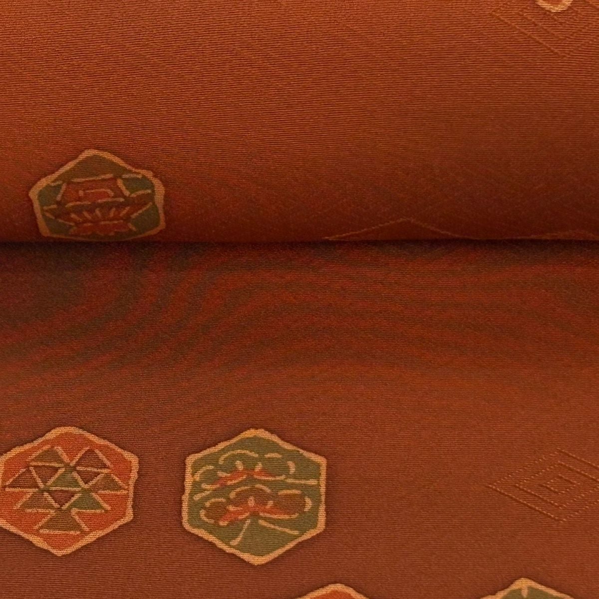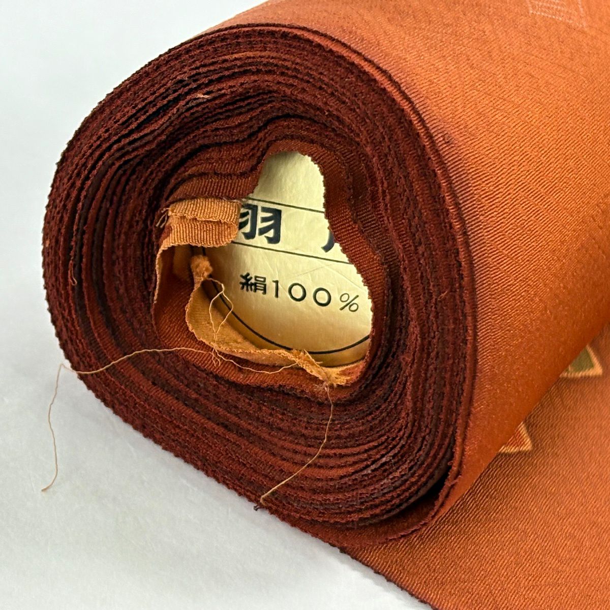 反物 優品 羽尺 羽織 和装コート 亀甲 幾何学 赤茶 正絹