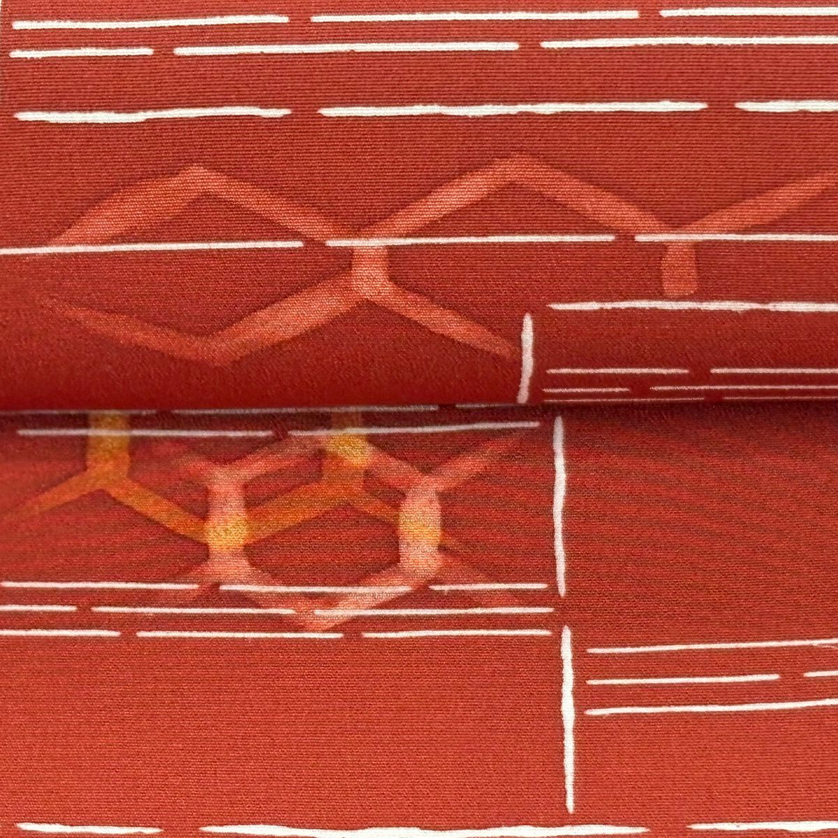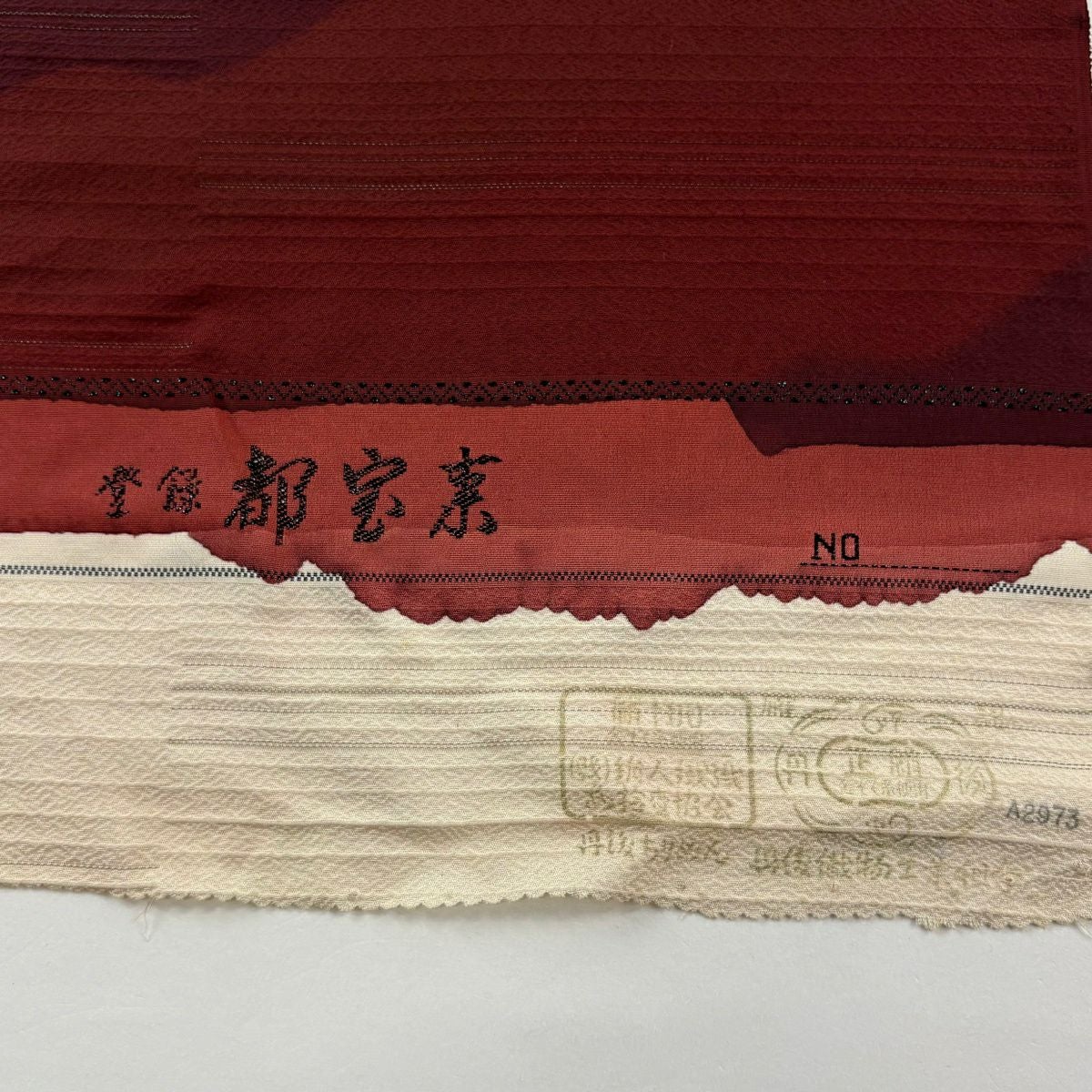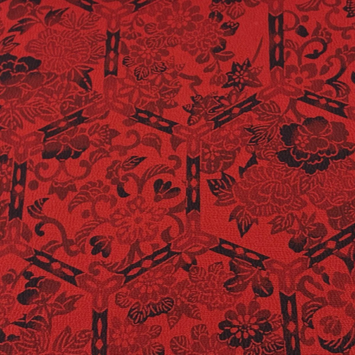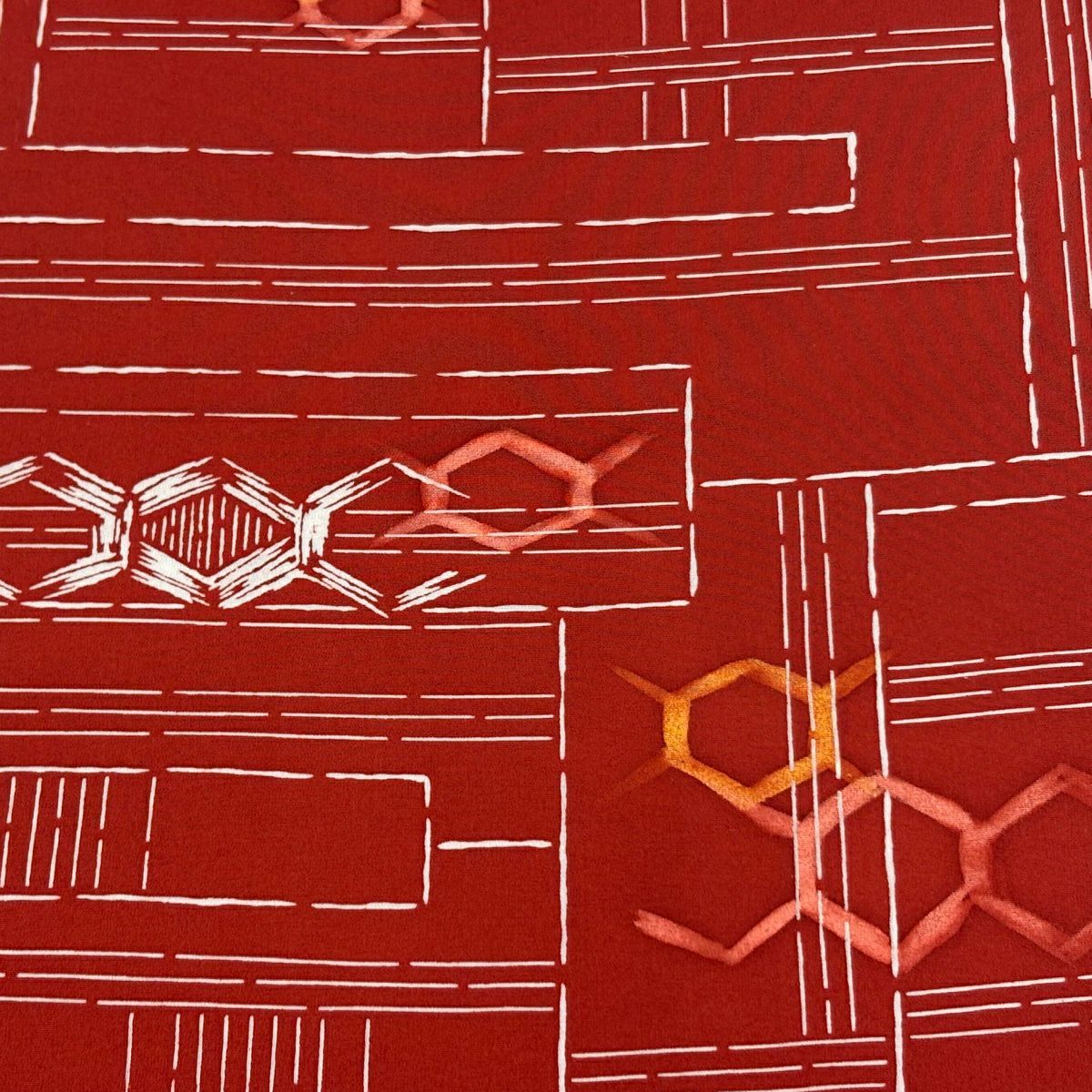 反物 優品 羽尺 羽織 和装コート 亀甲 幾何学 赤茶 正絹