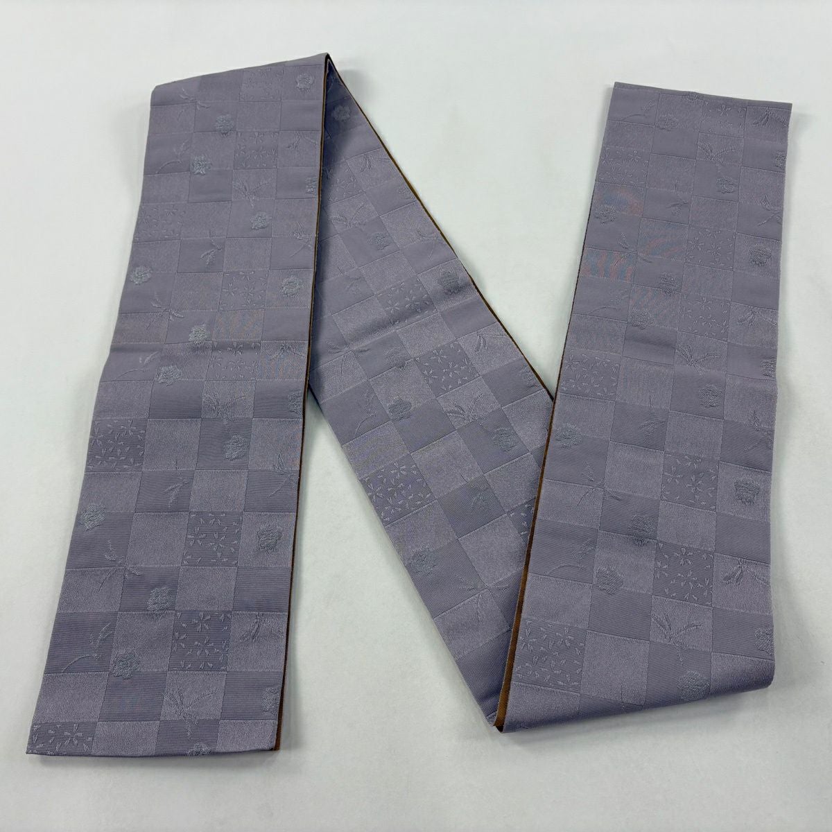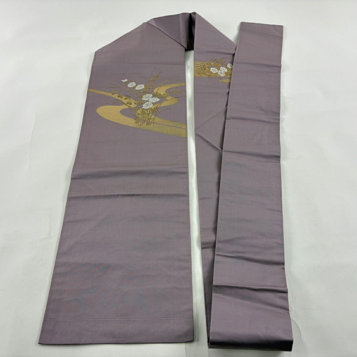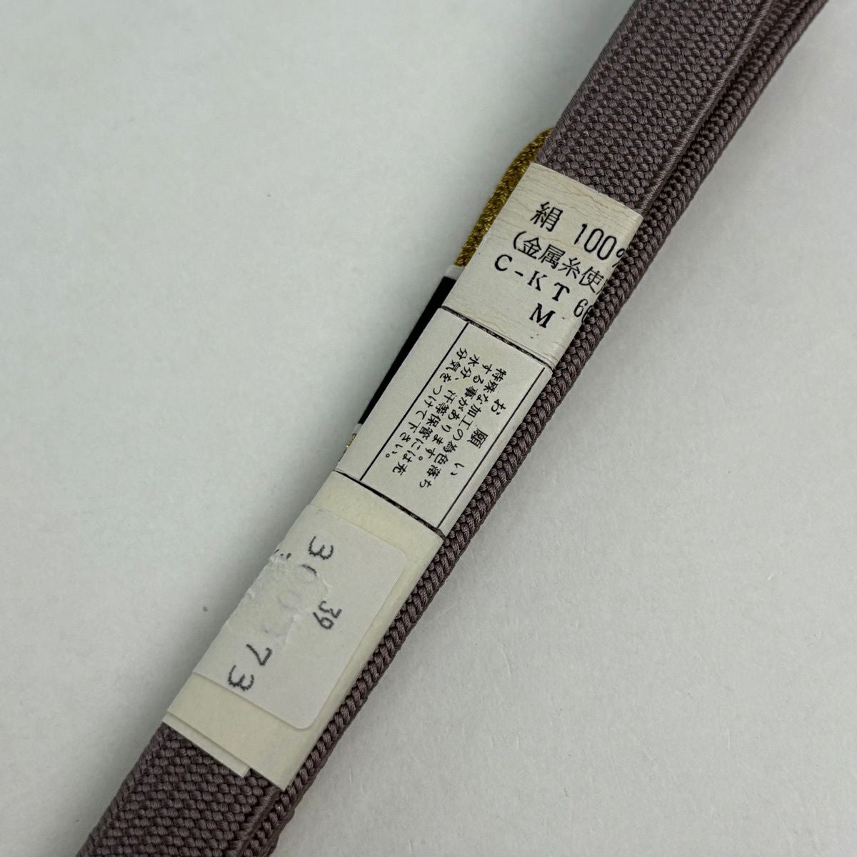 【美品】 名古屋帯 優品 牡丹 流水 金糸 箔 灰紫 正絹