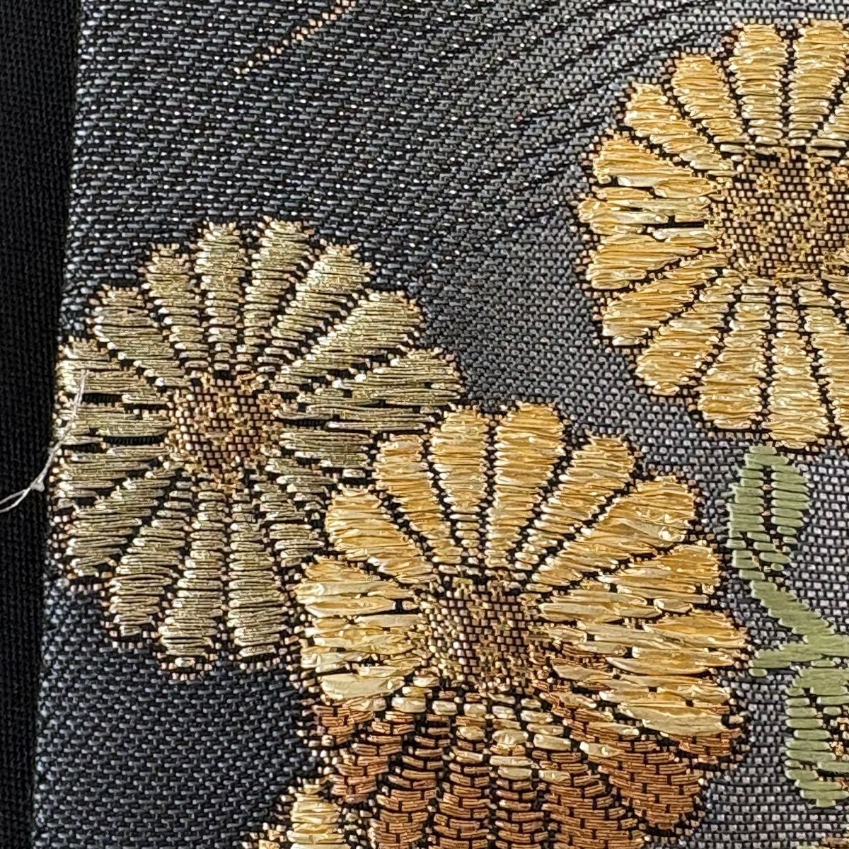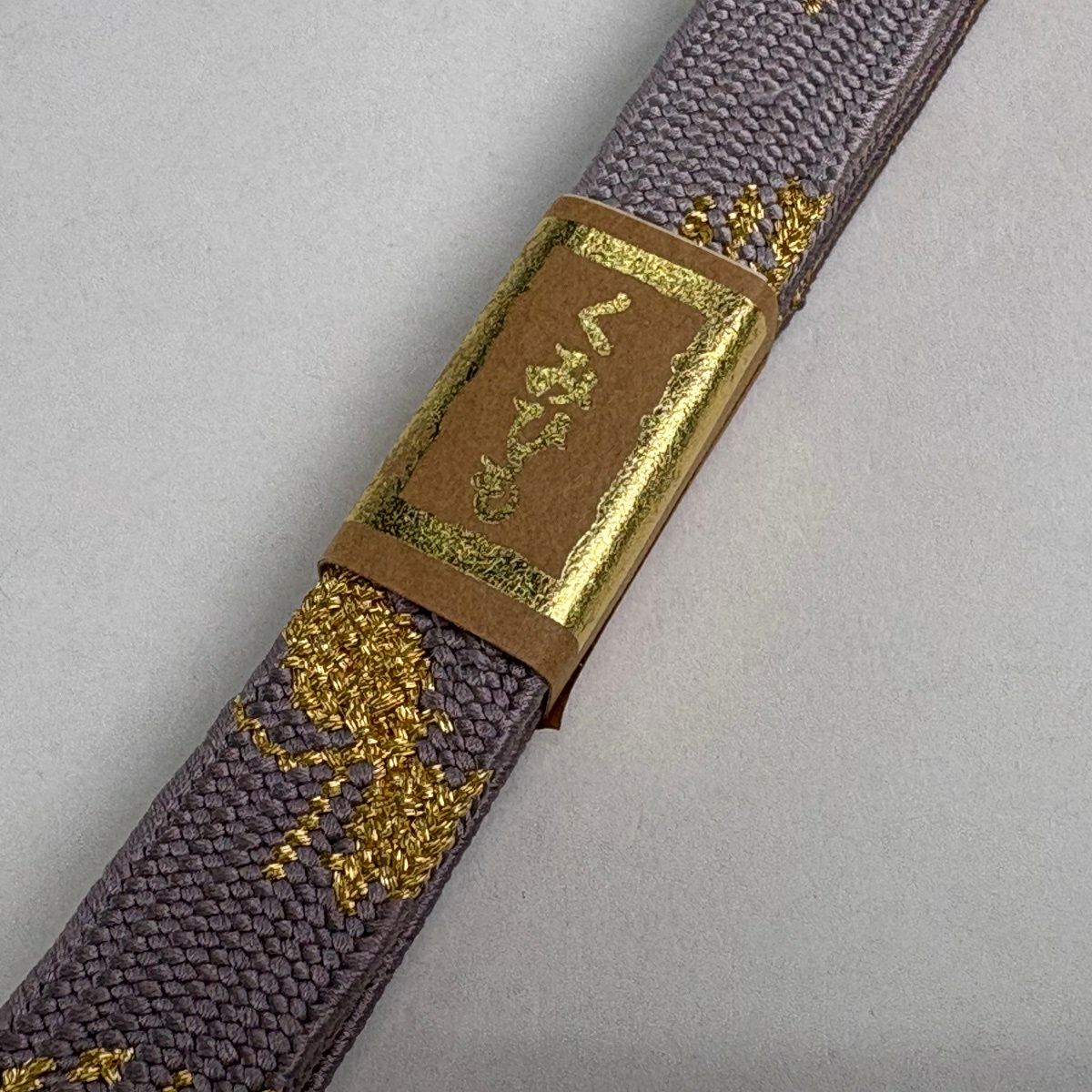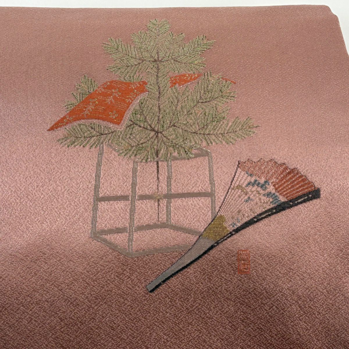 【美品】 名古屋帯 優品 牡丹 流水 金糸 箔 灰紫 正絹