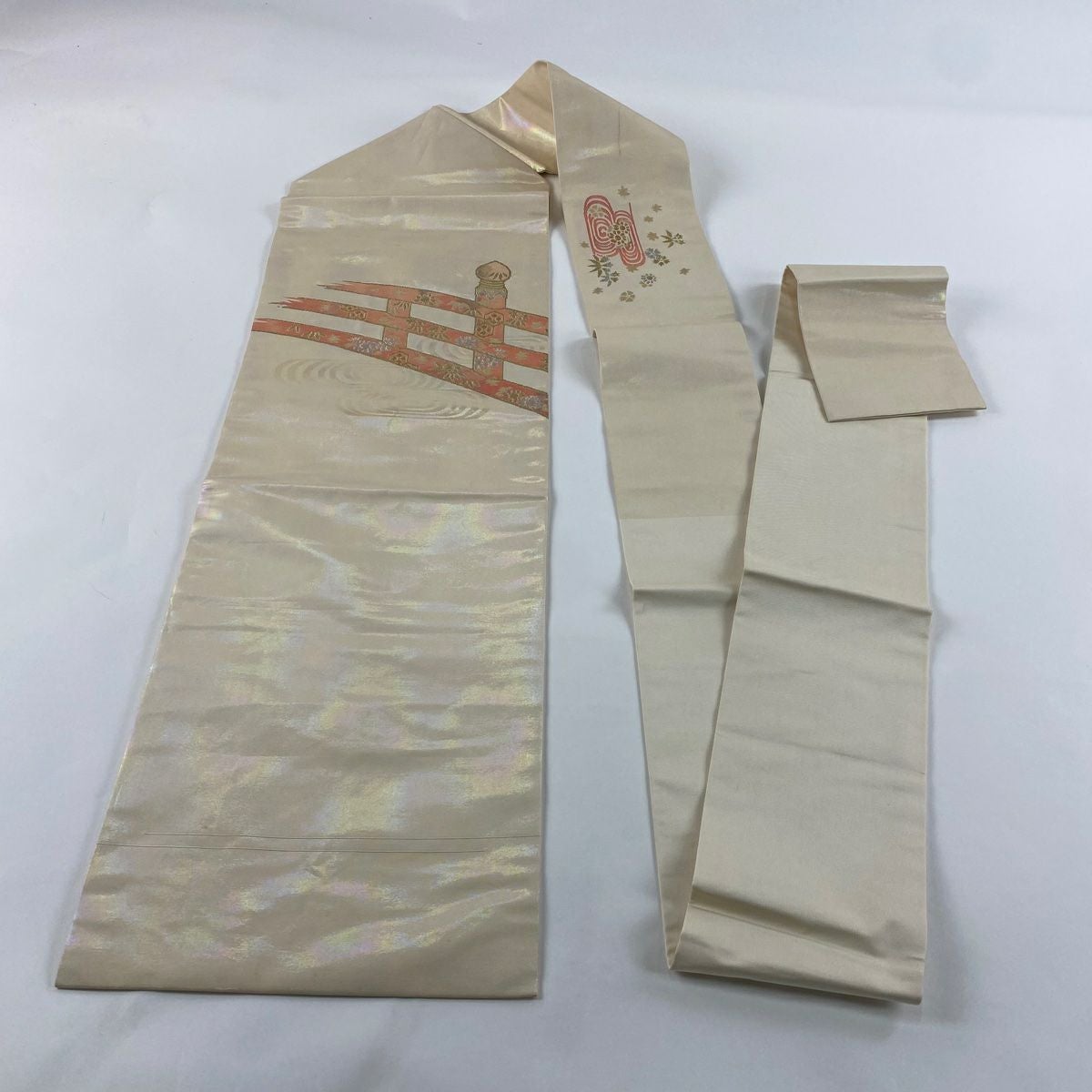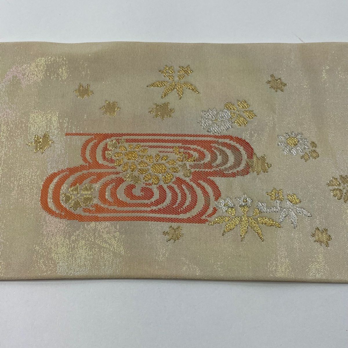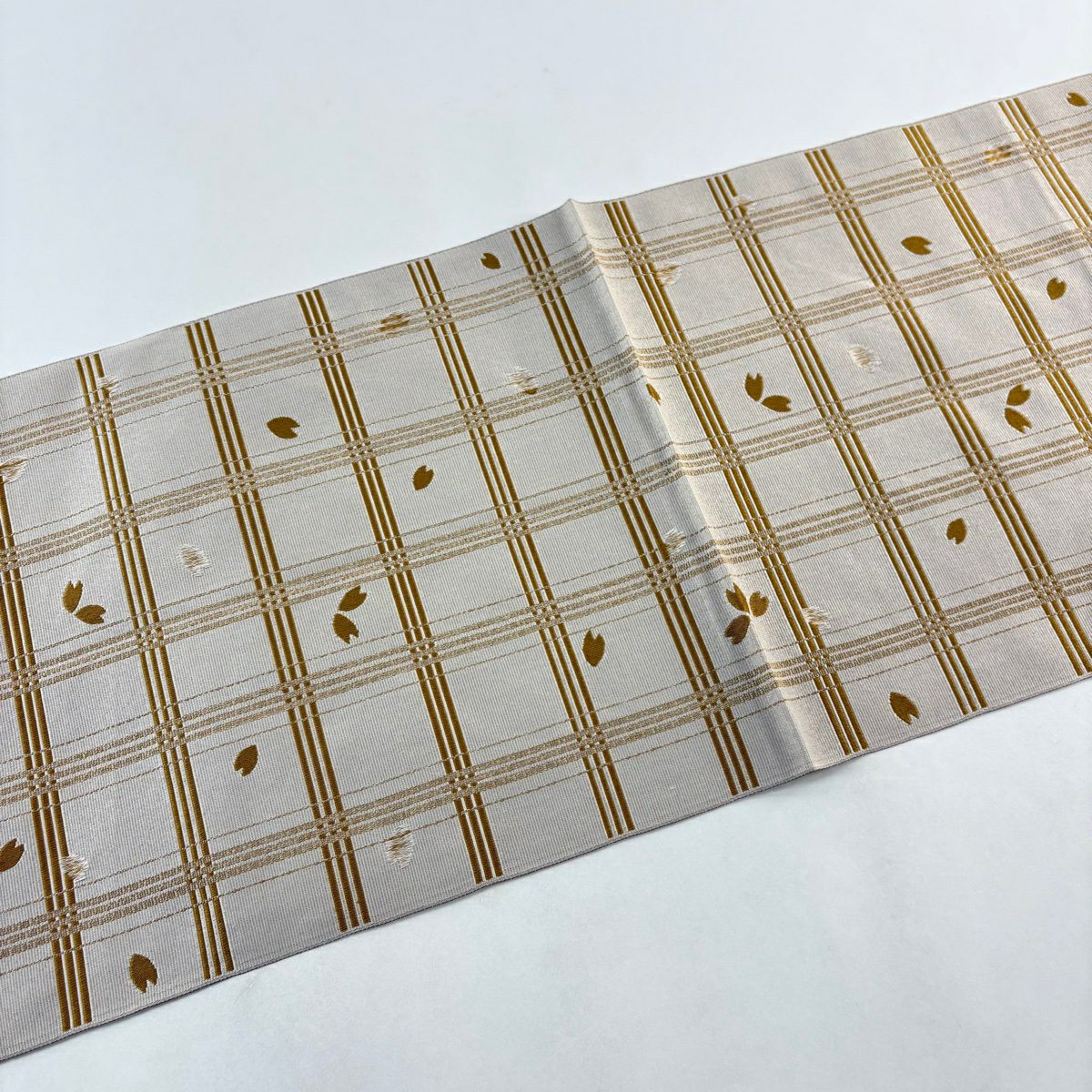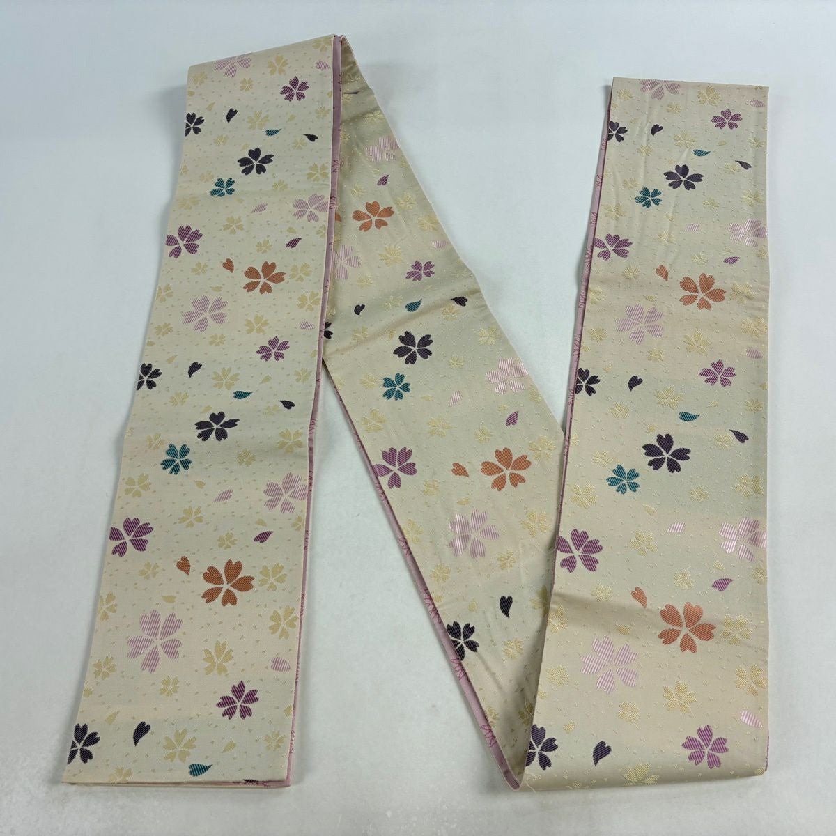 【美品】半幅帯 優品 想屋 桜 花びら ベージュ 化繊