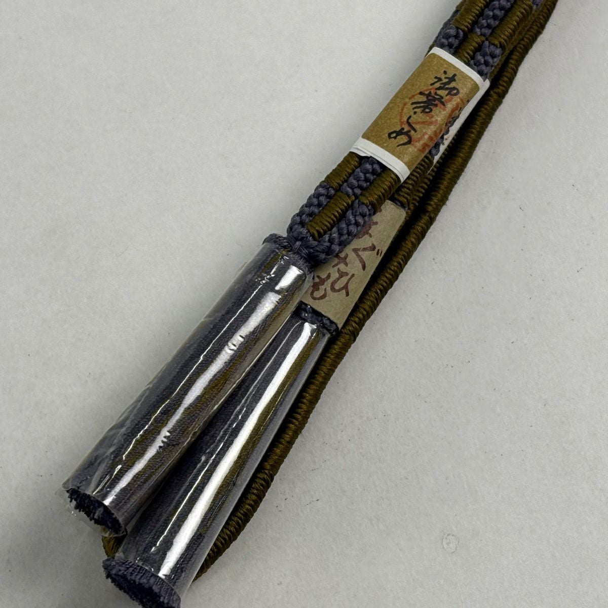 【美品】帯締め 優品 幾何学 金糸 抹茶色 正絹 和装小物