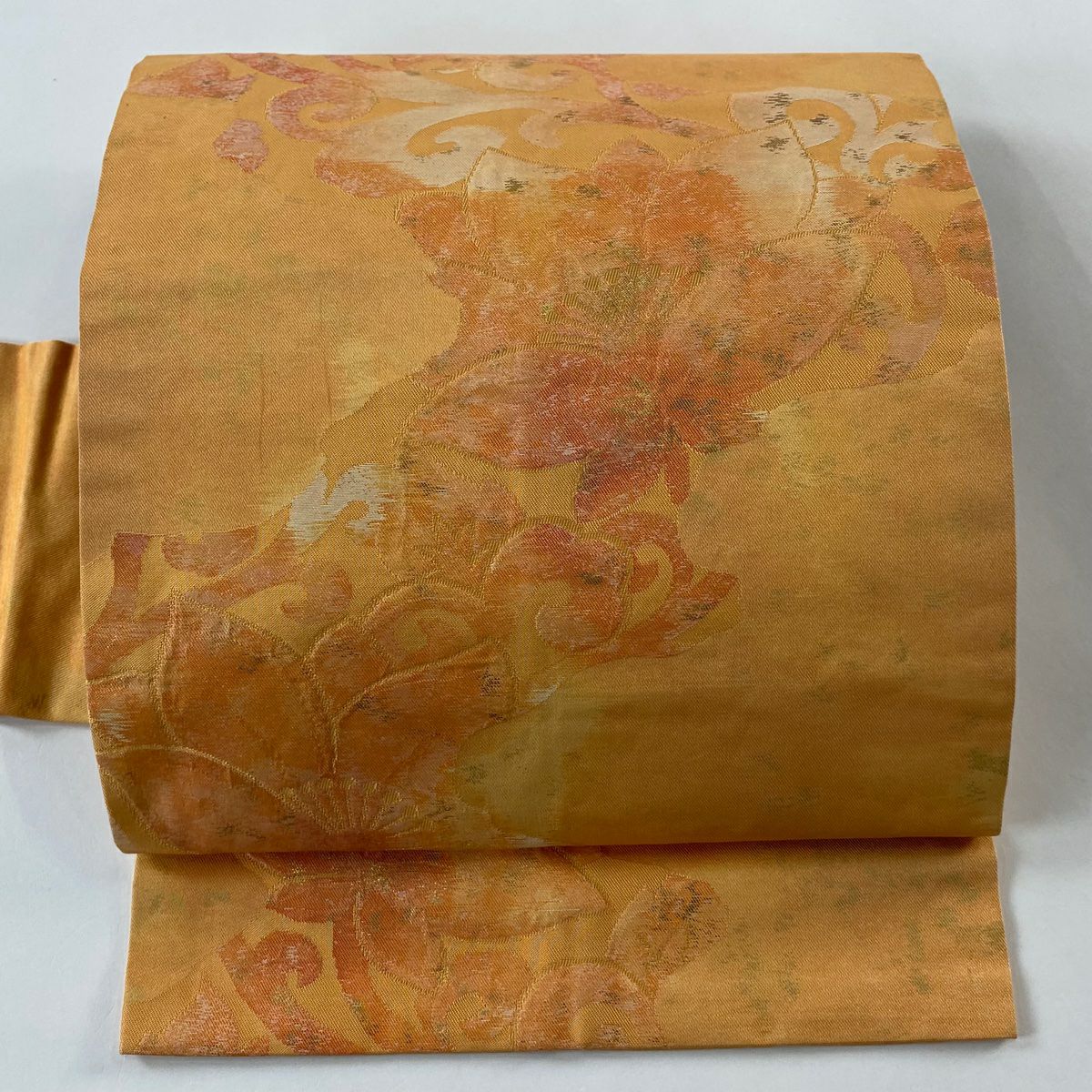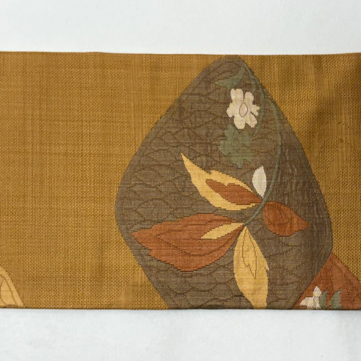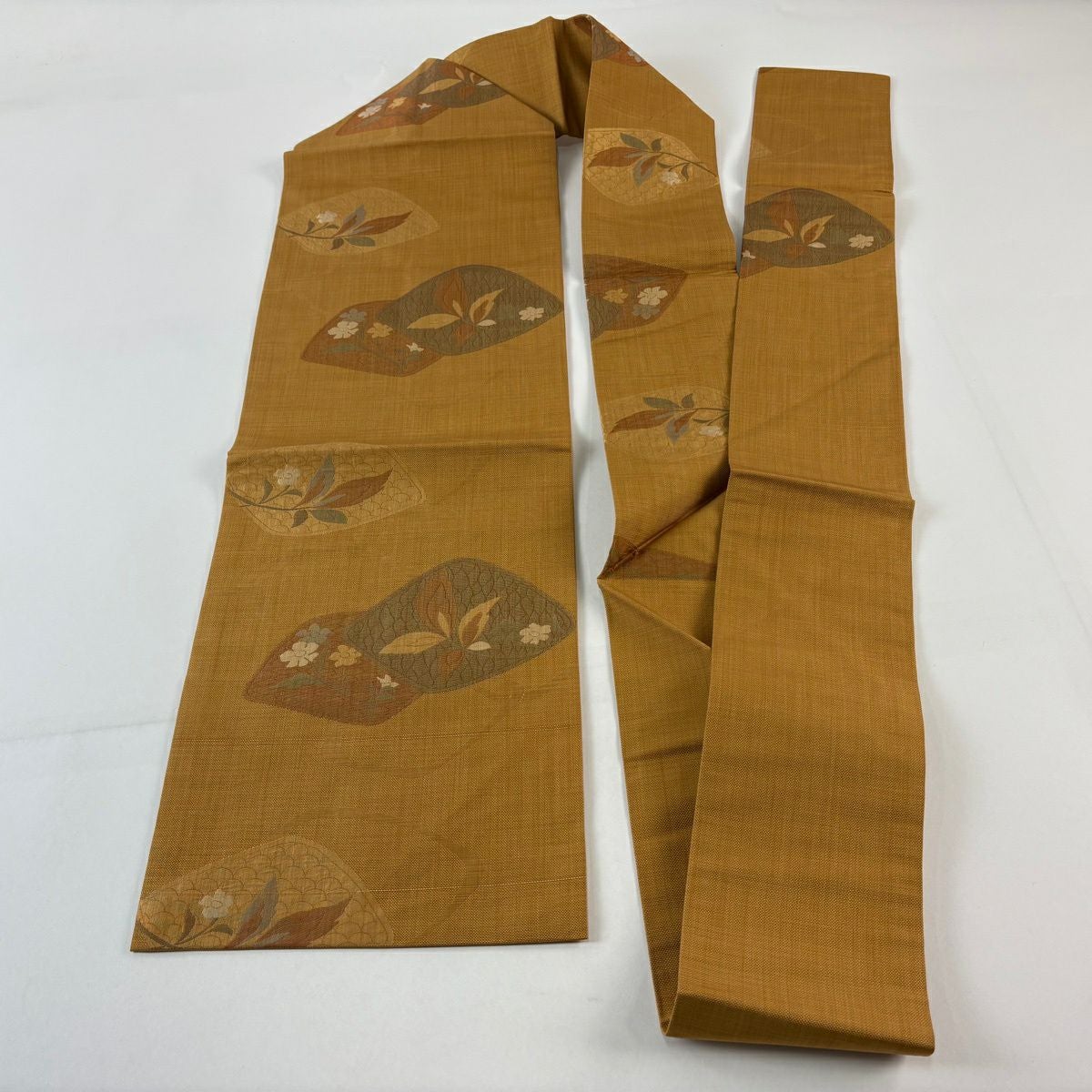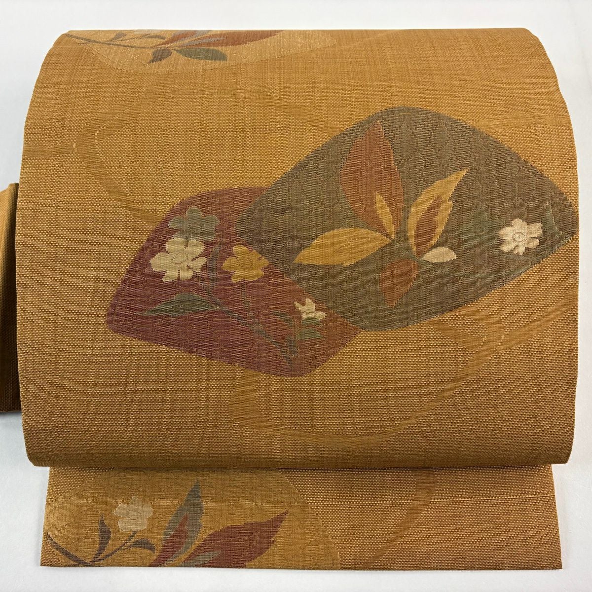 【美品】 名古屋帯 優品 関西仕立て 草花 山吹茶色 正絹