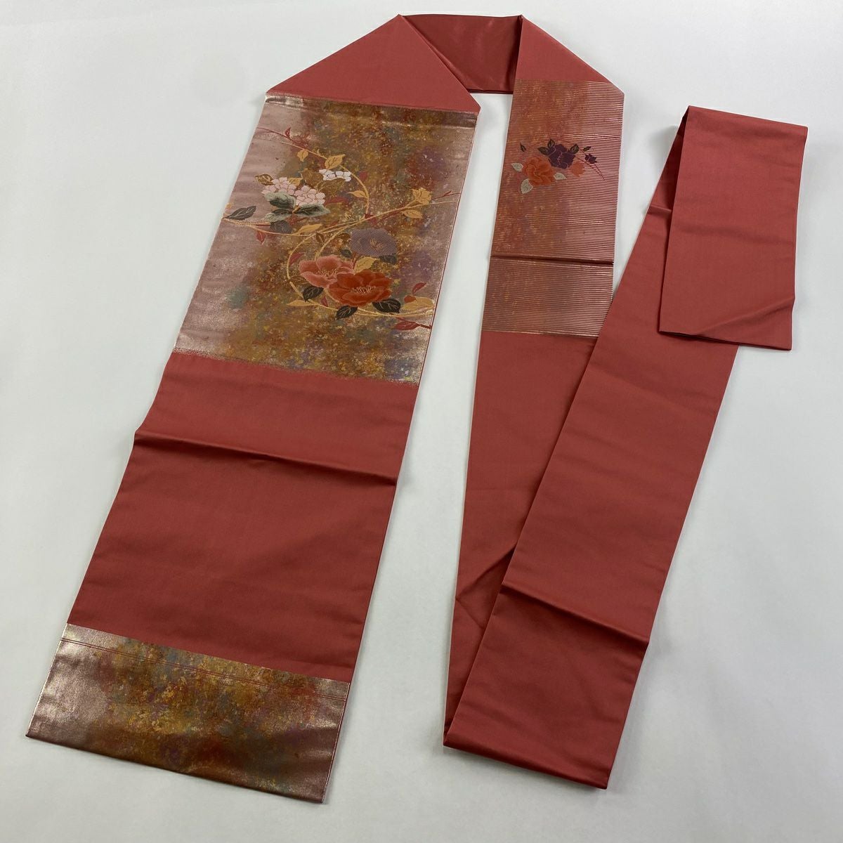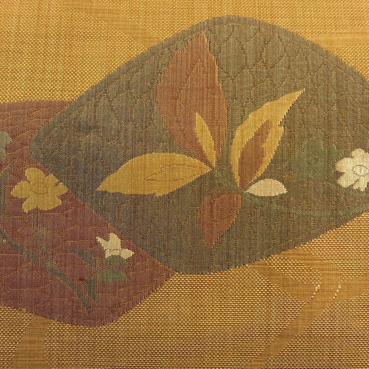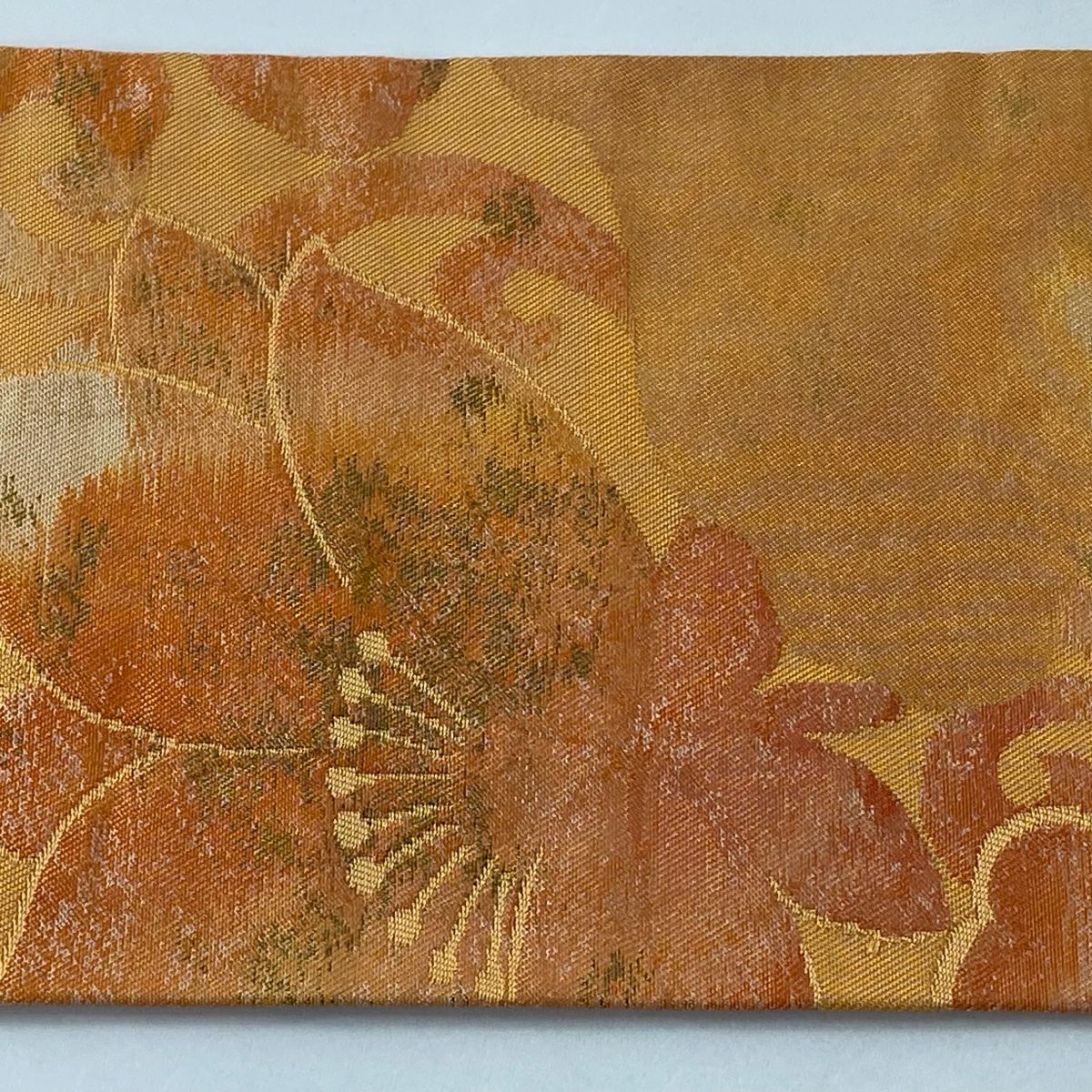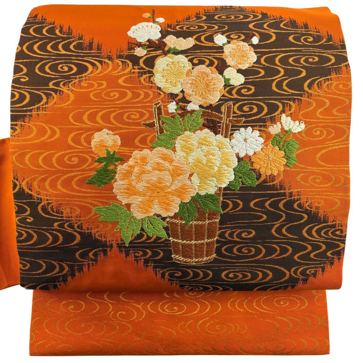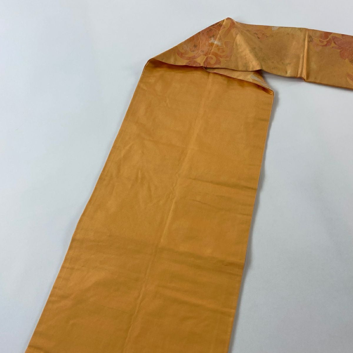【美品】 名古屋帯 優品 関西仕立て 草花 山吹茶色 正絹