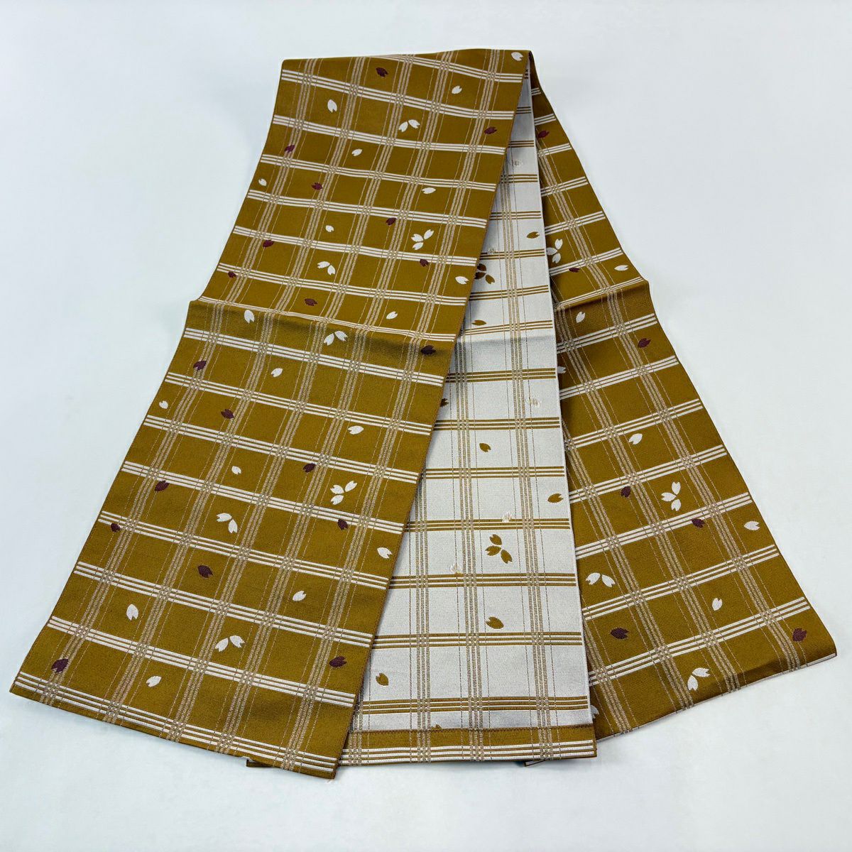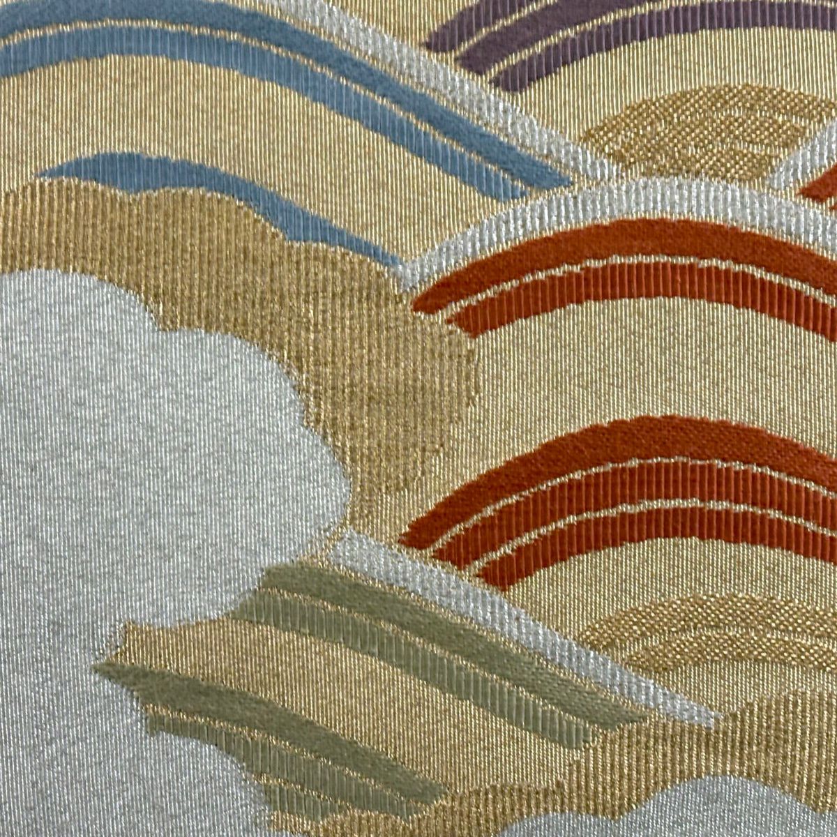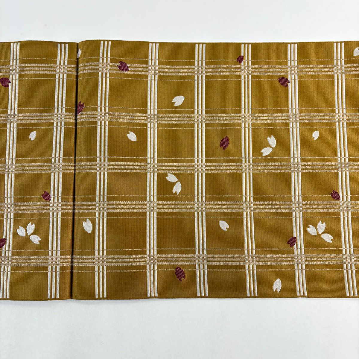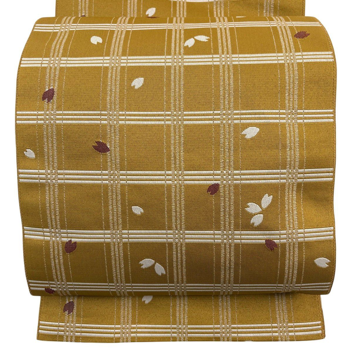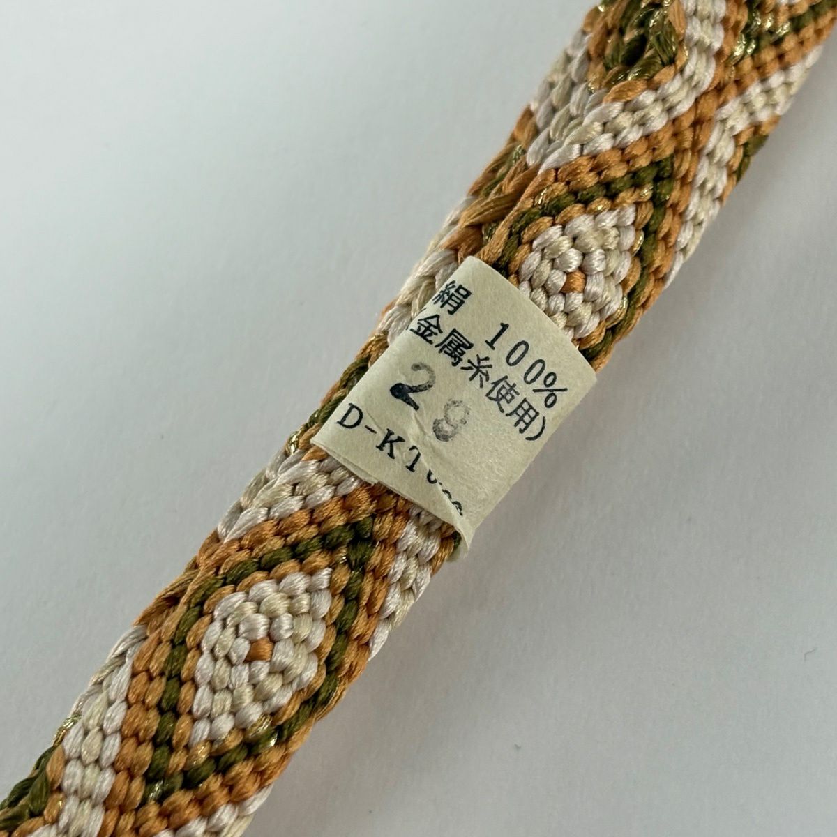 名古屋帯 優品 八寸名古屋帯 夏帯 幾何学 金通し 黄土色 正絹