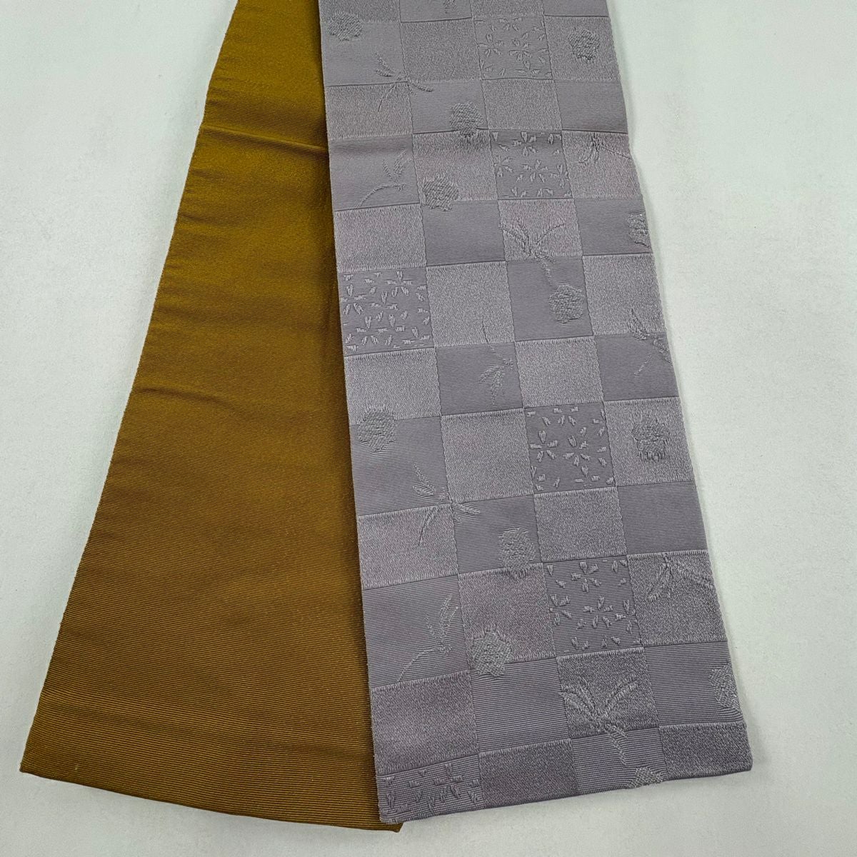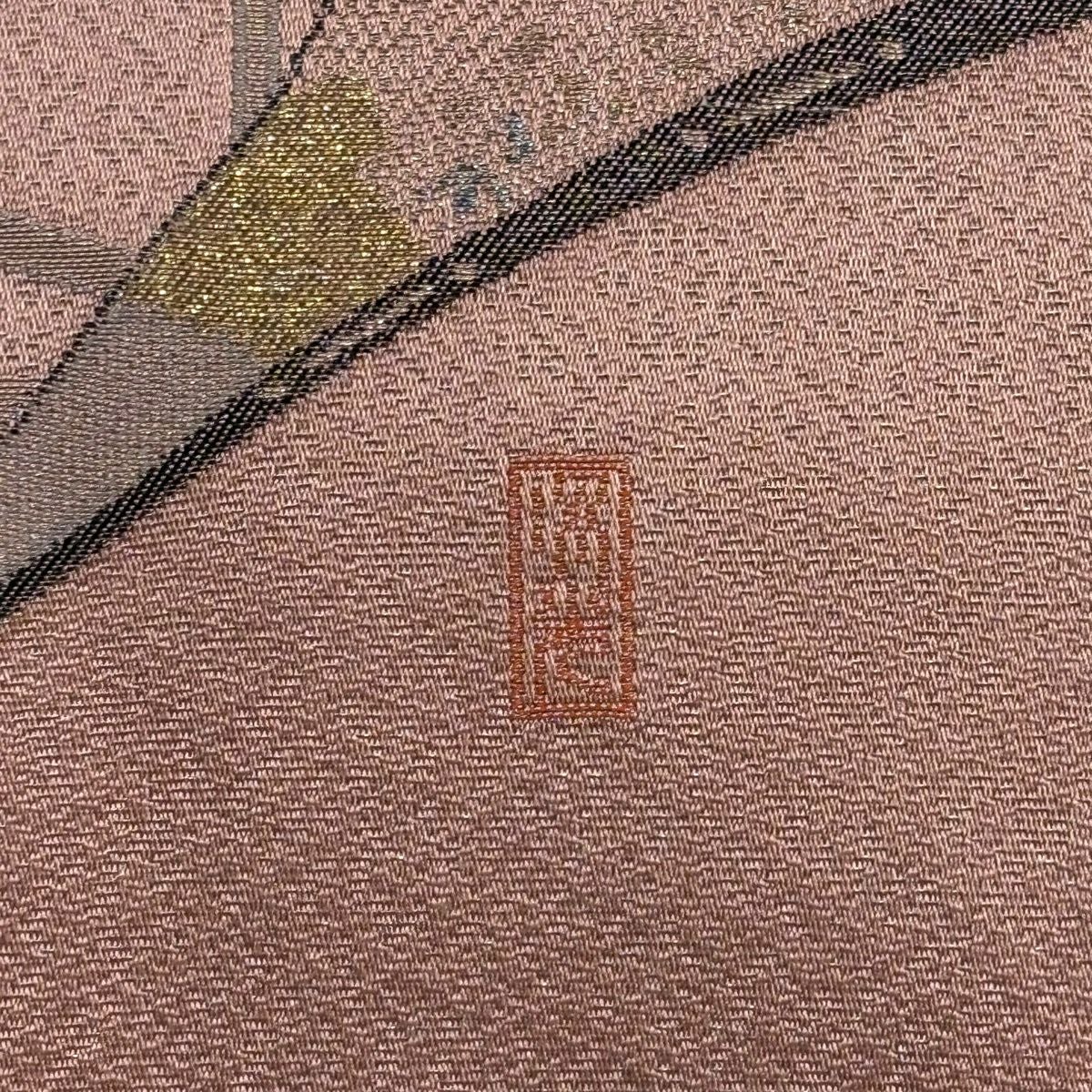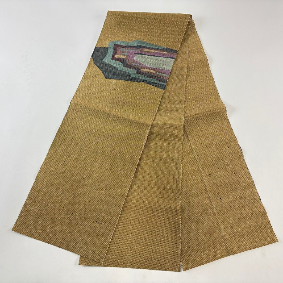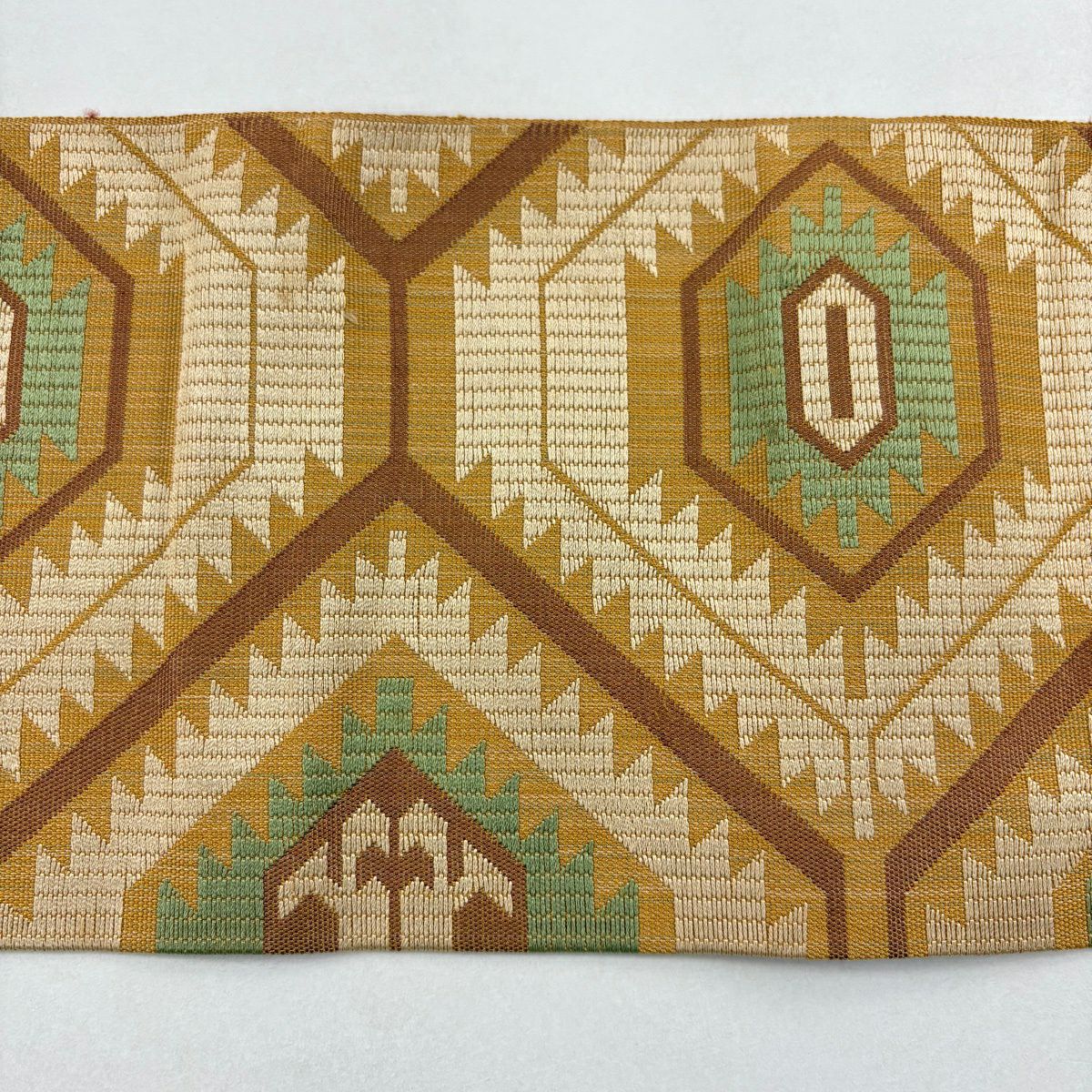名古屋帯 優品 八寸名古屋帯 夏帯 幾何学 金通し 黄土色 正絹