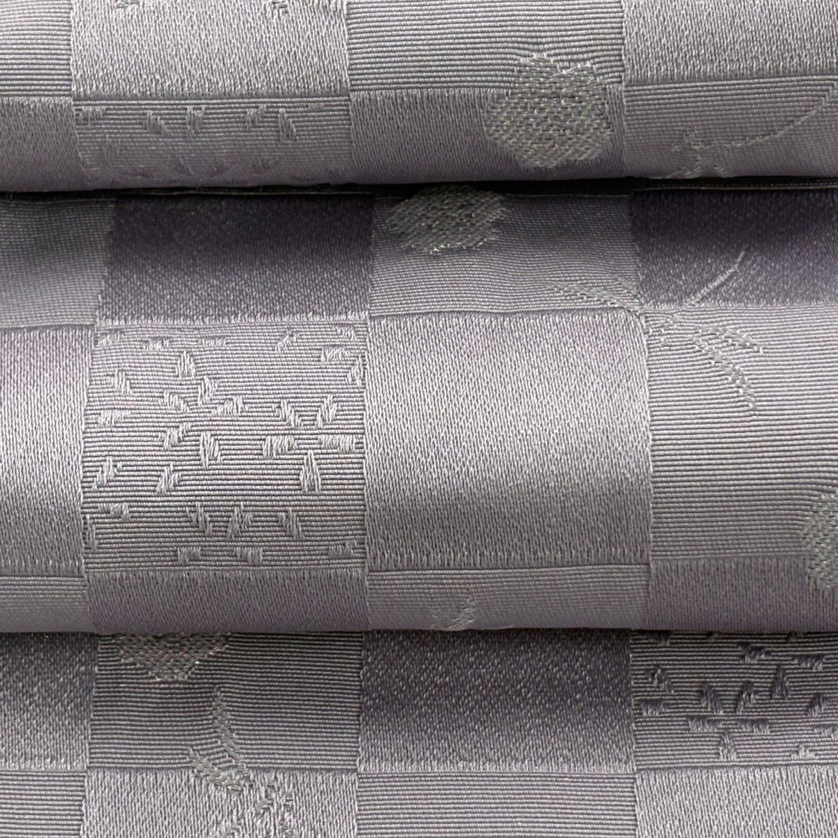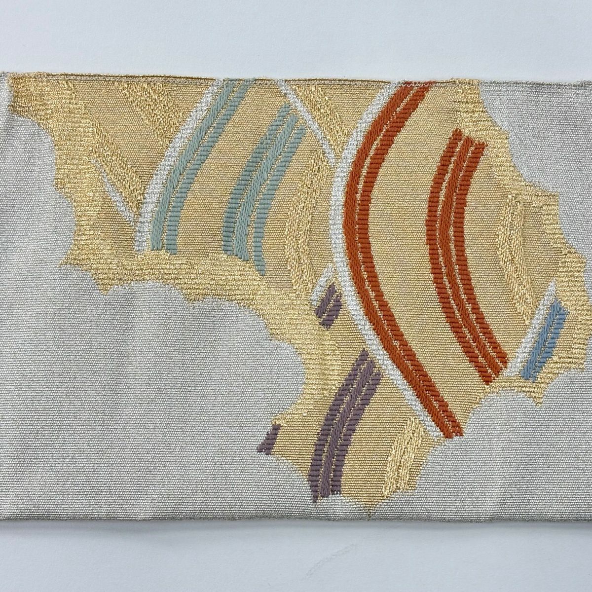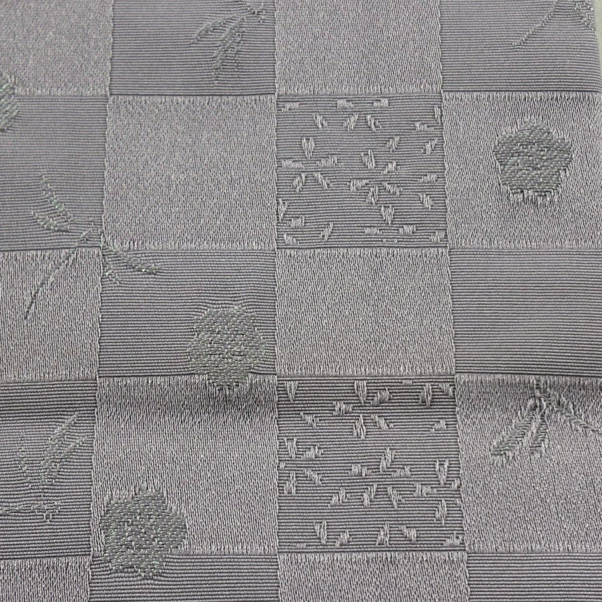 【在庫一掃】 名古屋帯 優品 草花 幾何学模様 銀色 正絹