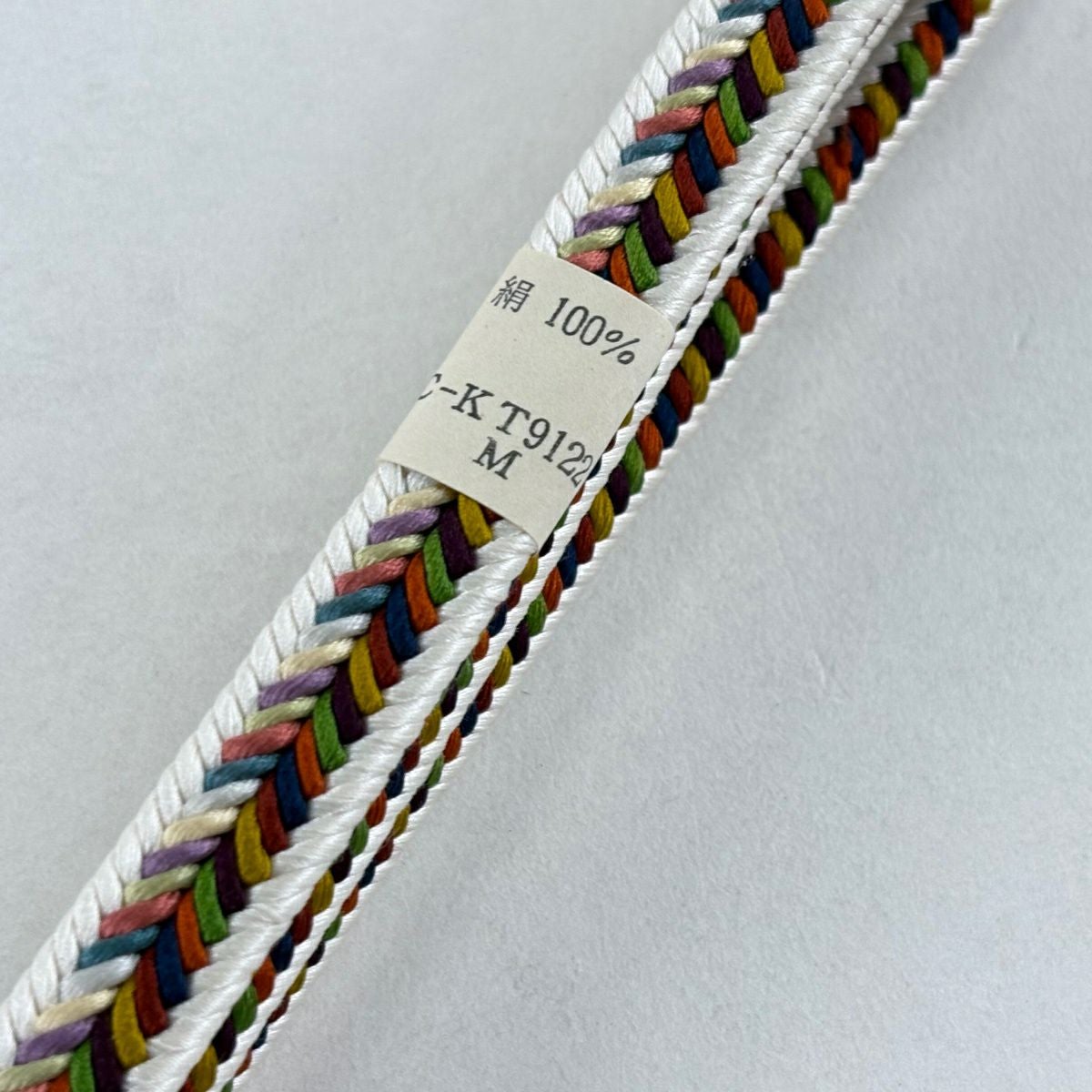【美品】帯締め 優品 幾何学模様 クリーム 正絹 和装小物