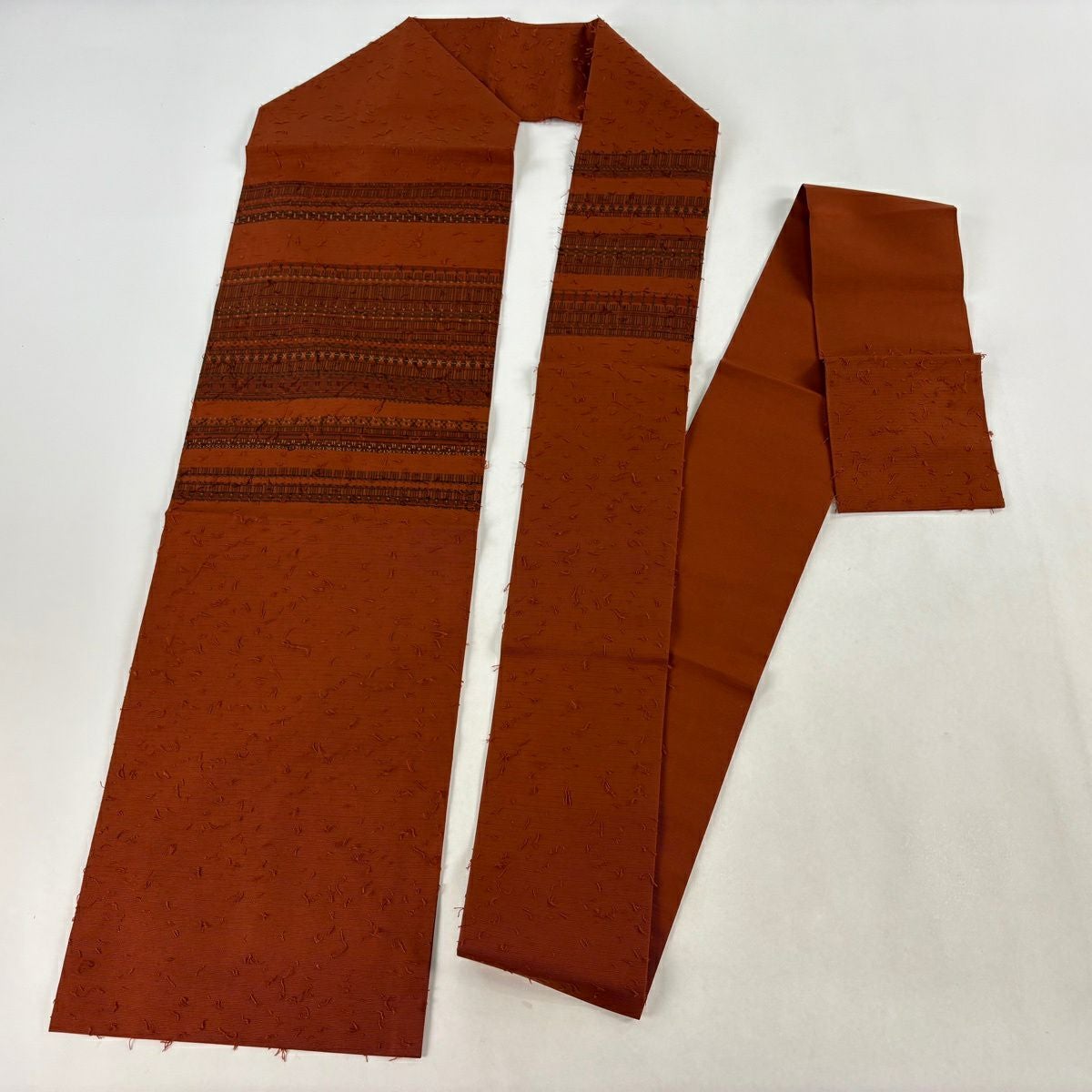 【美品】 名古屋帯 優品 八寸名古屋帯 松葉仕立て 縞 赤 正絹