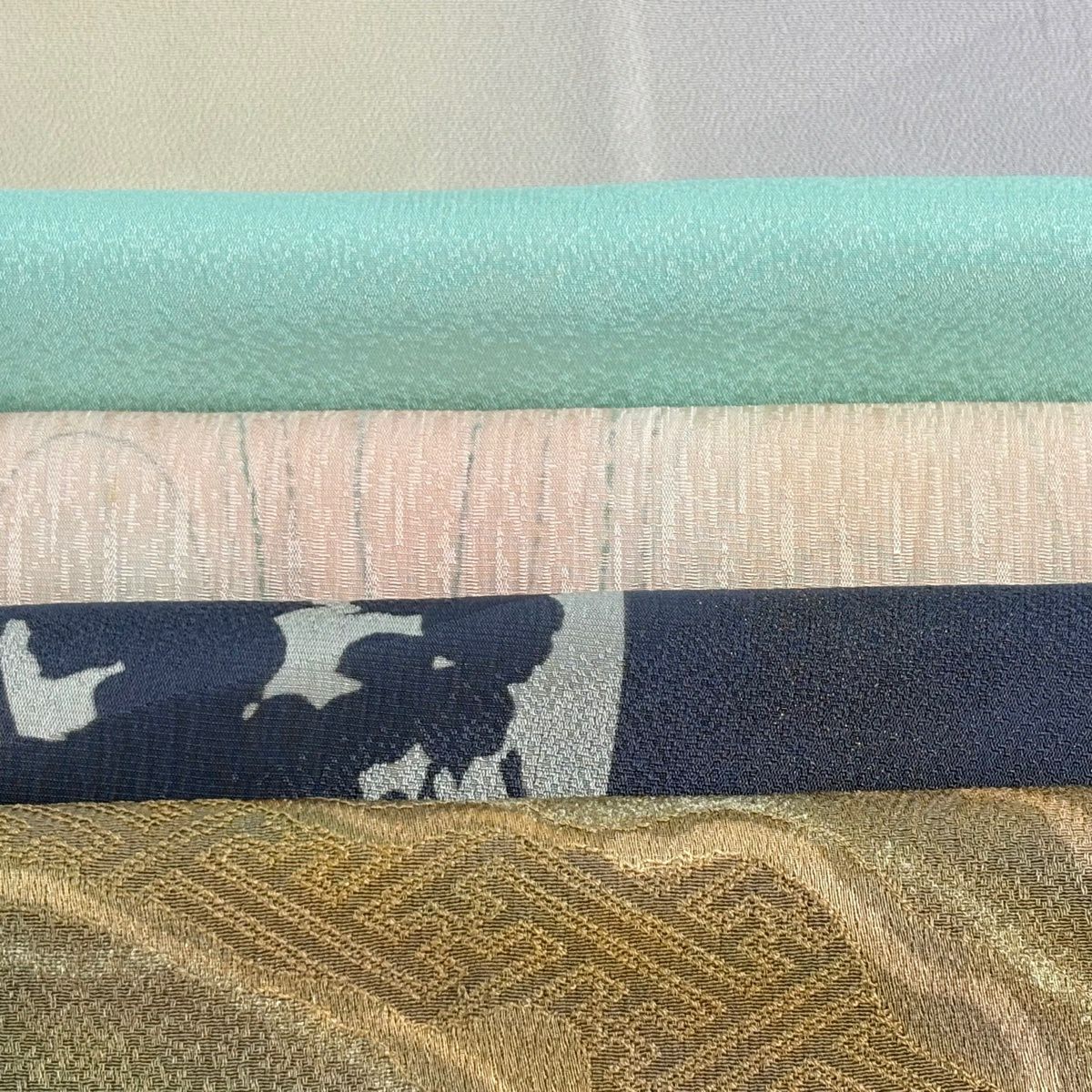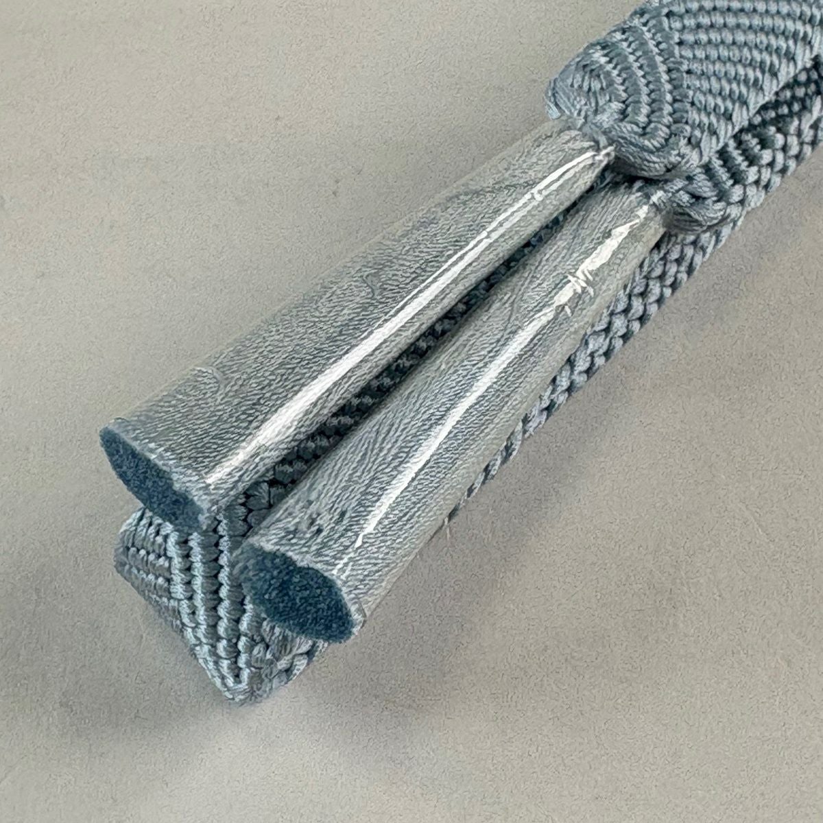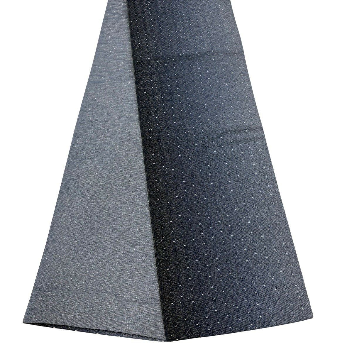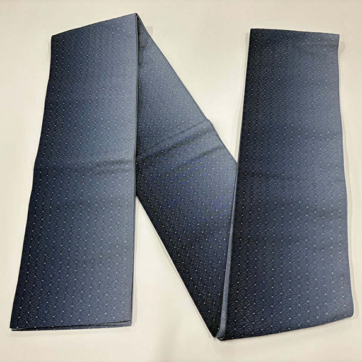 【美品】半幅帯 優品 麻の葉 ラメ糸 ぼかし 青灰色 化繊