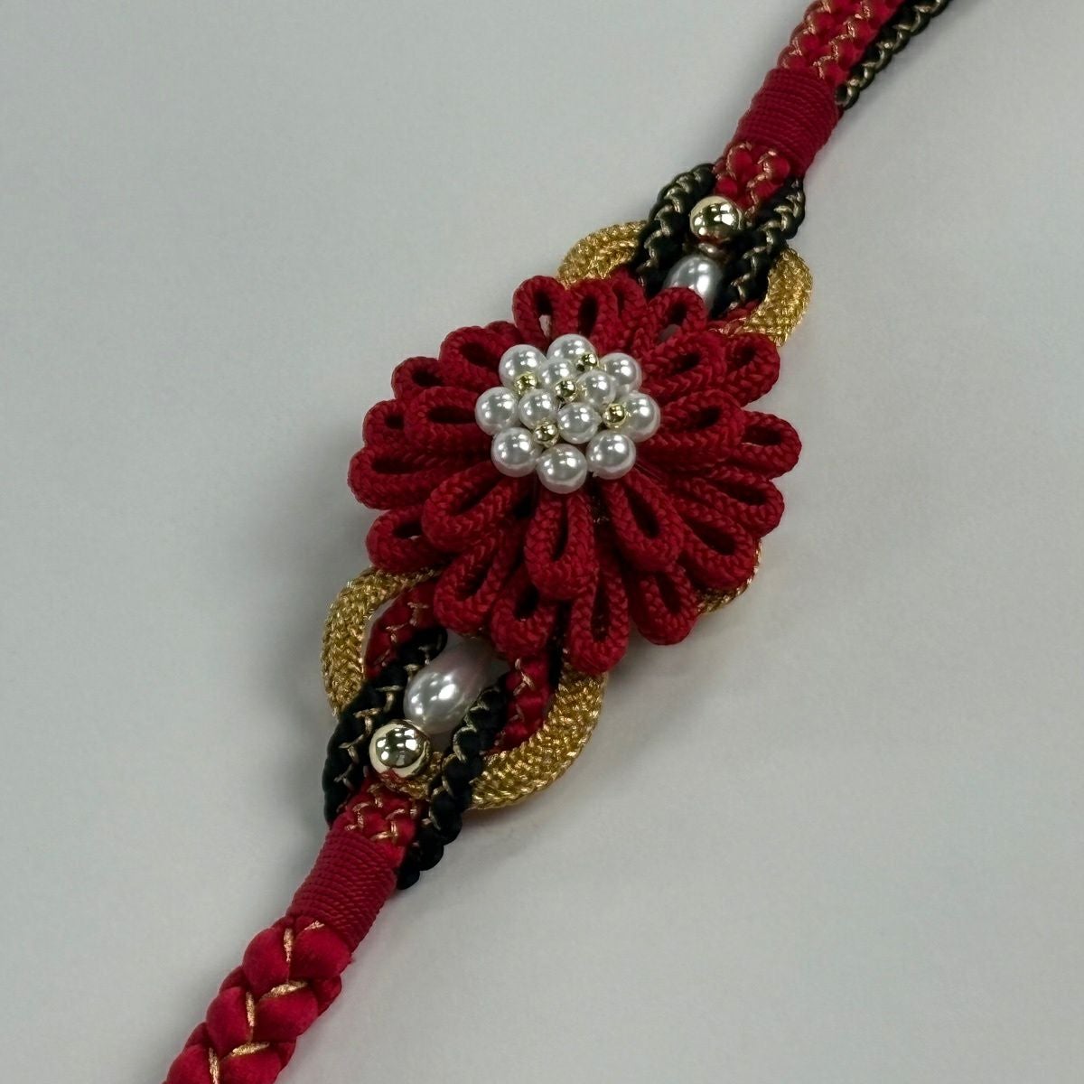 【美品】帯締め 優品 フォーマル 金糸 赤 正絹 和装小物