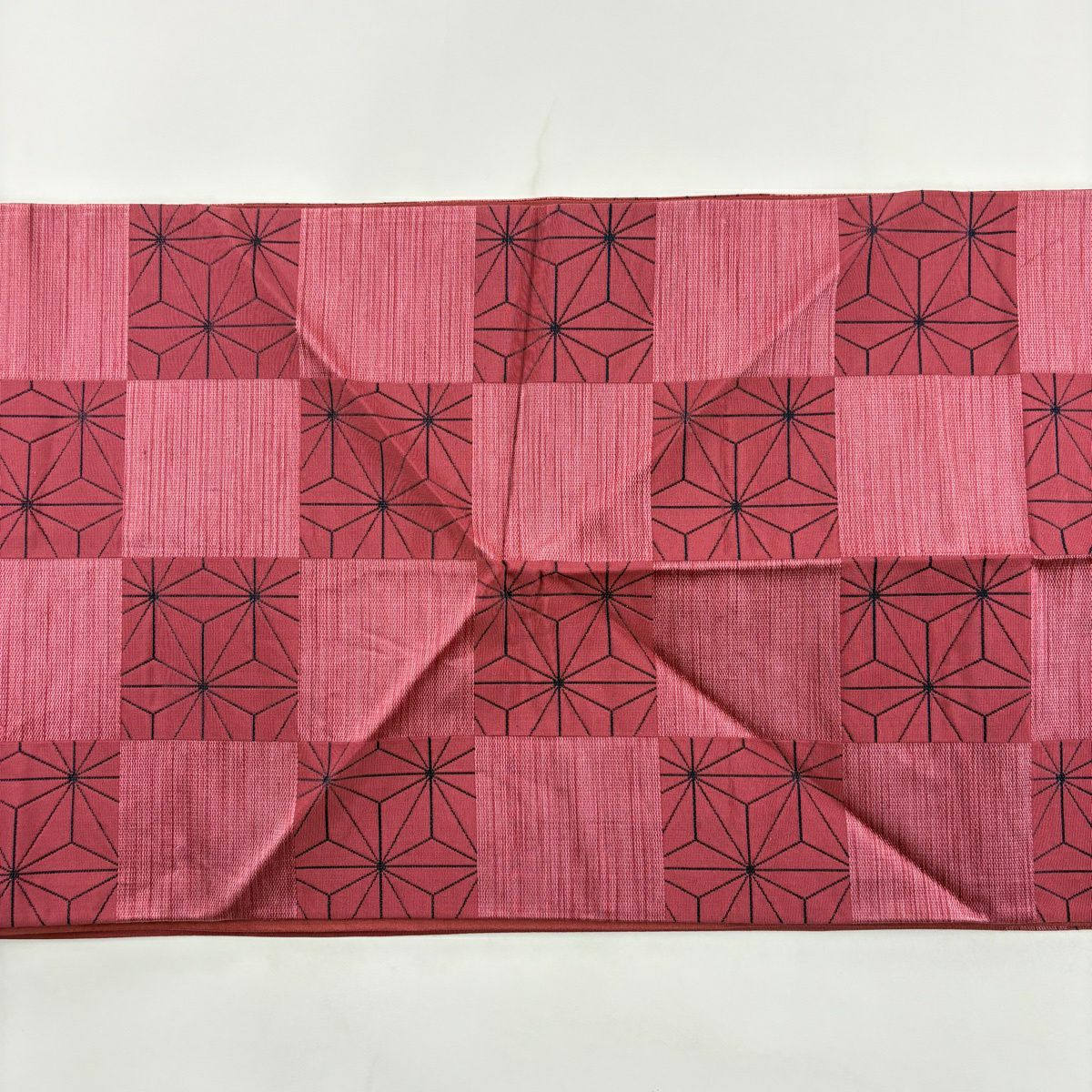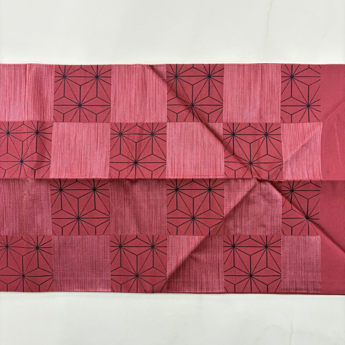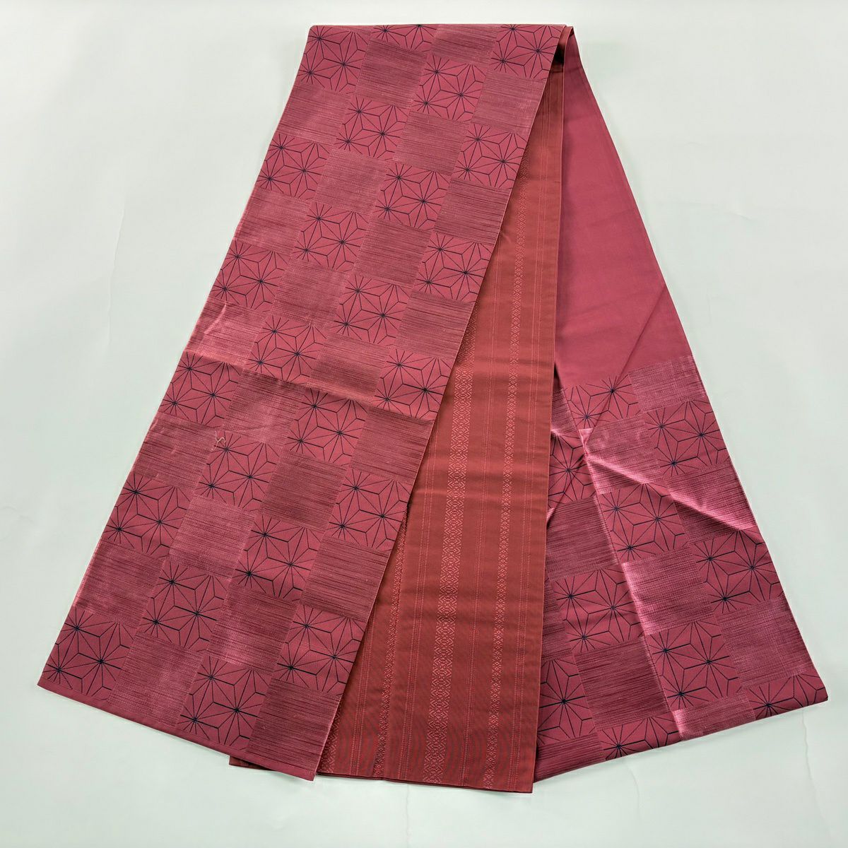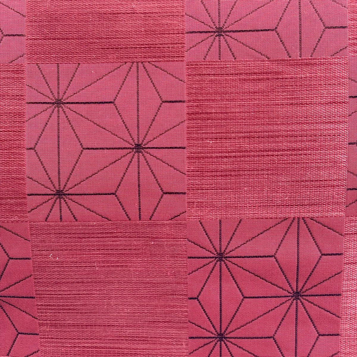 袋名古屋帯 優品 関西仕立て 市松取り 麻の葉 赤紫 正絹