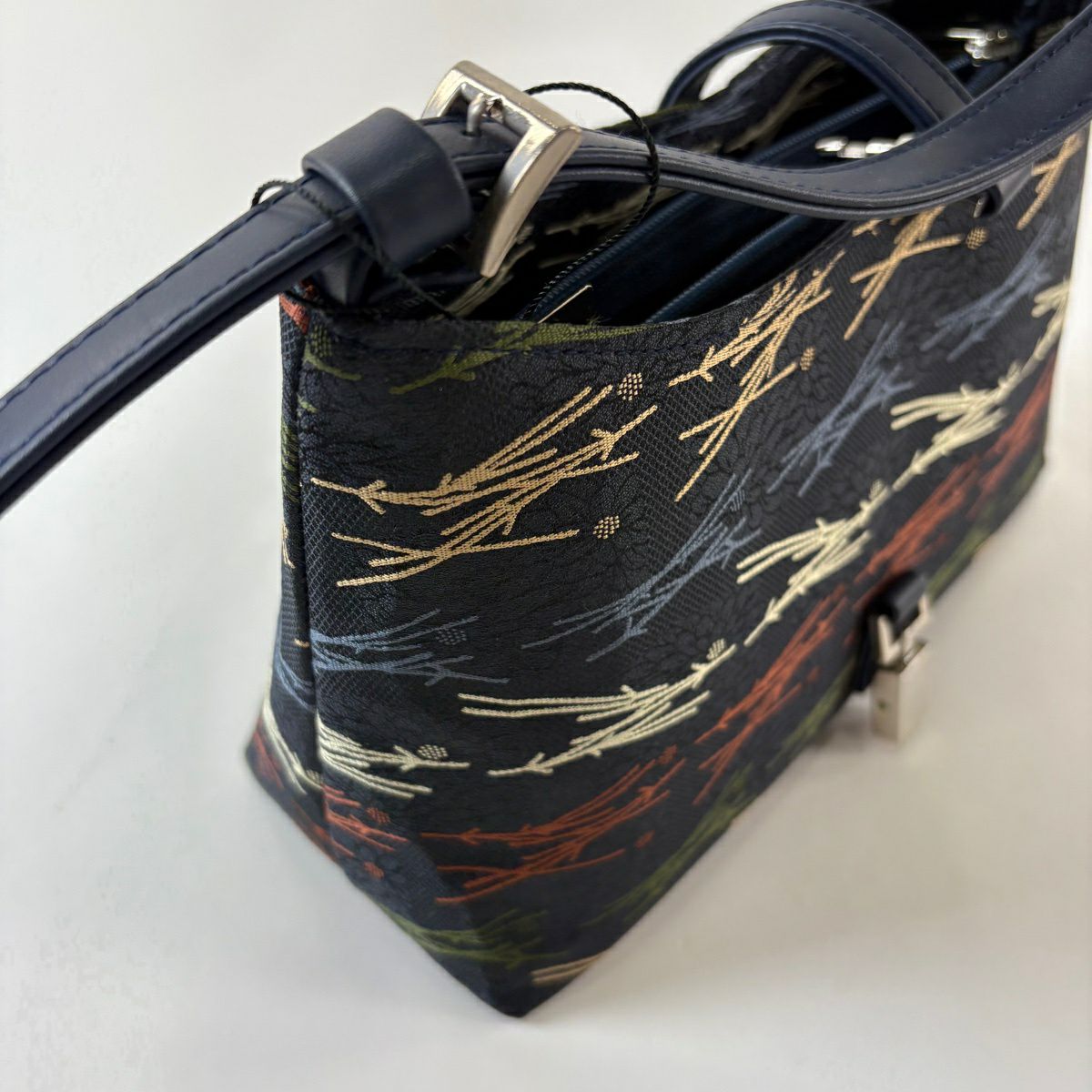 和装バッグ 優品 カジュアル 松葉 紺色 正絹 和装小物