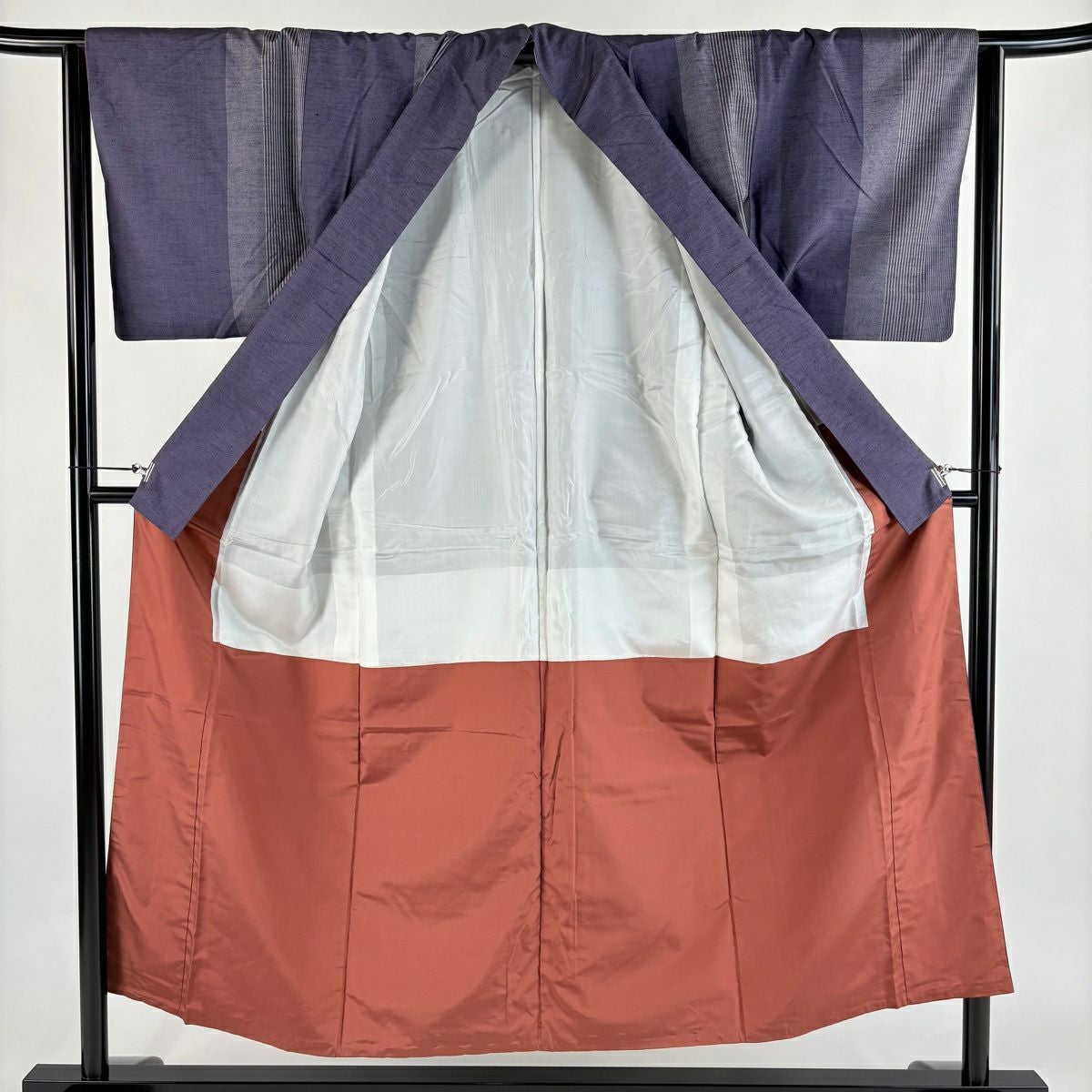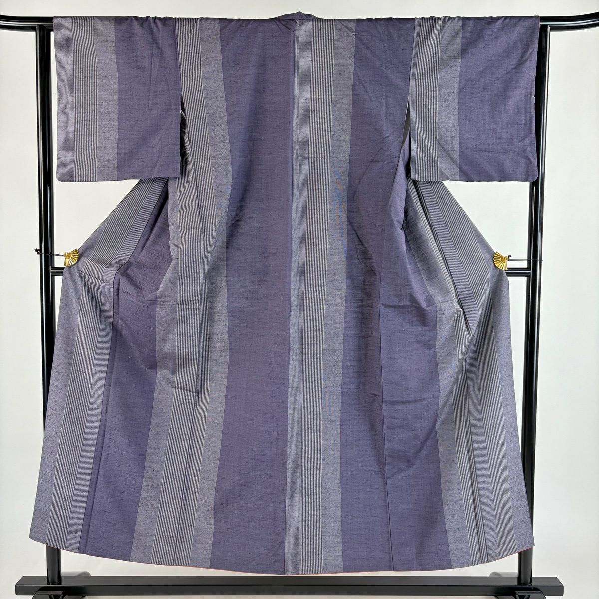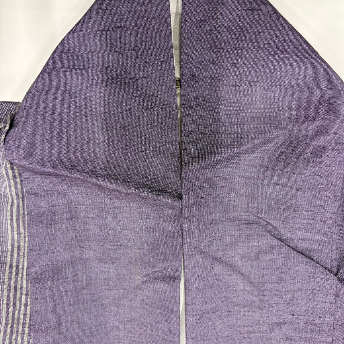 紬 身丈151cm 裄丈63cm S 袷 縞 紫 正絹 優品