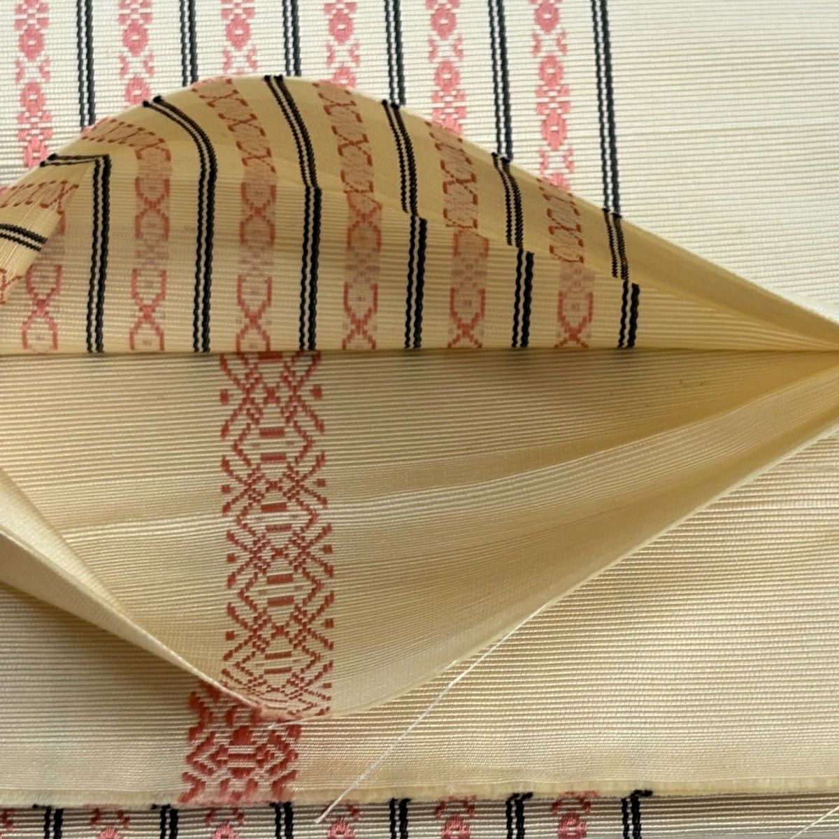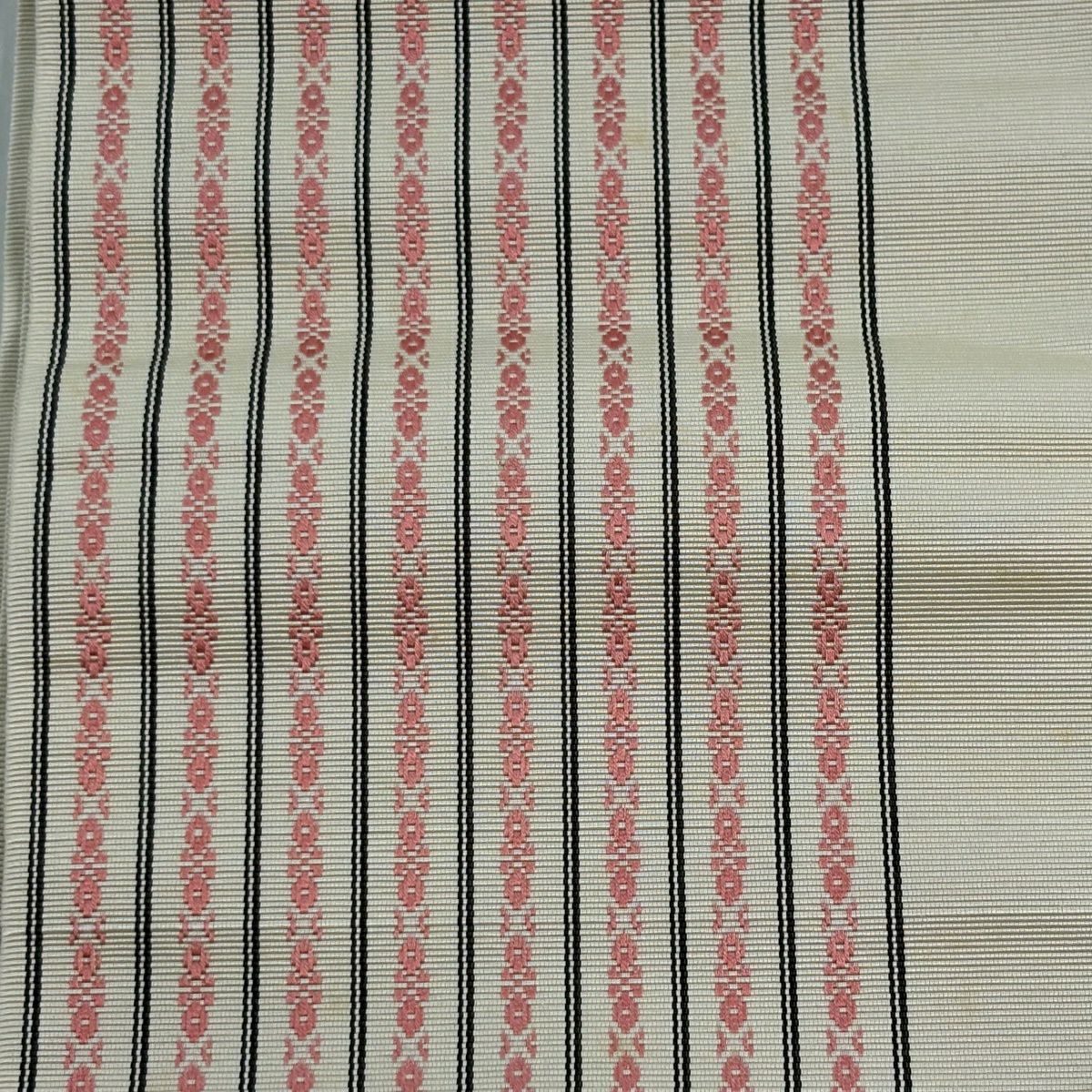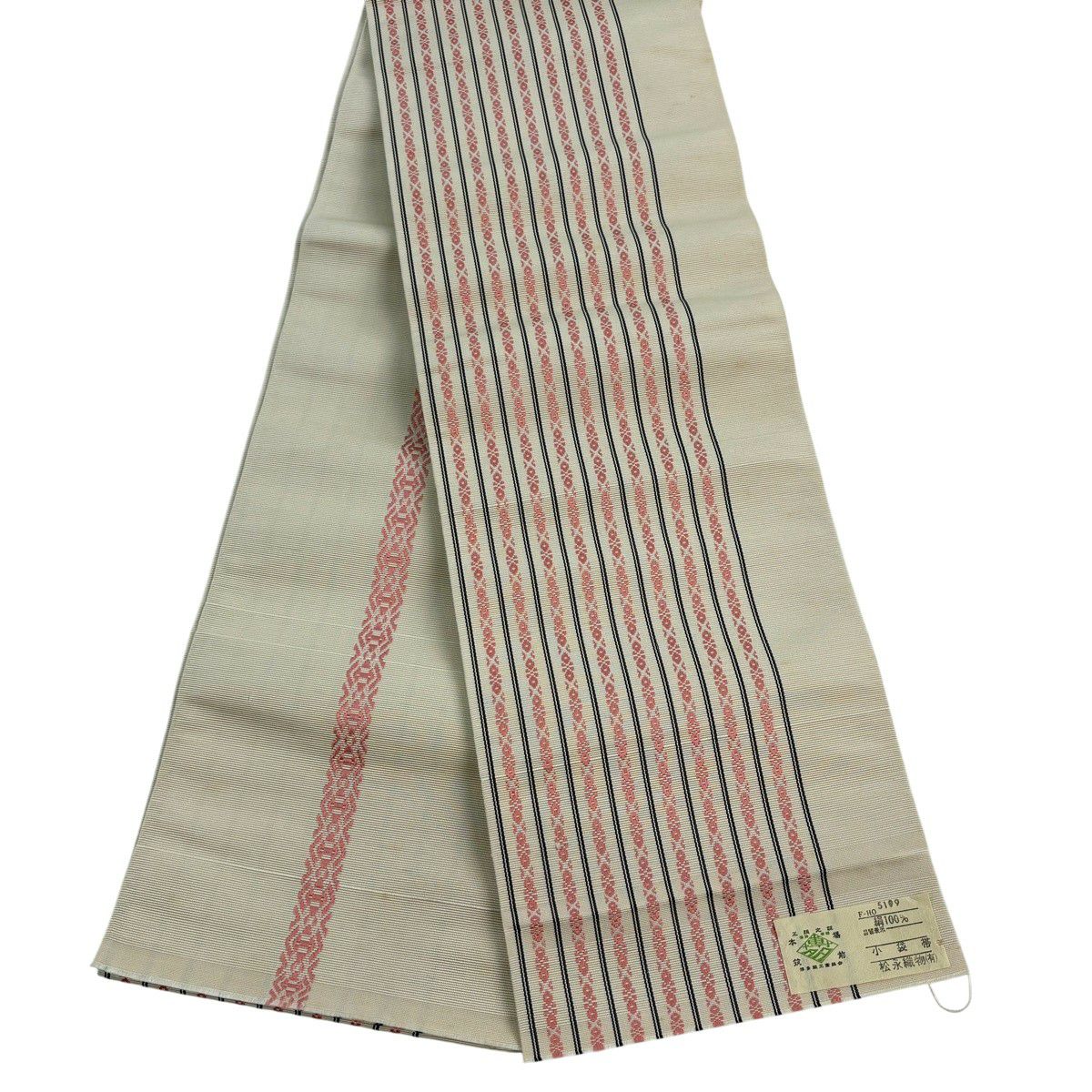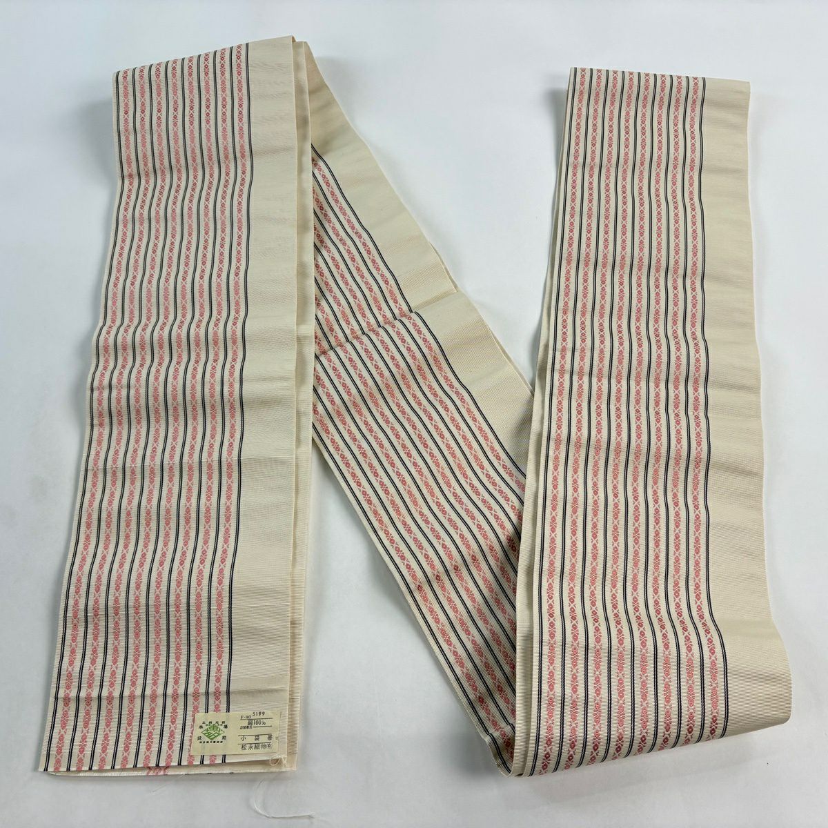 半幅帯 優品 博多織 証紙 縞 幾何学 ベージュ 正絹