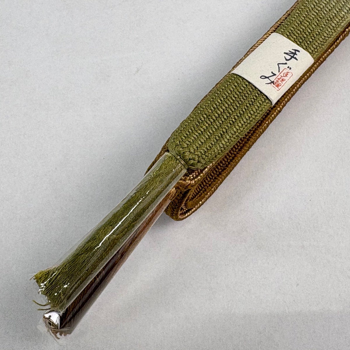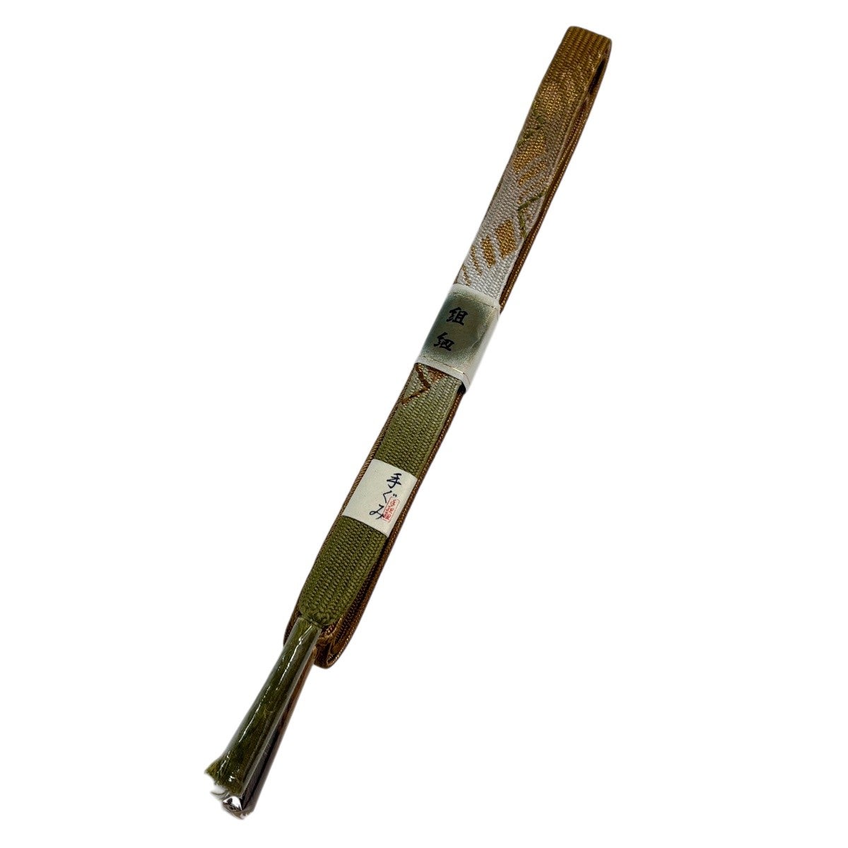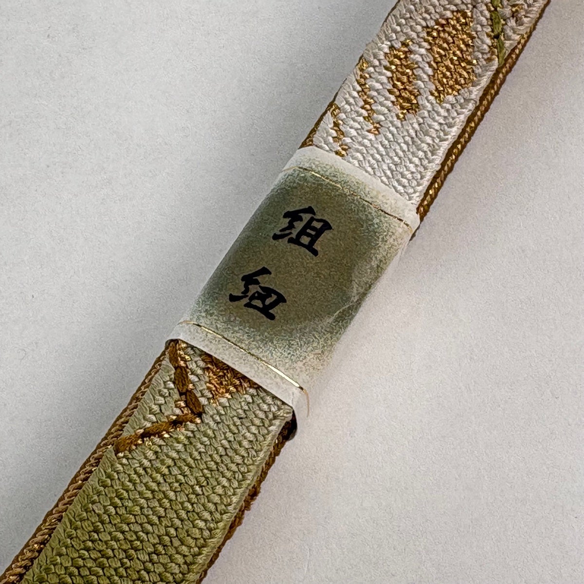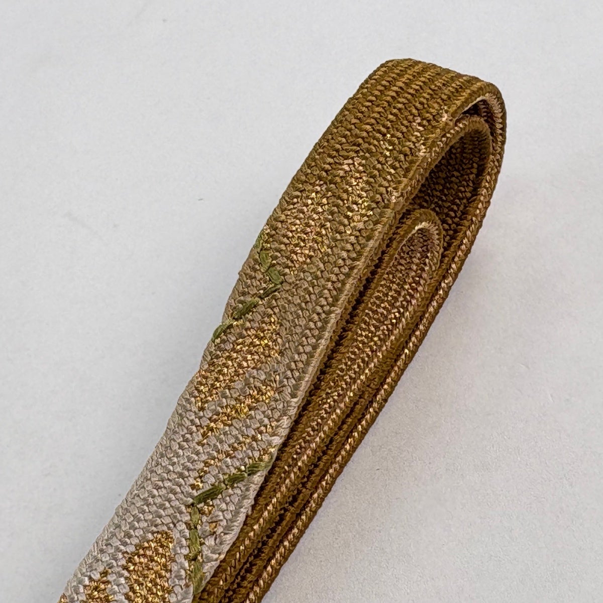 【美品】帯締め 優品 フォーマル 草花 金糸 茶緑色 正絹 和装小物
