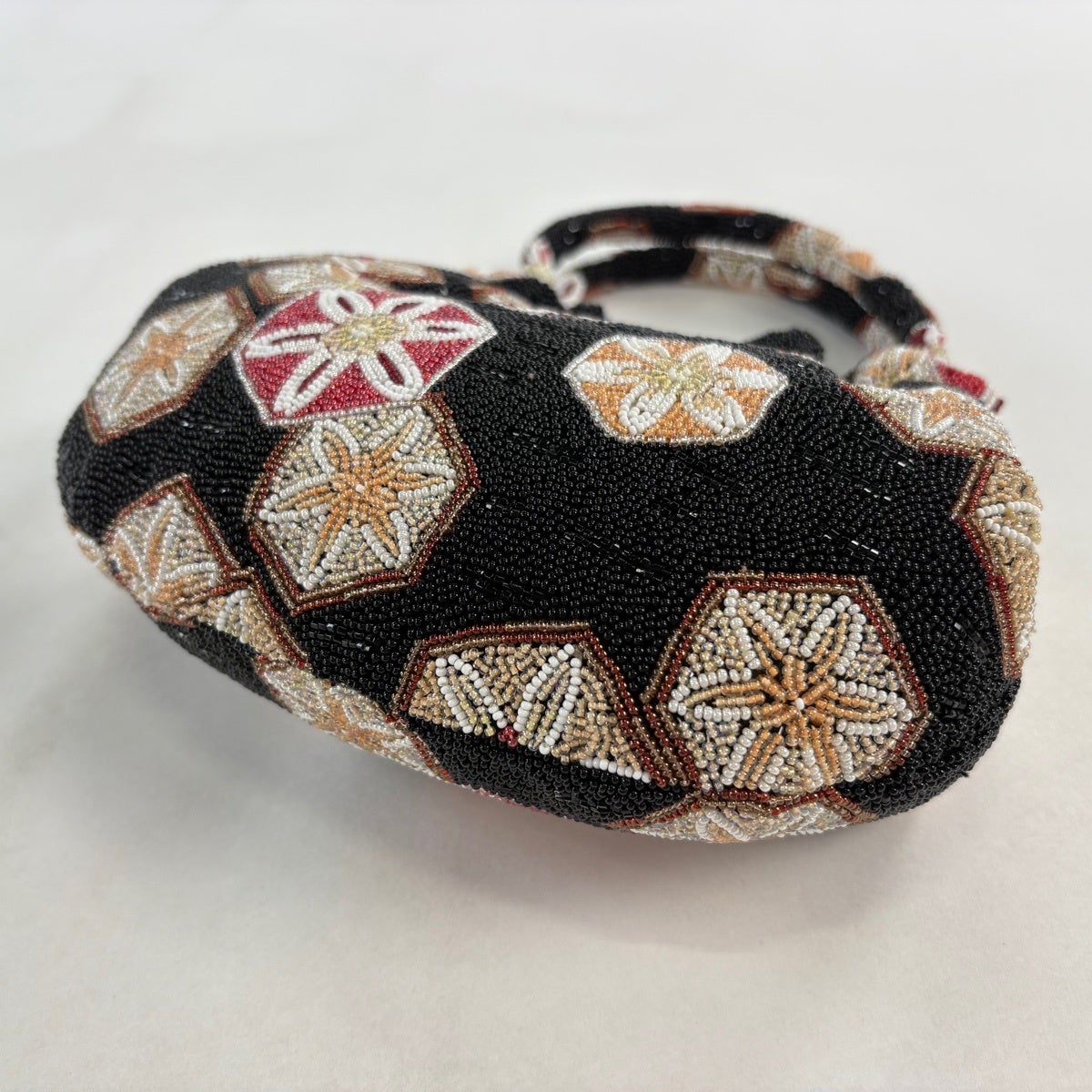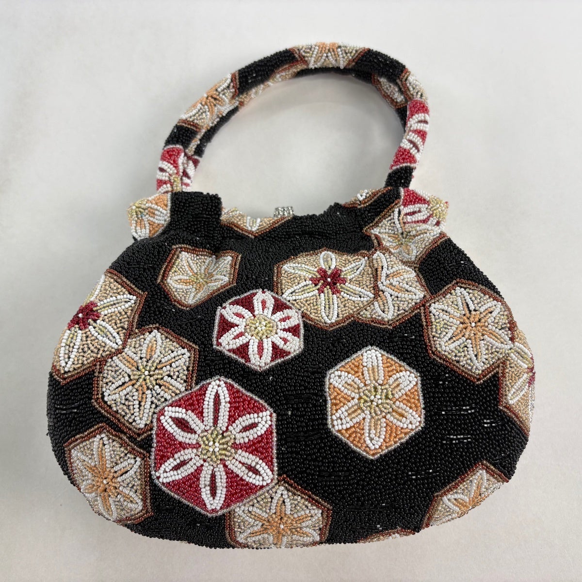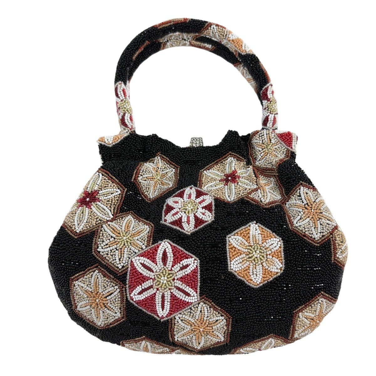 和装バッグ 優品 ビーズバッグ フォーマル 亀甲 花 黒 ビーズ 和装小物
