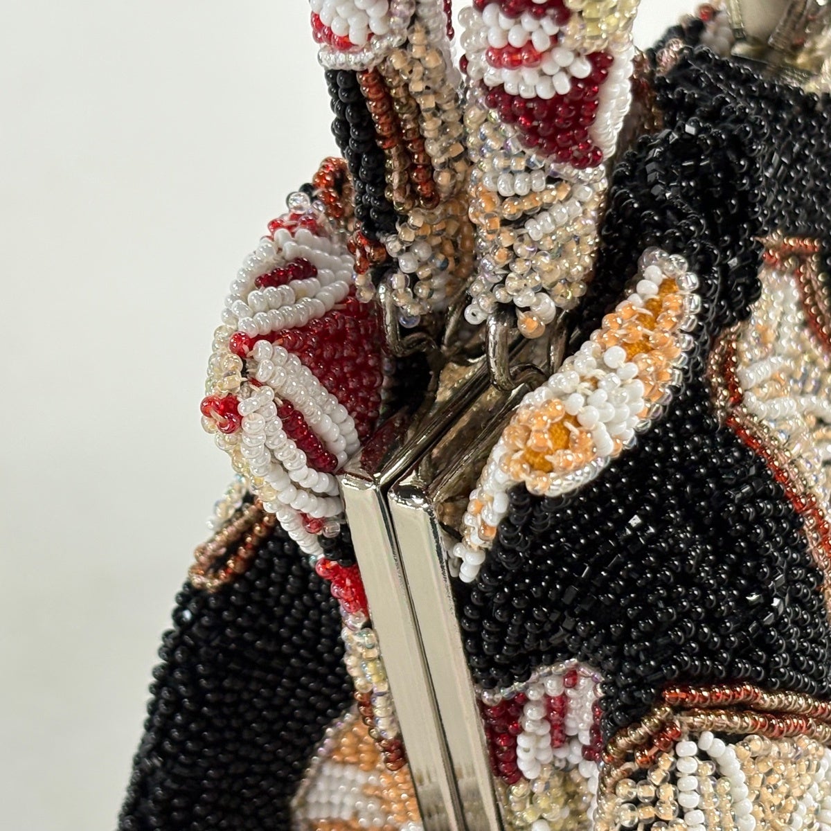 和装バッグ 優品 ビーズバッグ フォーマル 菊 亀甲 黒 ビーズ 和装小物