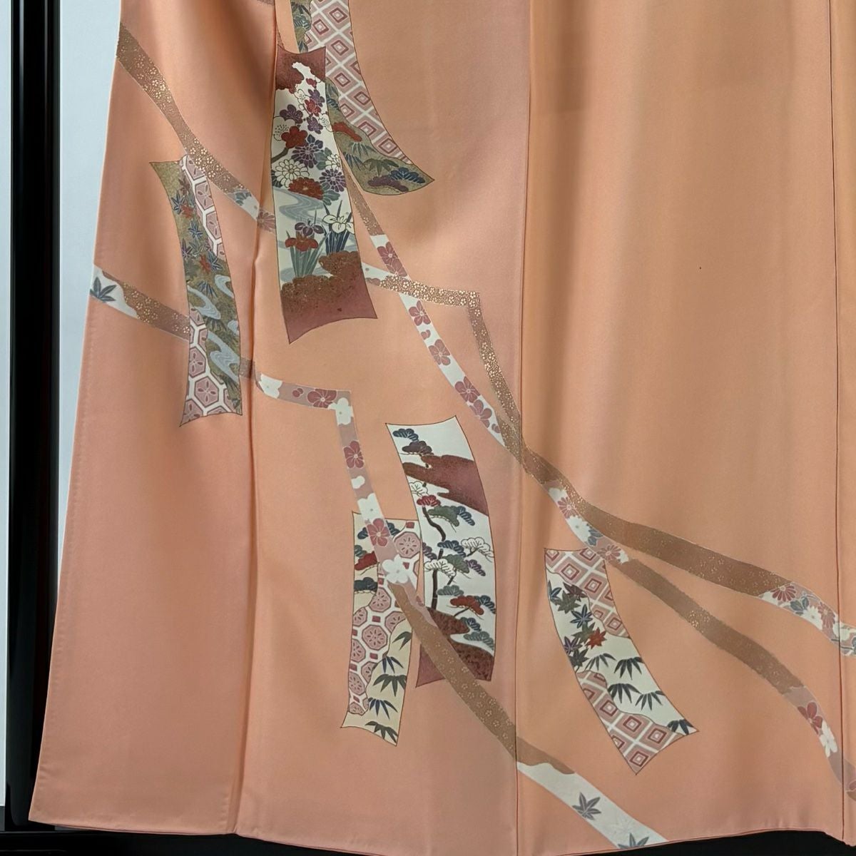 他の画像を見る 【最終値引き】 70%OFF 色留袖 身丈164cm 裄丈65.5cm M 袷 流水 金糸 サーモンピンク 正絹 優品 一つ紋 K70 当店通常価格 ¥ 3,800 ¥ 1,140 税込