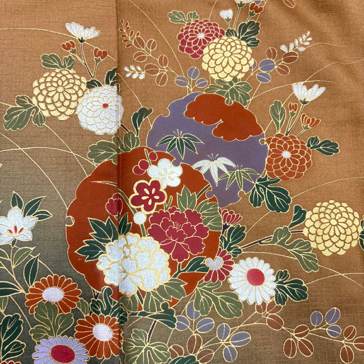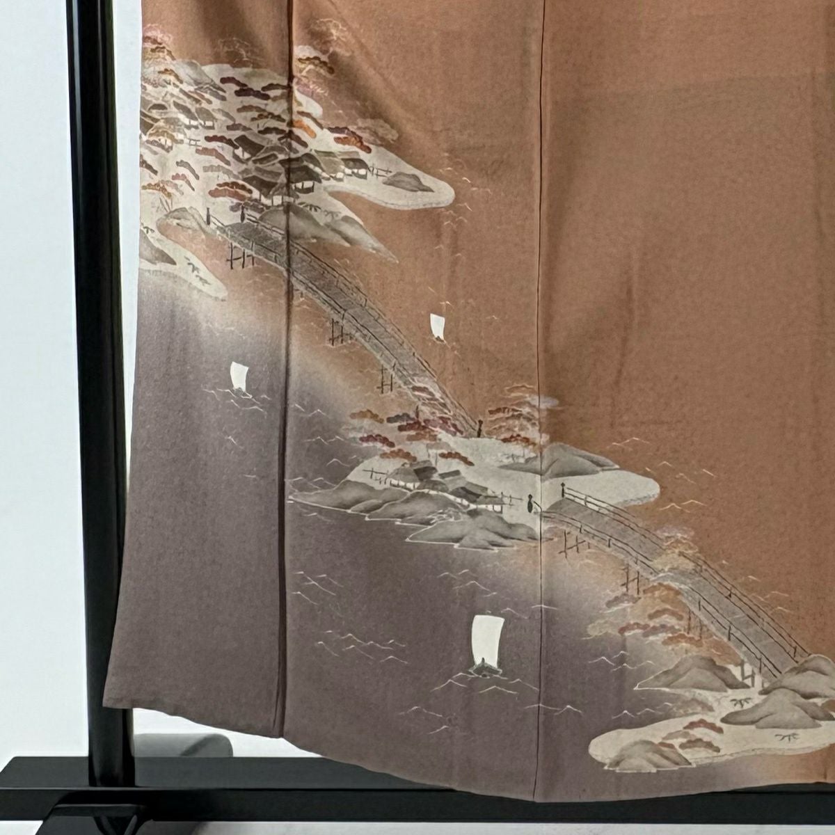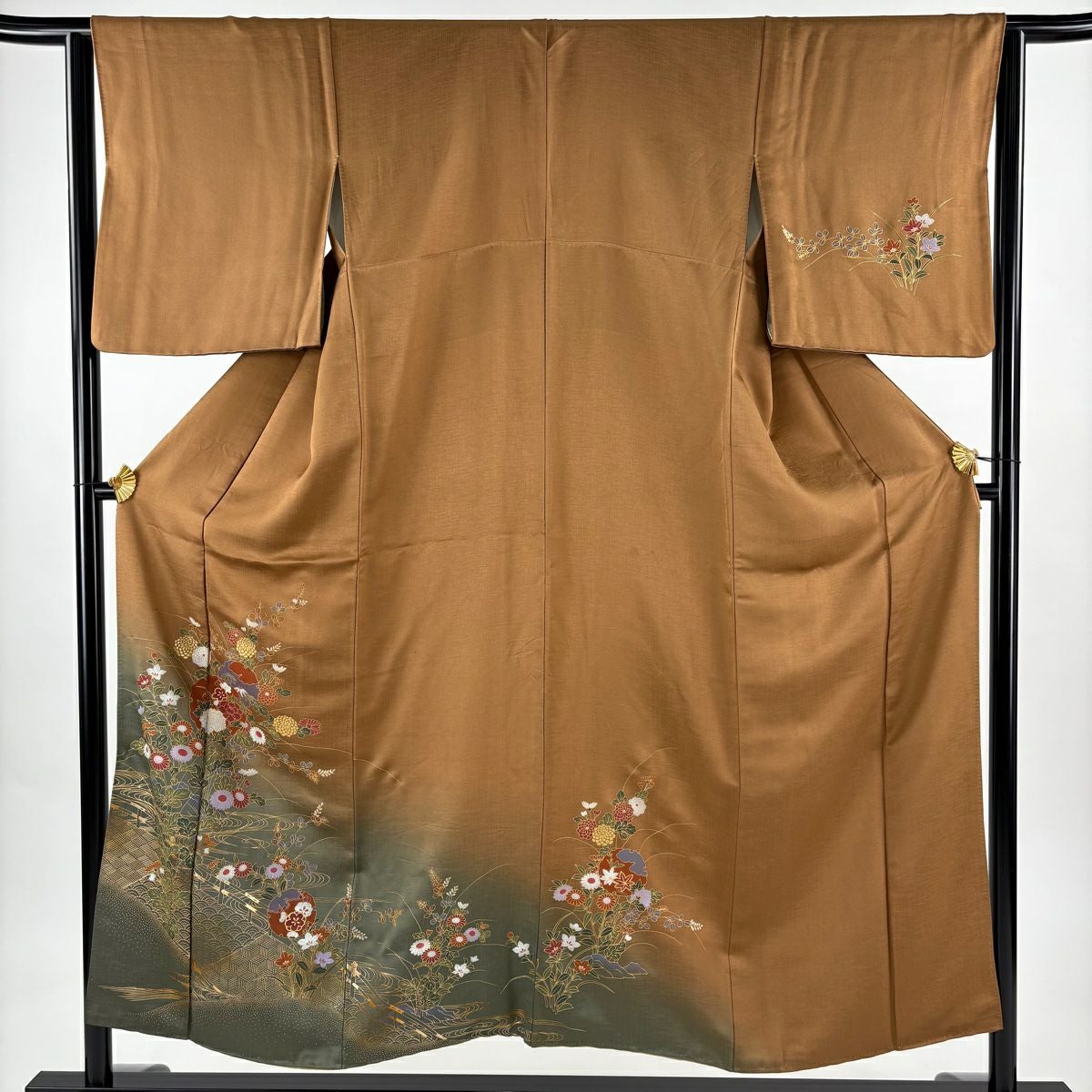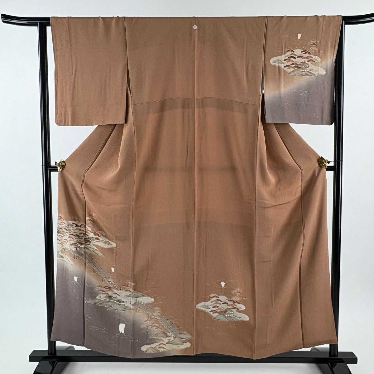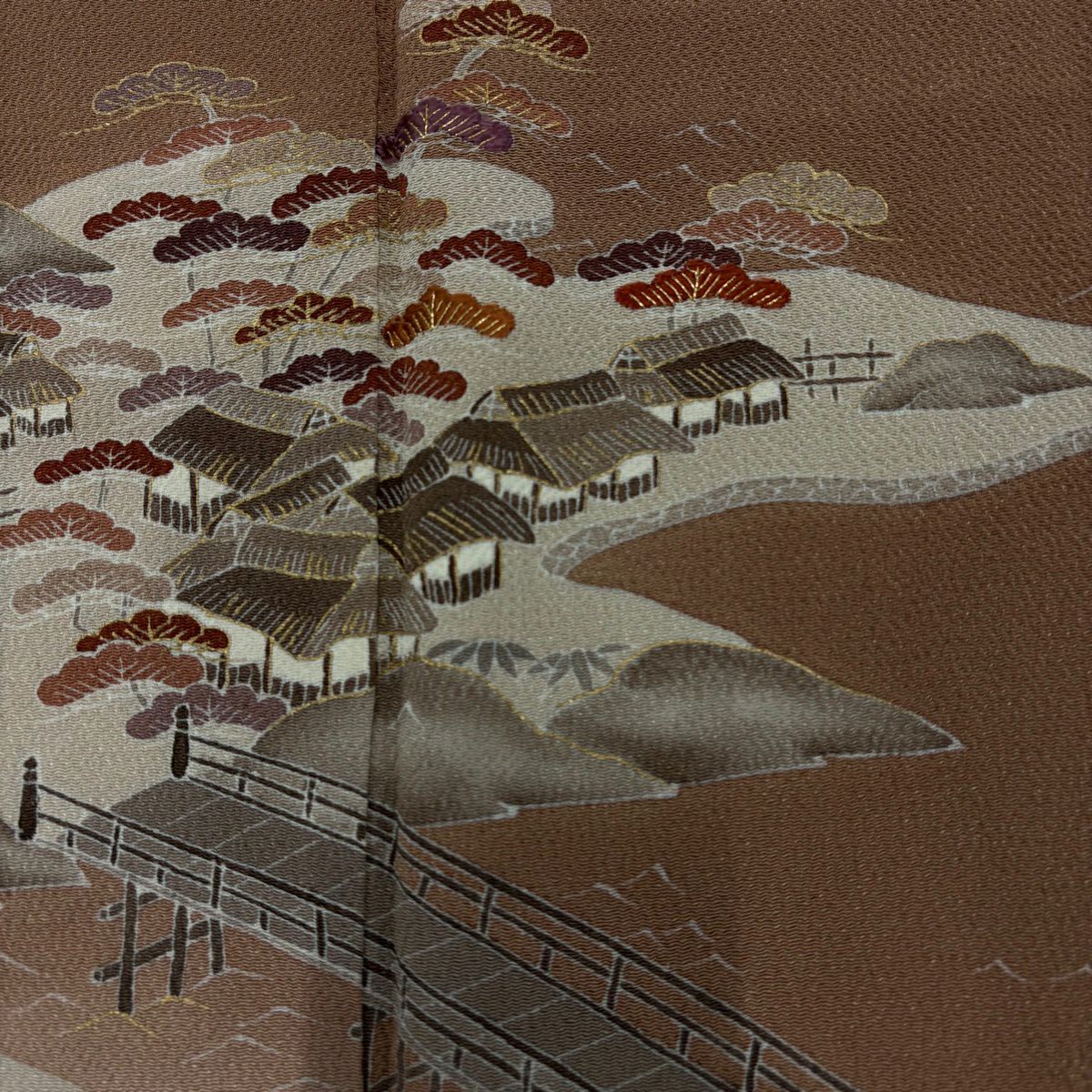 他の画像を見る 【最終値引き】 70%OFF 付下げ 身丈155.5cm 裄丈64.5cm M 袷 風景 金彩 縮緬 茶色 正絹 優品 一つ紋 K70 当店通常価格 ¥ 3,800 ¥ 1,140 税込