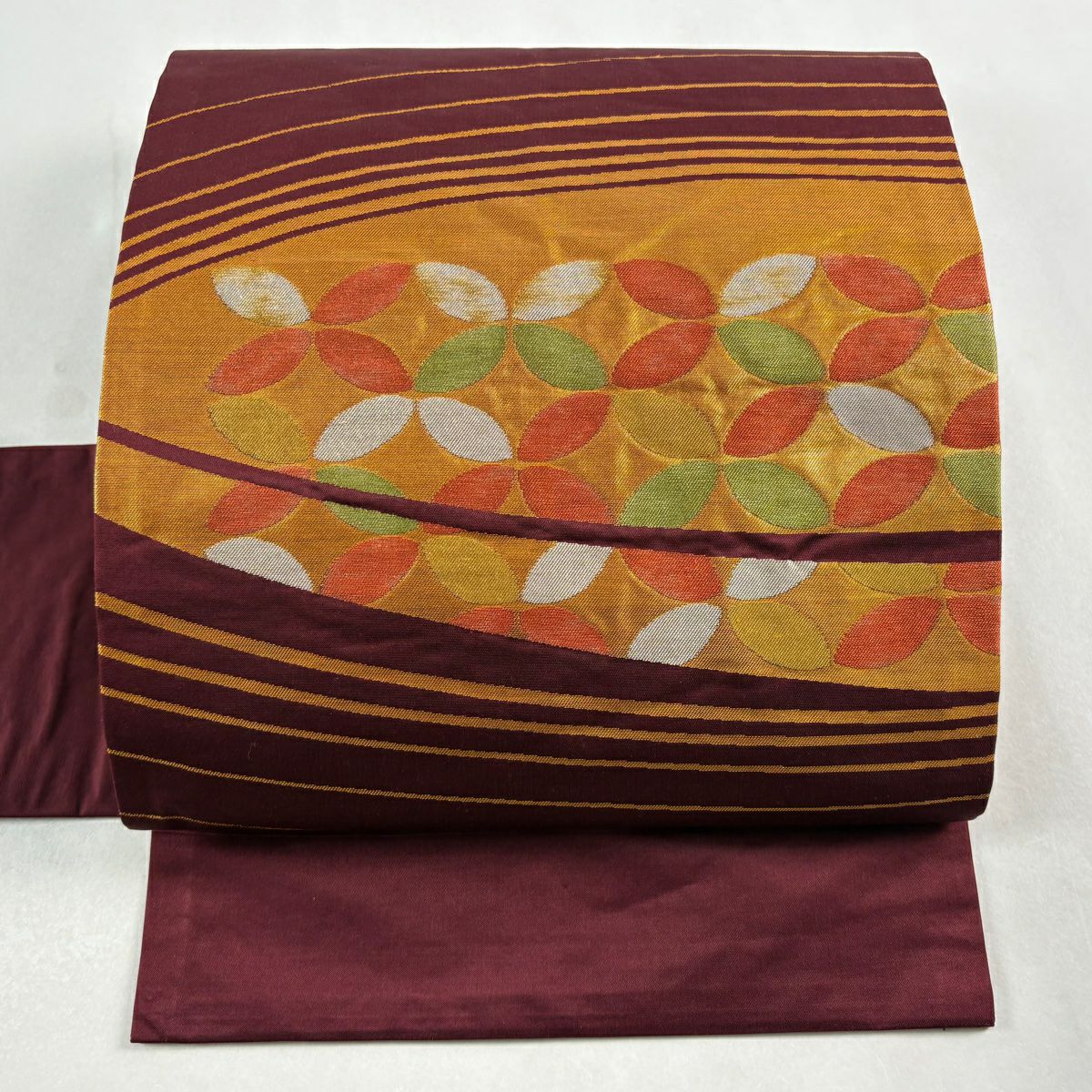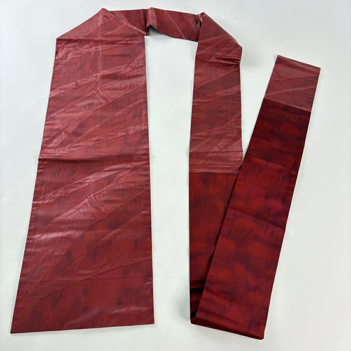 名古屋帯 優品 竹 箔 えんじ色 正絹