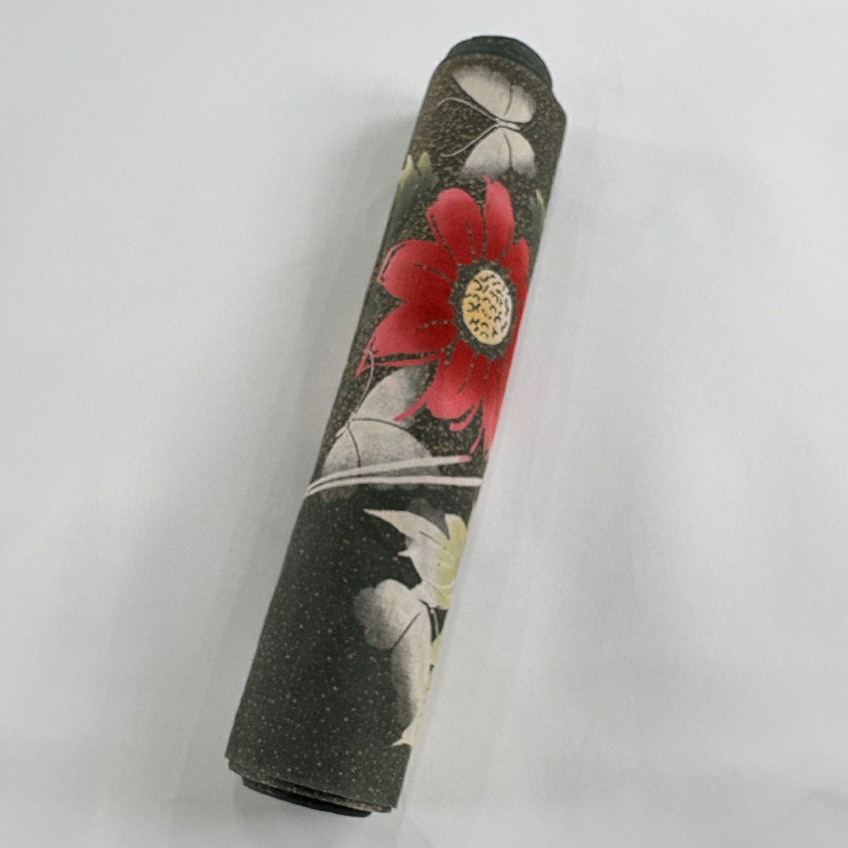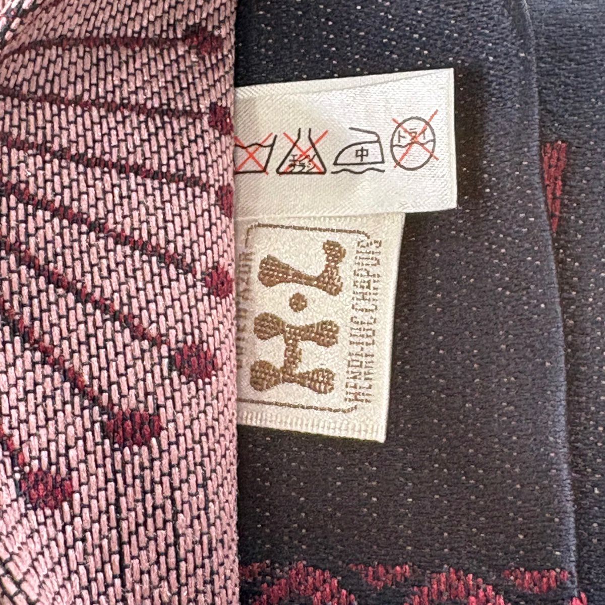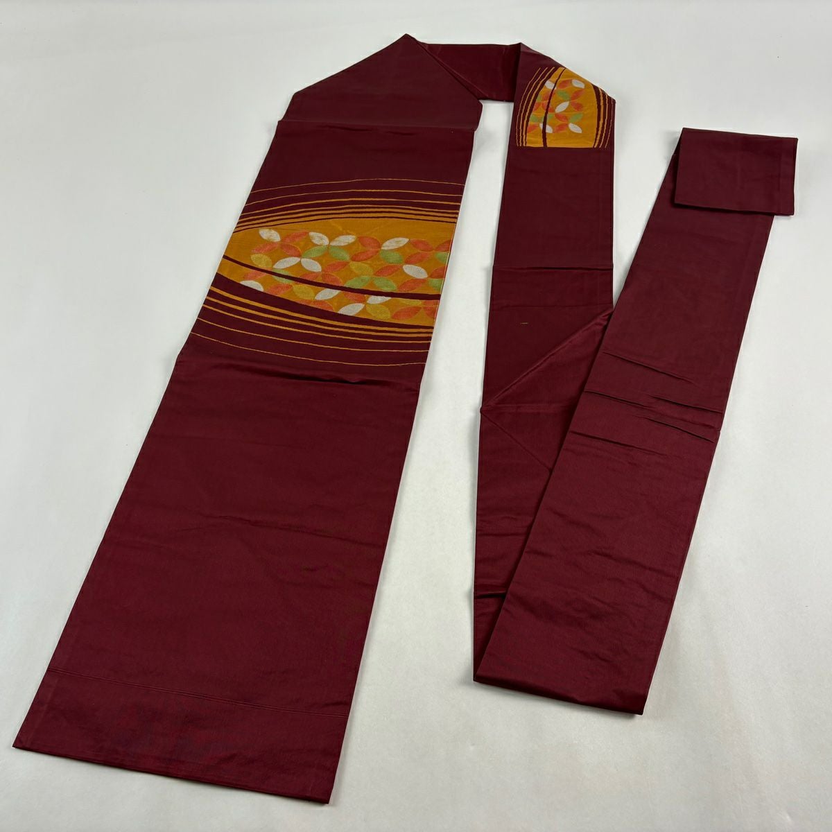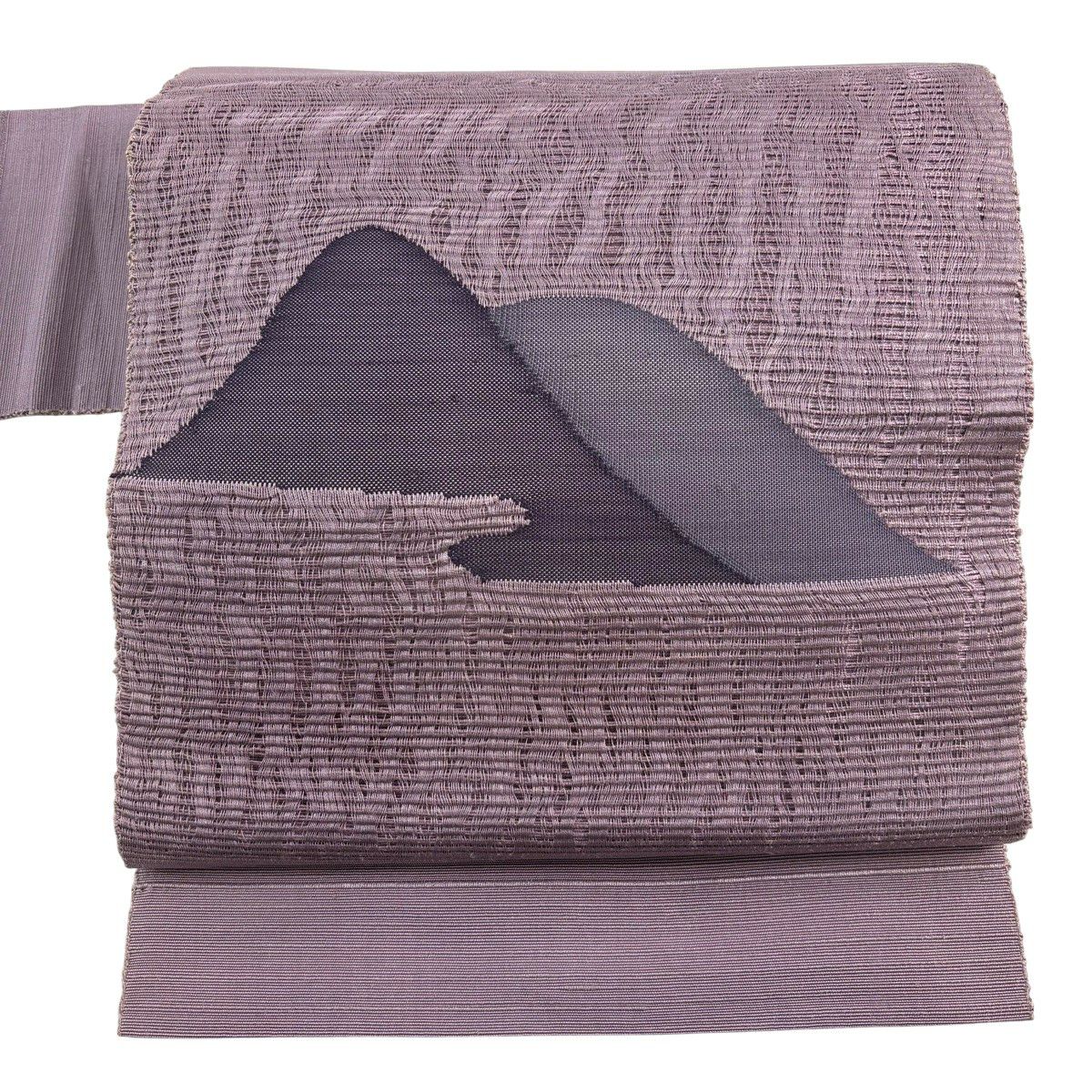 【美品】半幅帯 優品 草花 茶紫 化繊