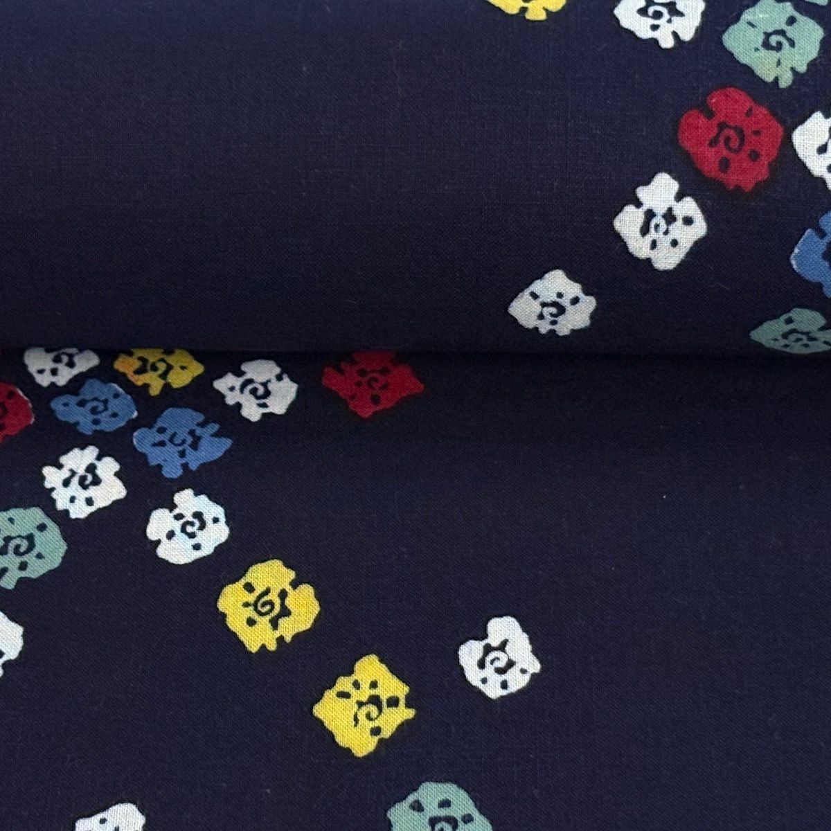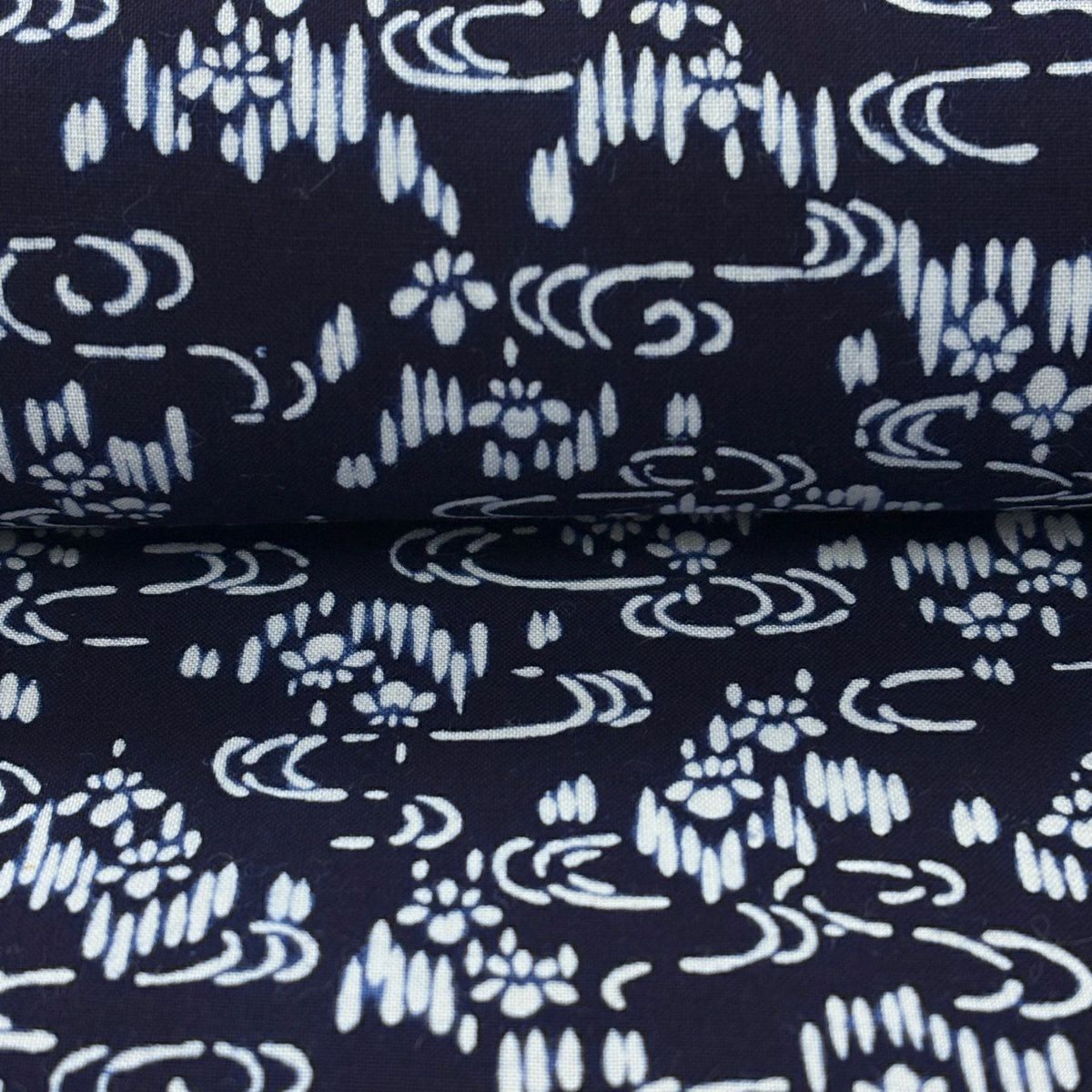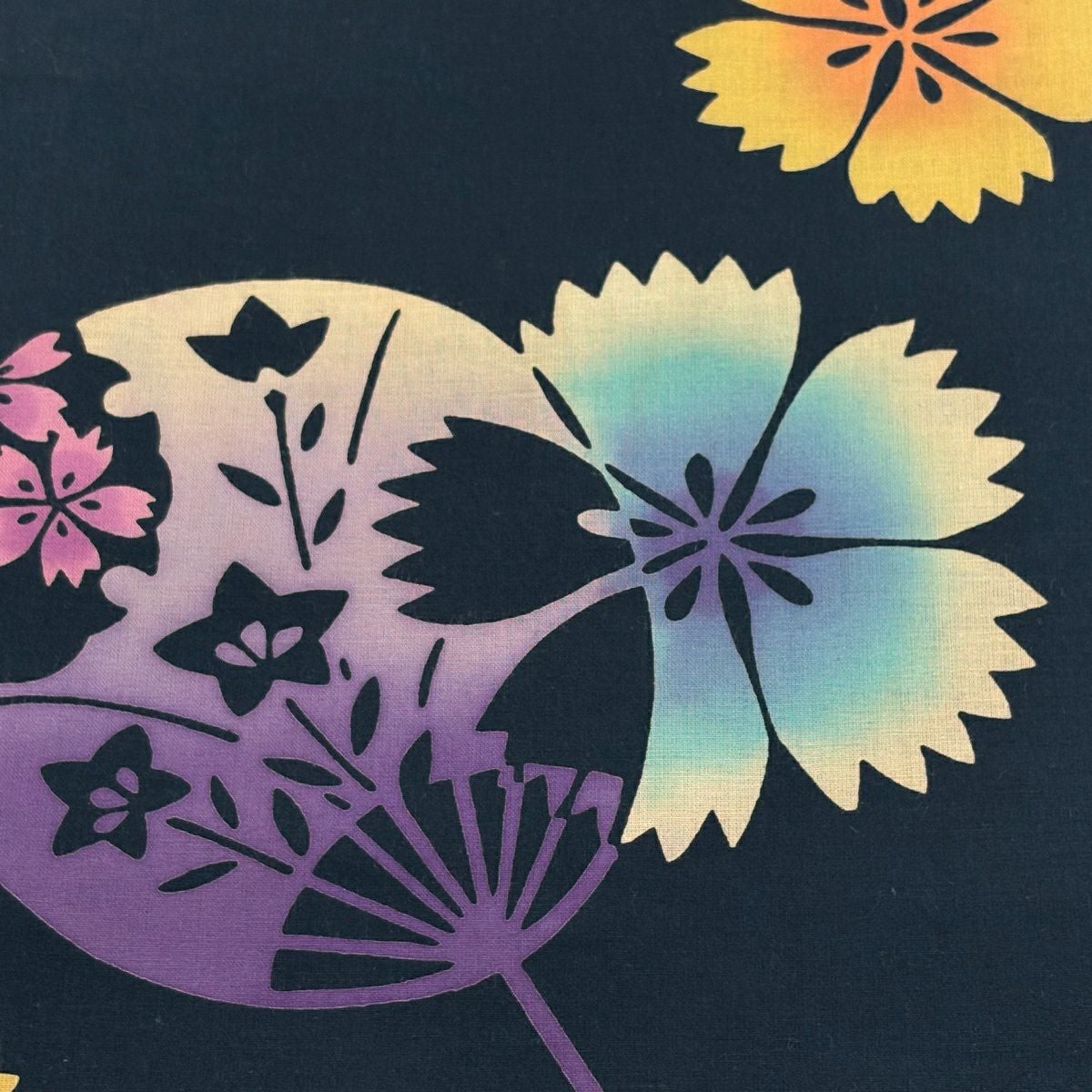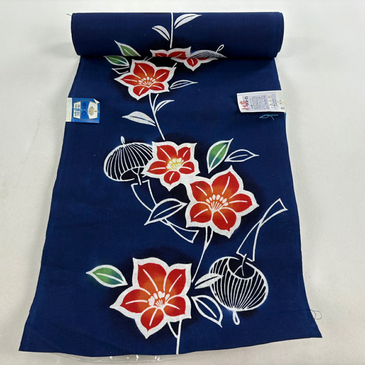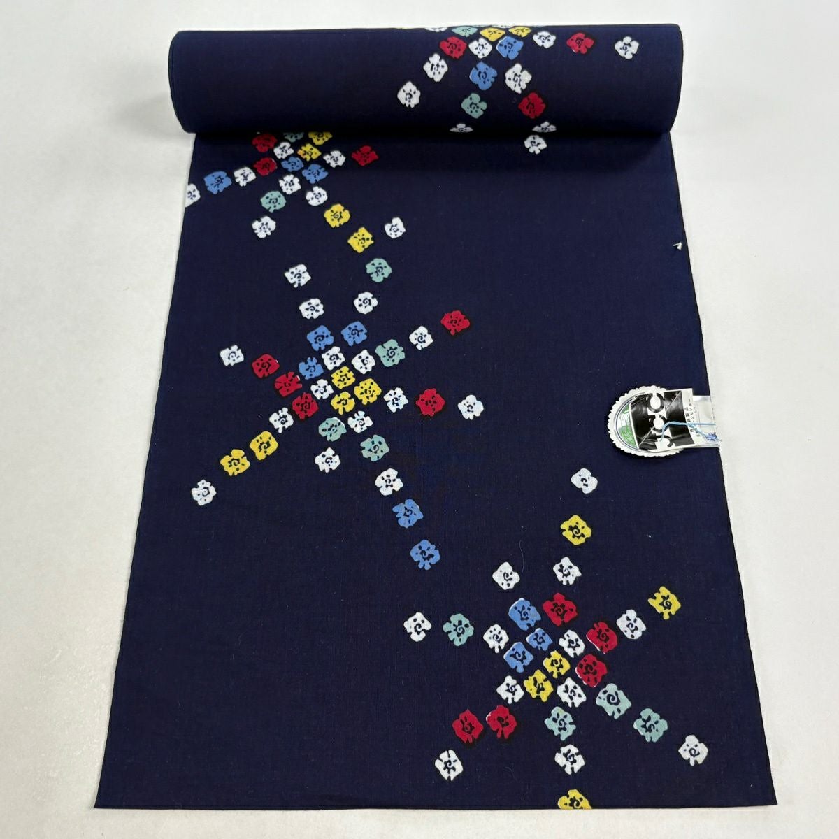 反物 優品 浴衣 花 幾何学 濃紺 綿