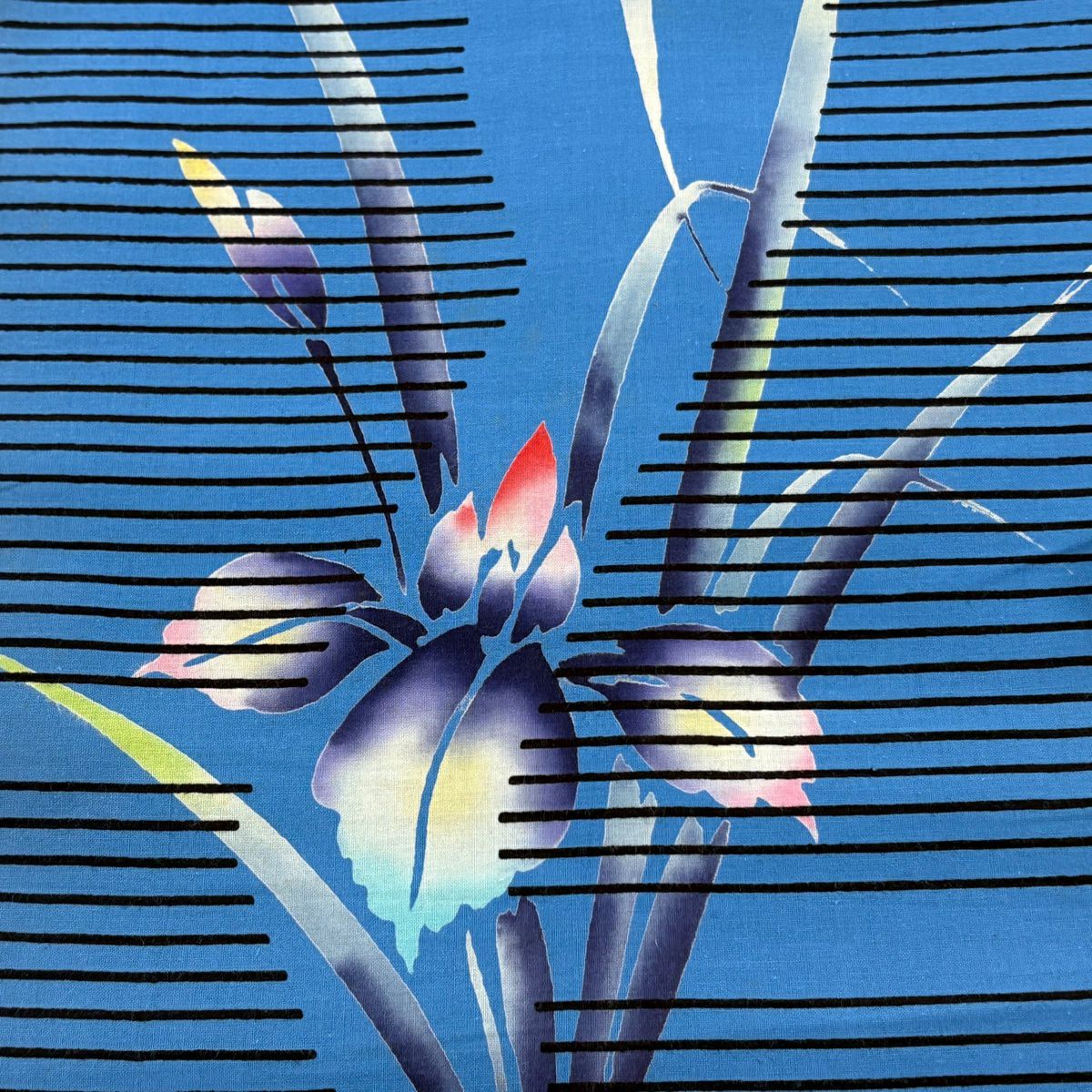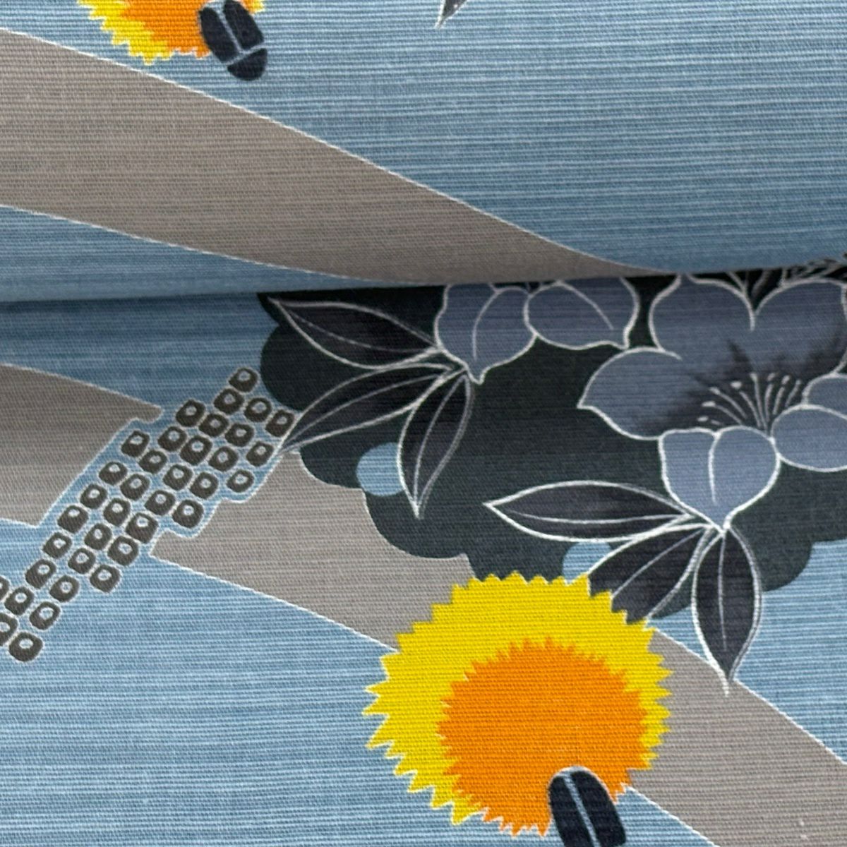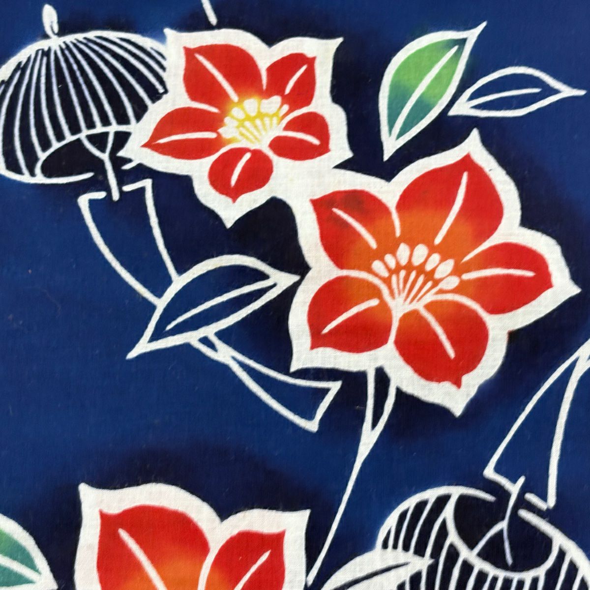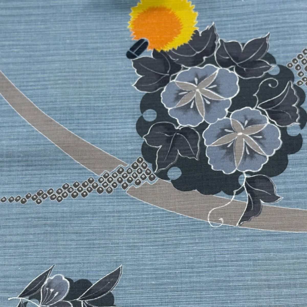 反物 優品 浴衣 風鈴 草花 紺色 綿