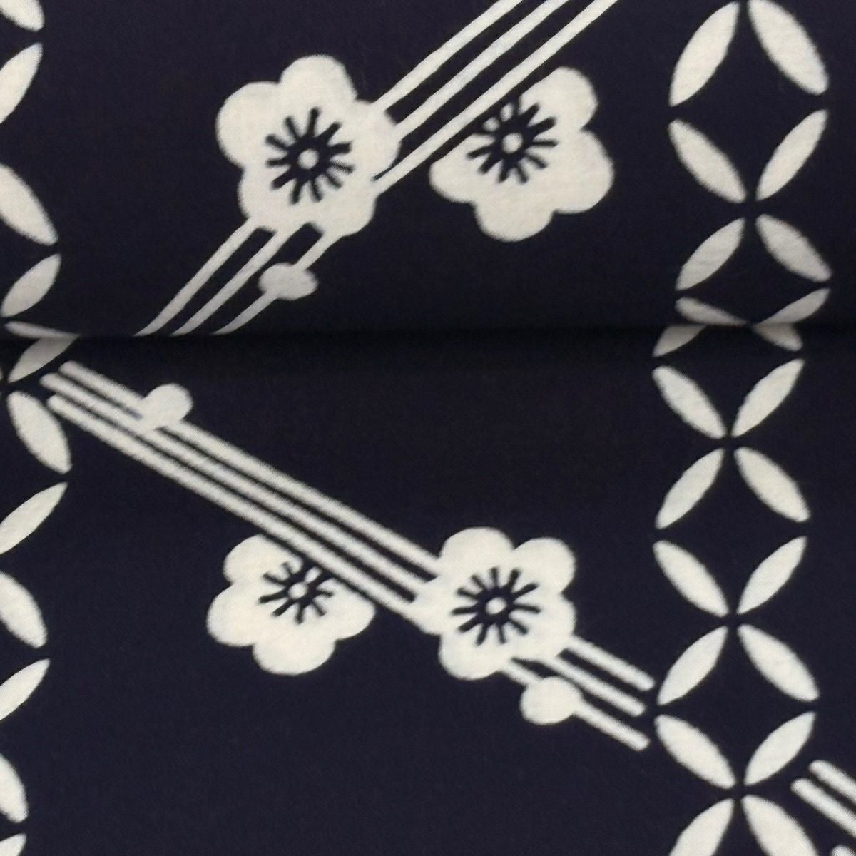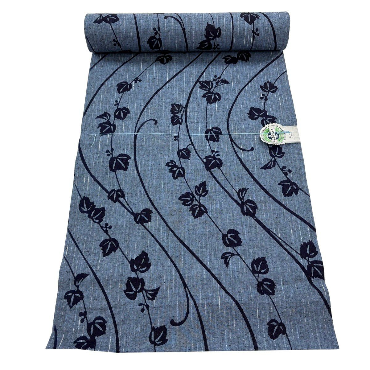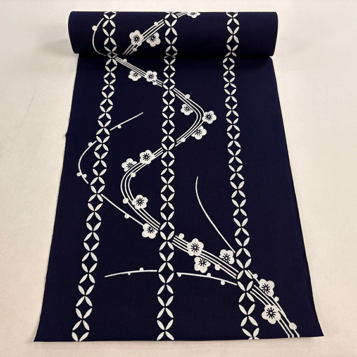 反物 優品 浴衣 梅 麻の葉 濃紺 綿