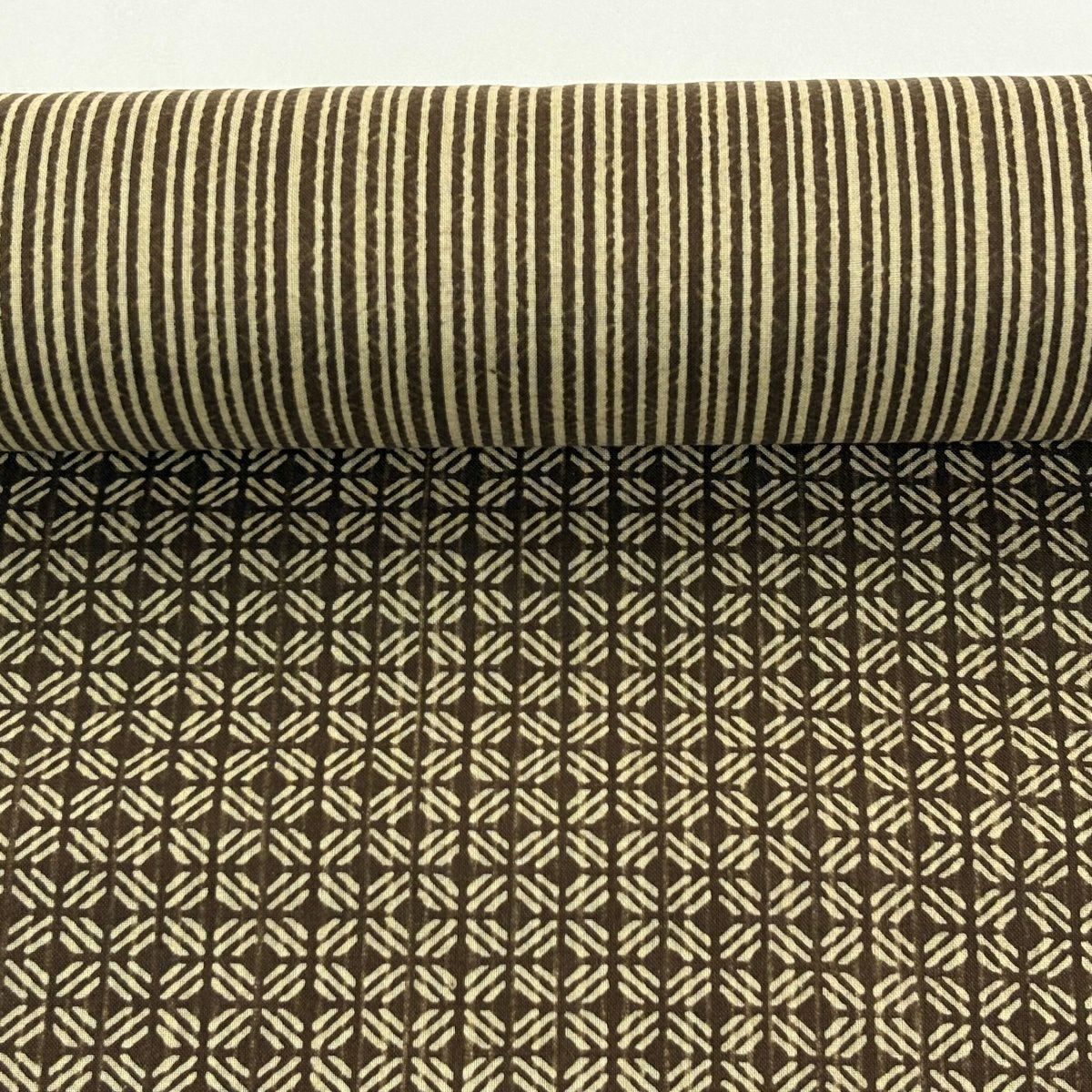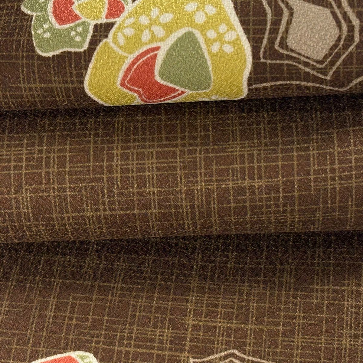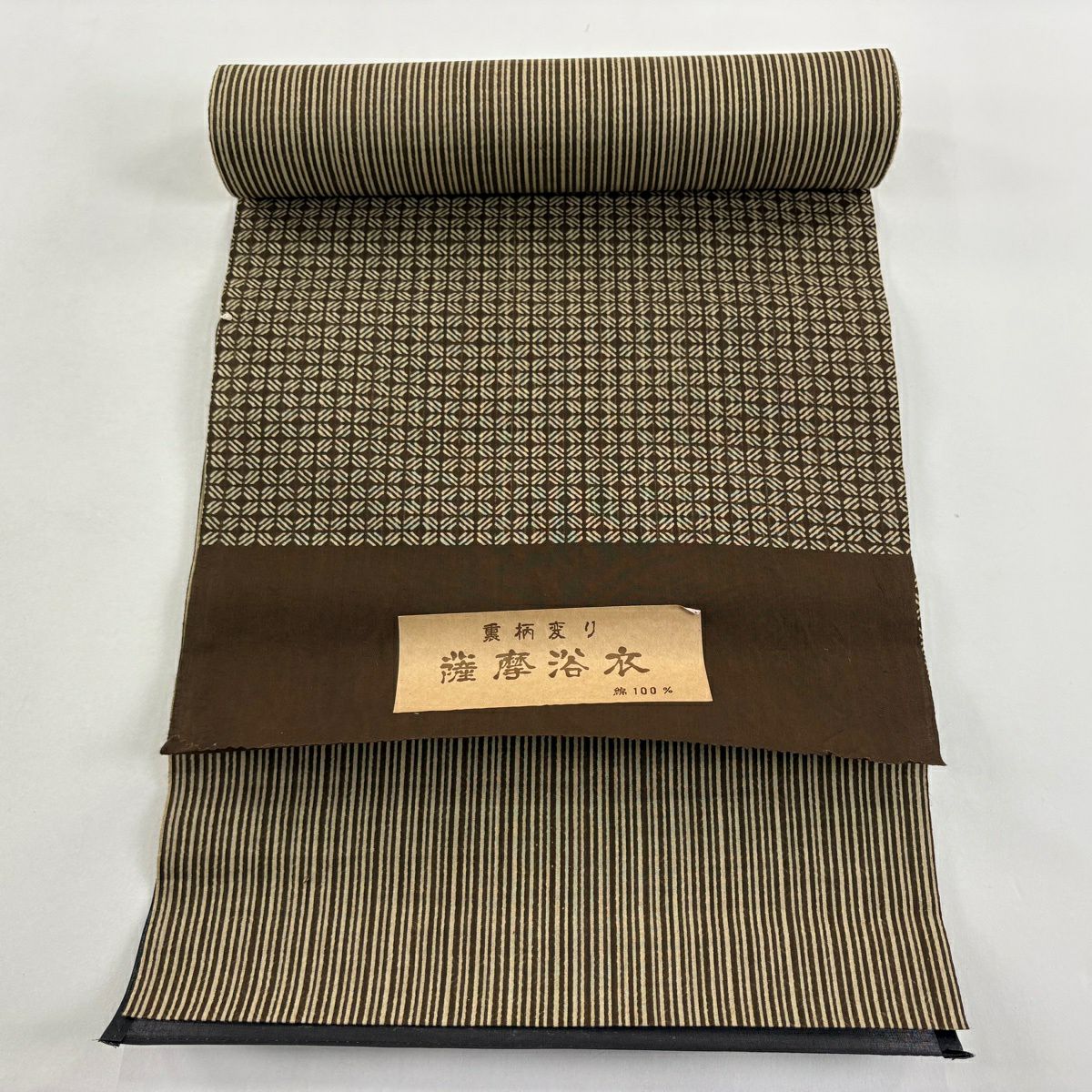 反物 優品 浴衣 幾何学 縞 茶色 綿