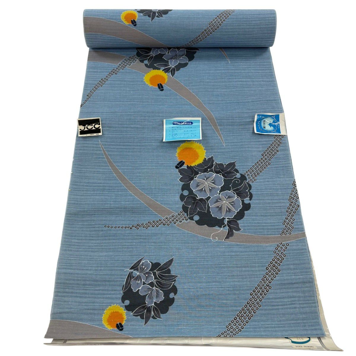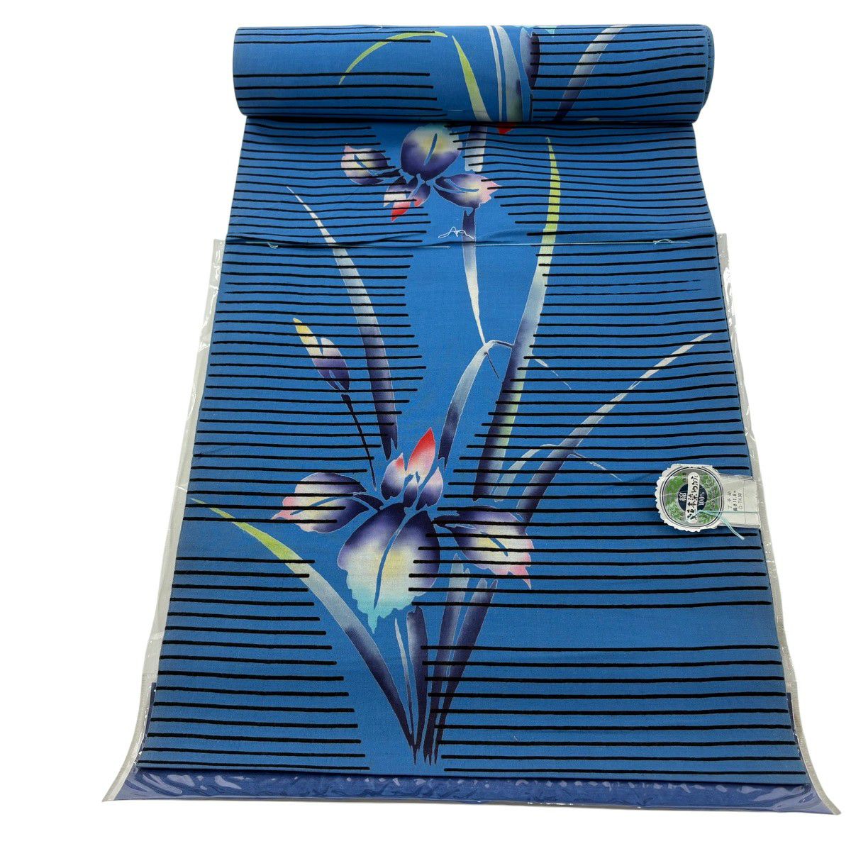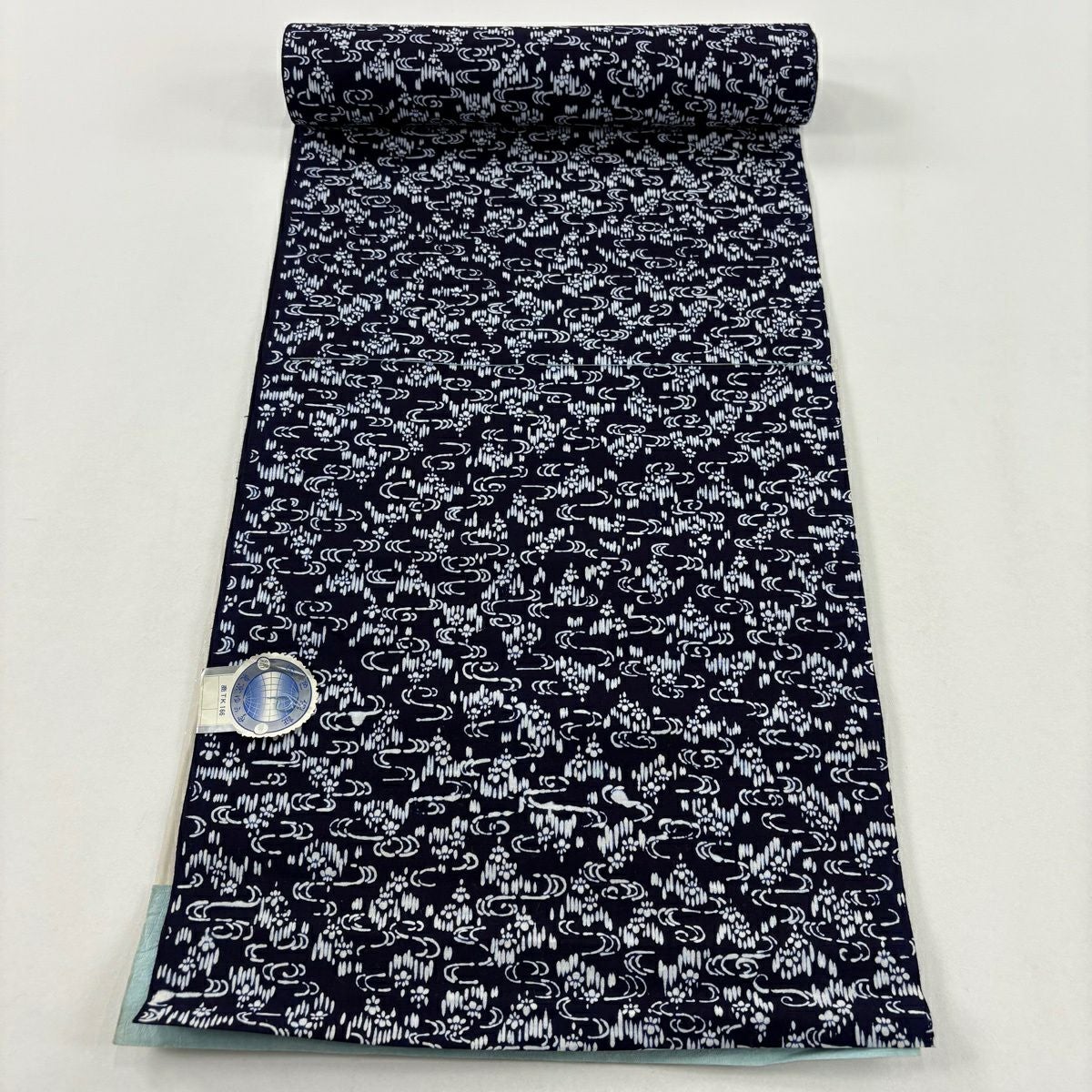 反物 優品 浴衣 草花 流水 濃紺 綿