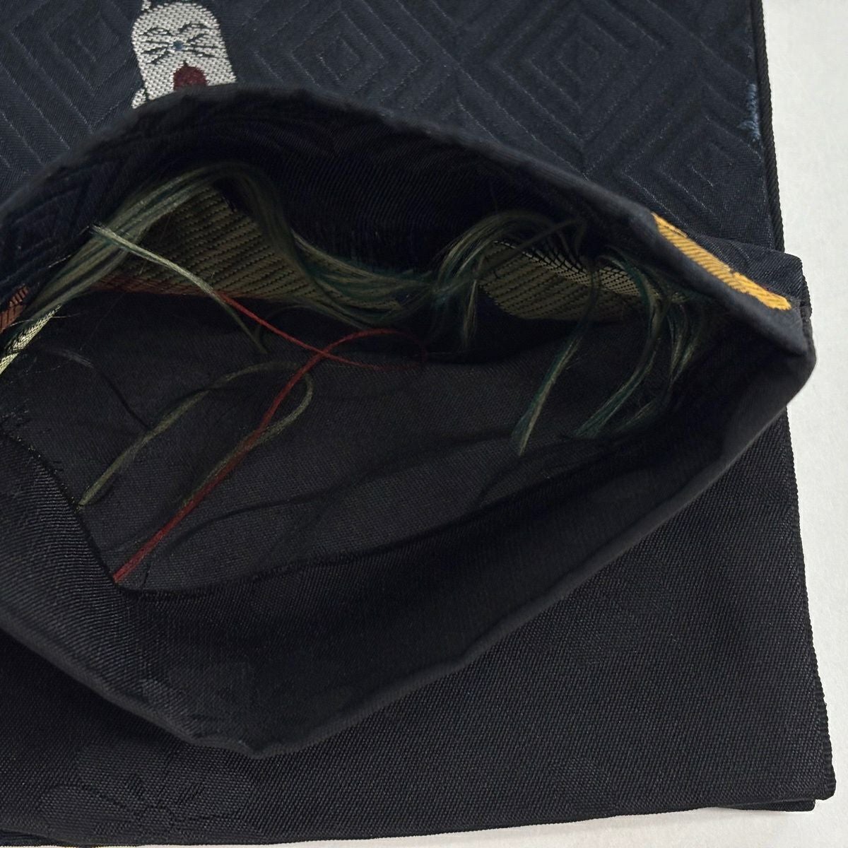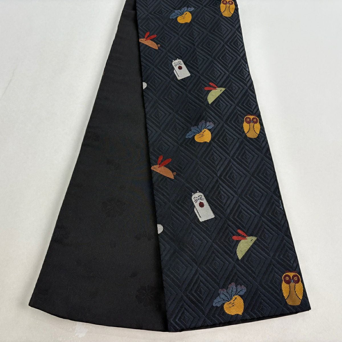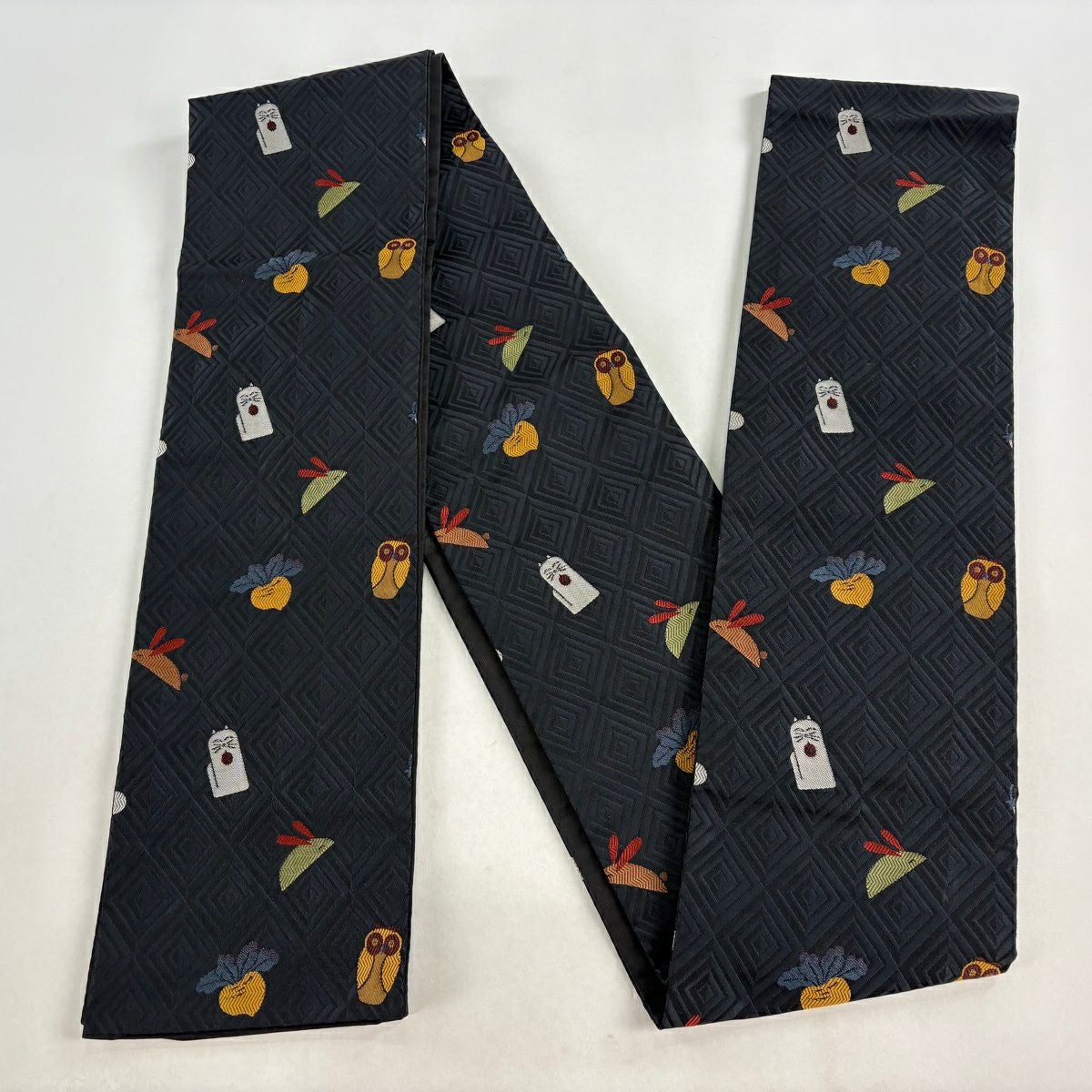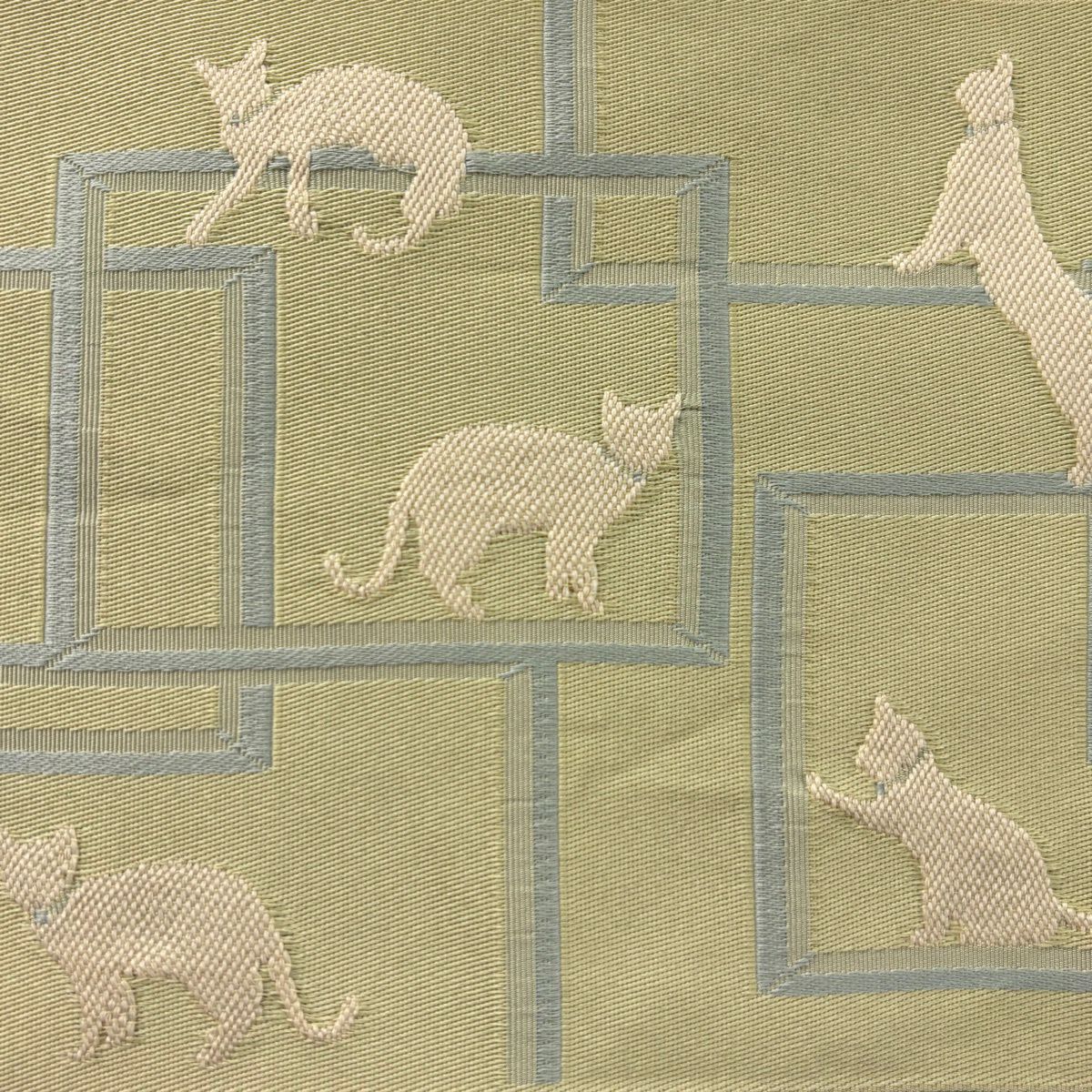 半幅帯 優品 猫 幾何学 抹茶色 化繊