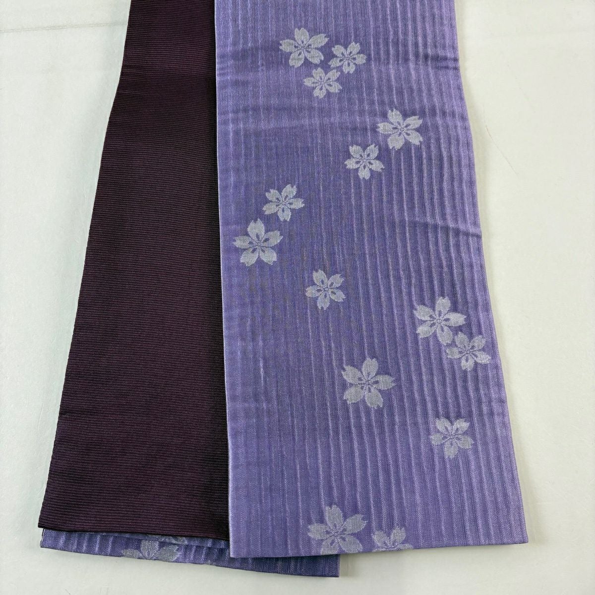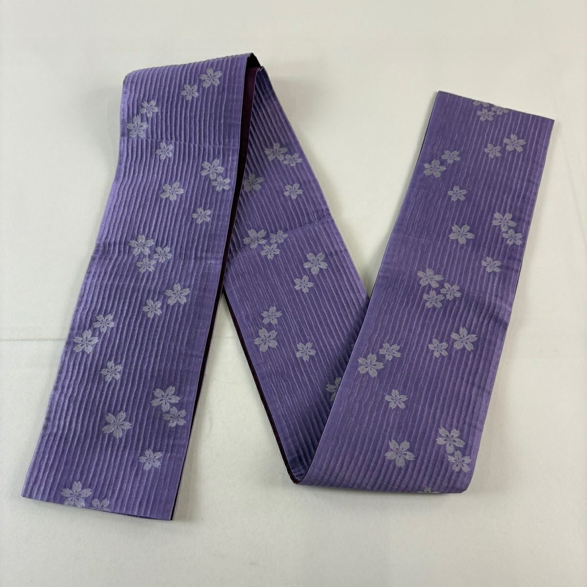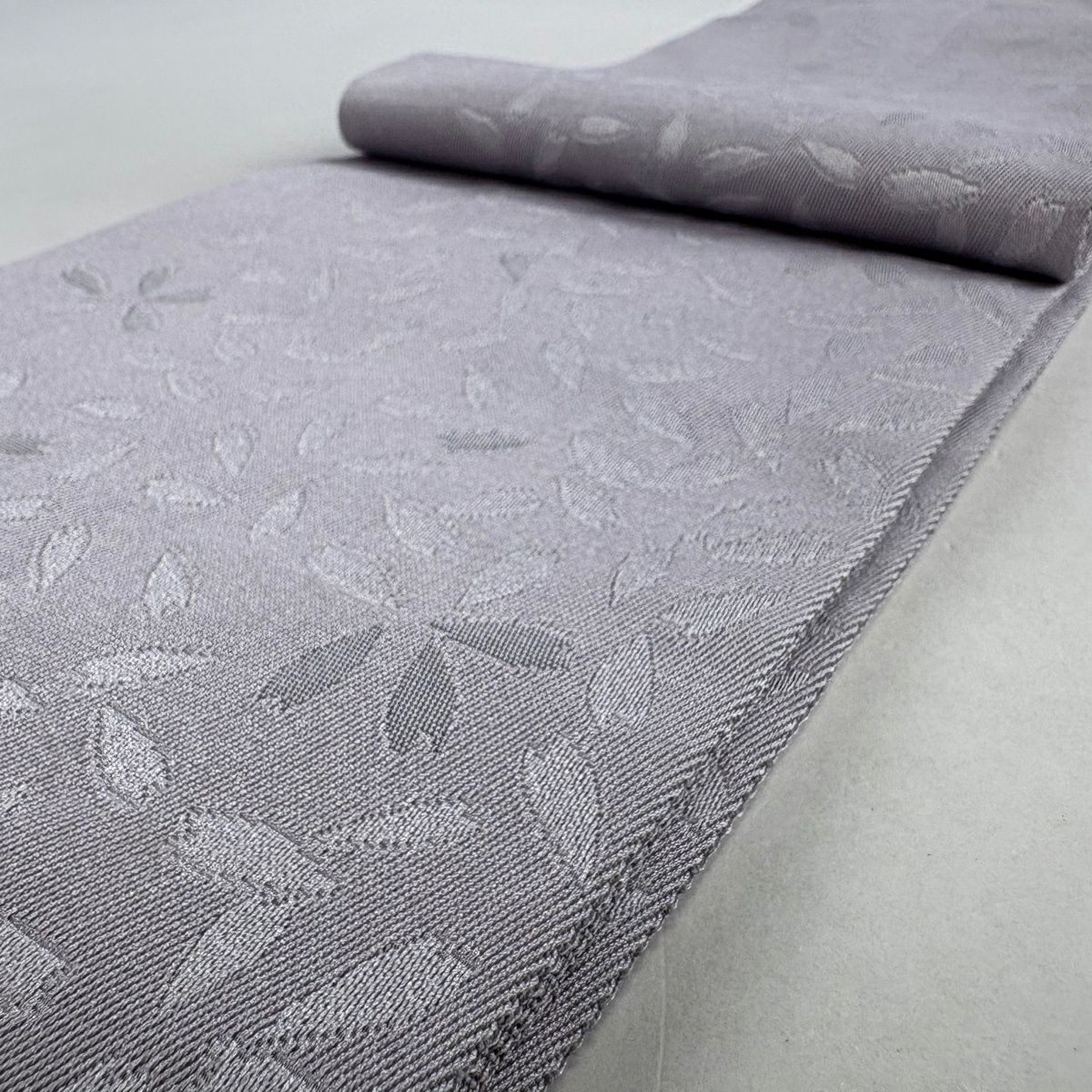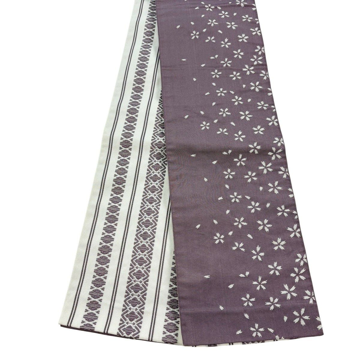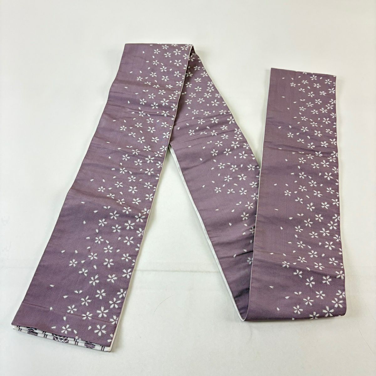 半幅帯 優品 桜 花びら 灰紫 化繊