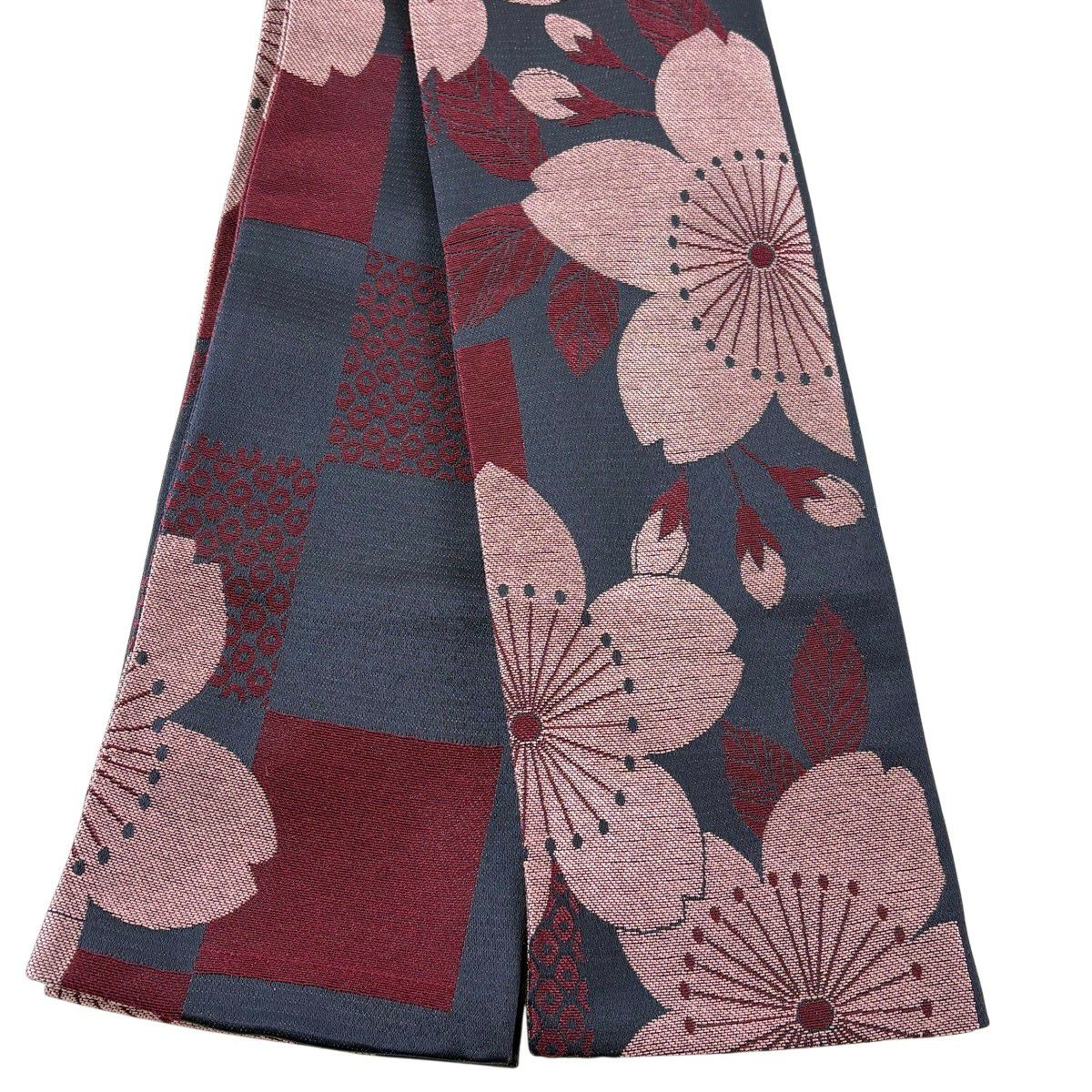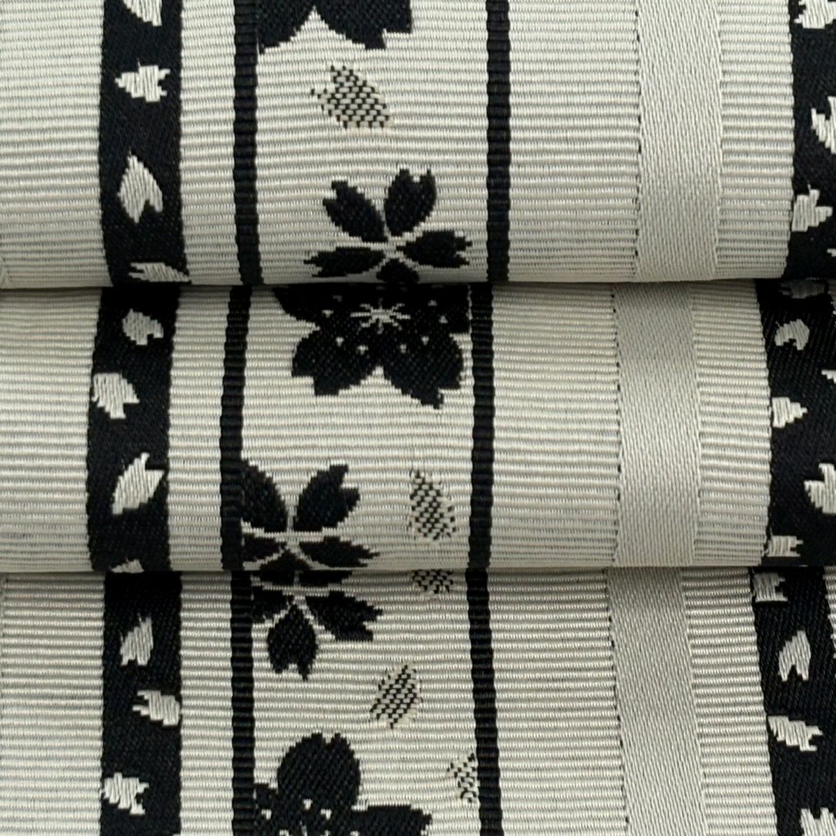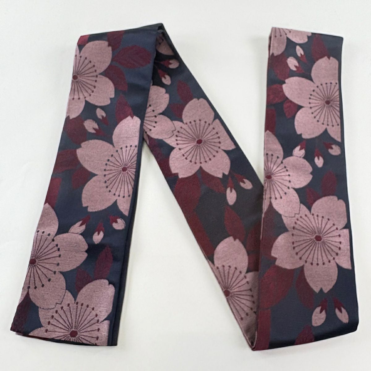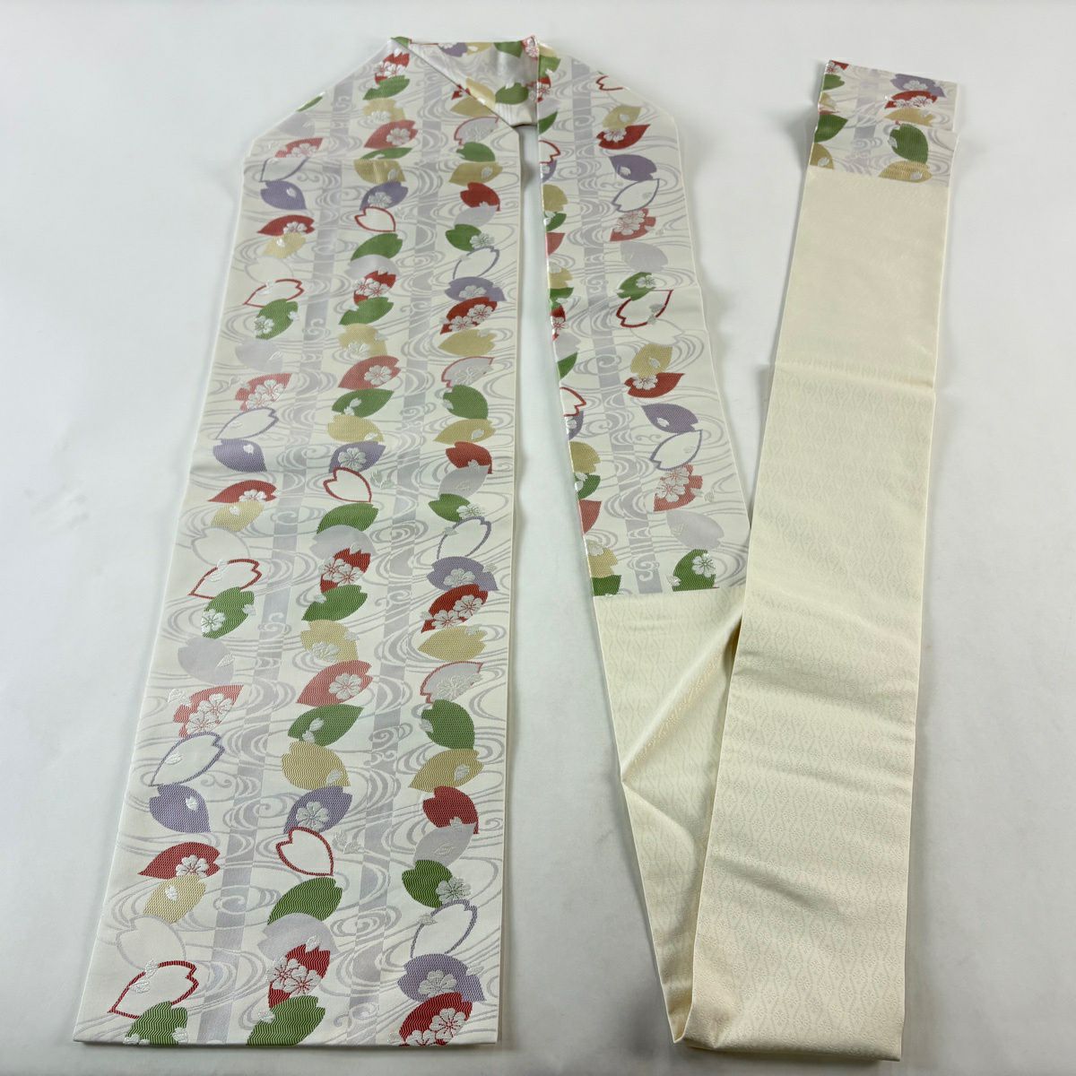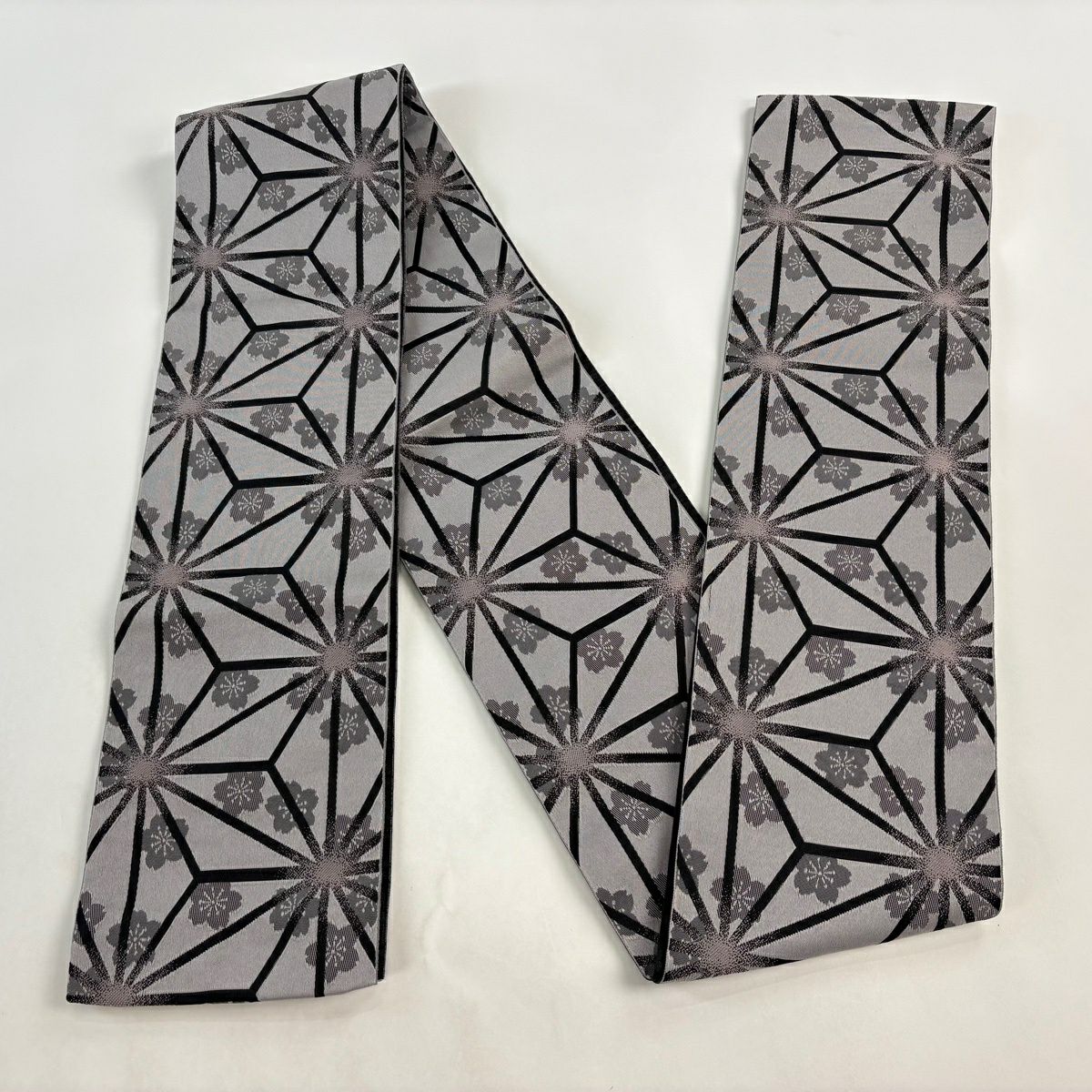 半幅帯 優品 桜 花びら 灰紫 化繊