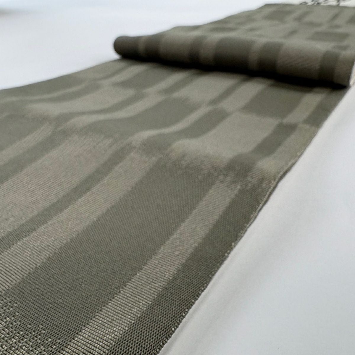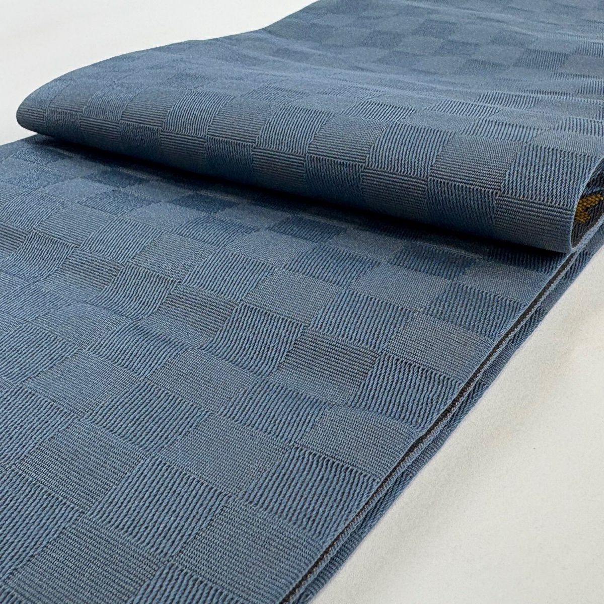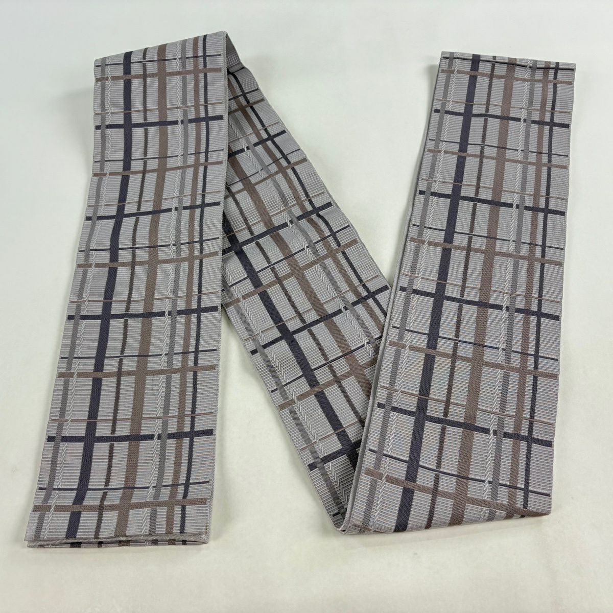 【美品】半幅帯 優品 格子 灰紫 化繊