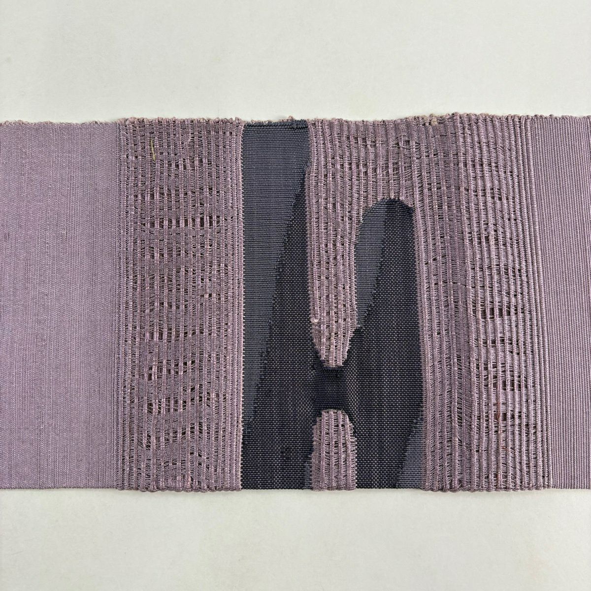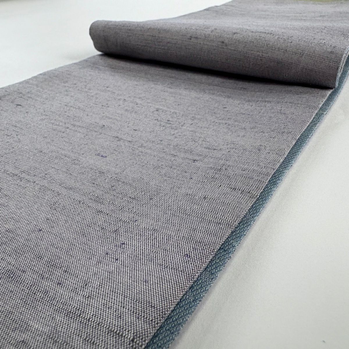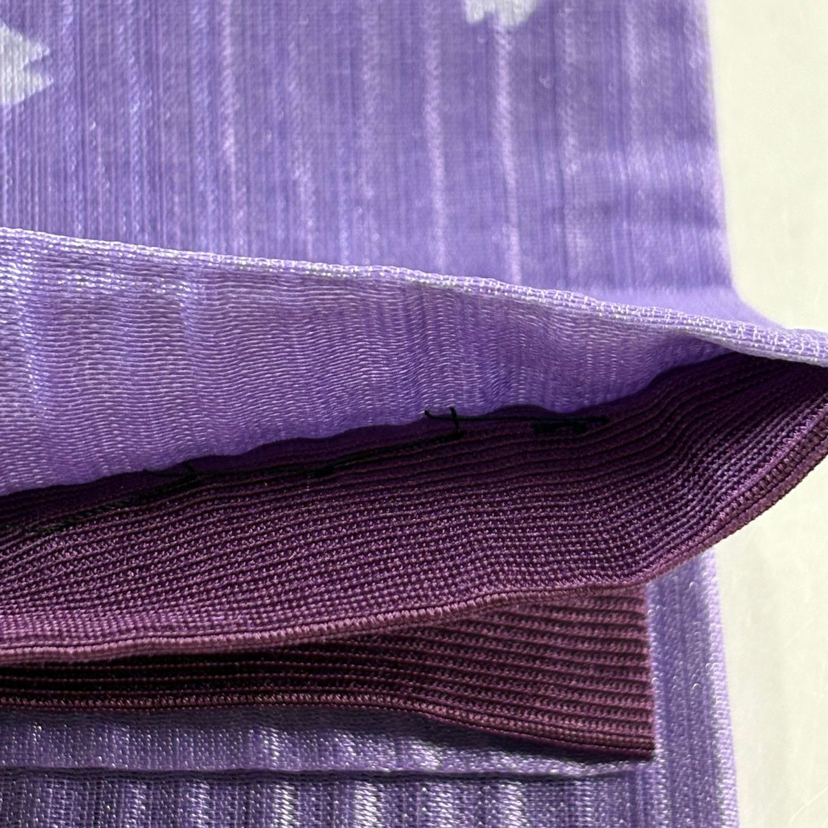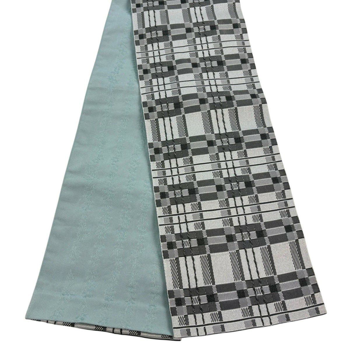 【美品】半幅帯 優品 格子 灰紫 化繊