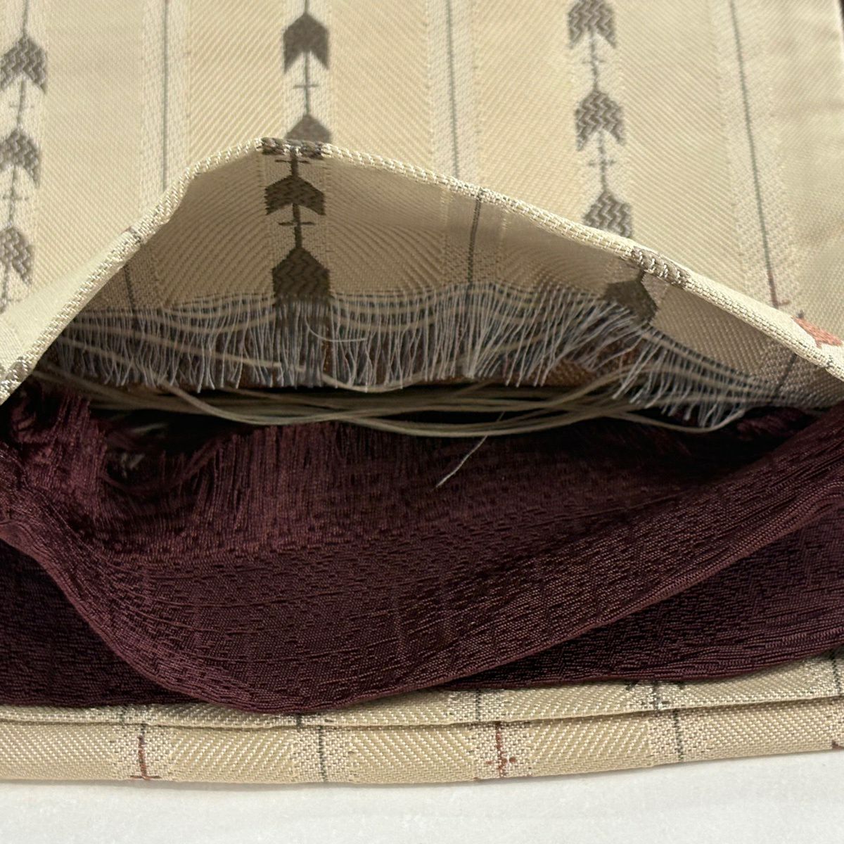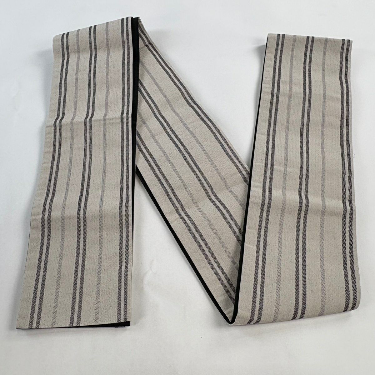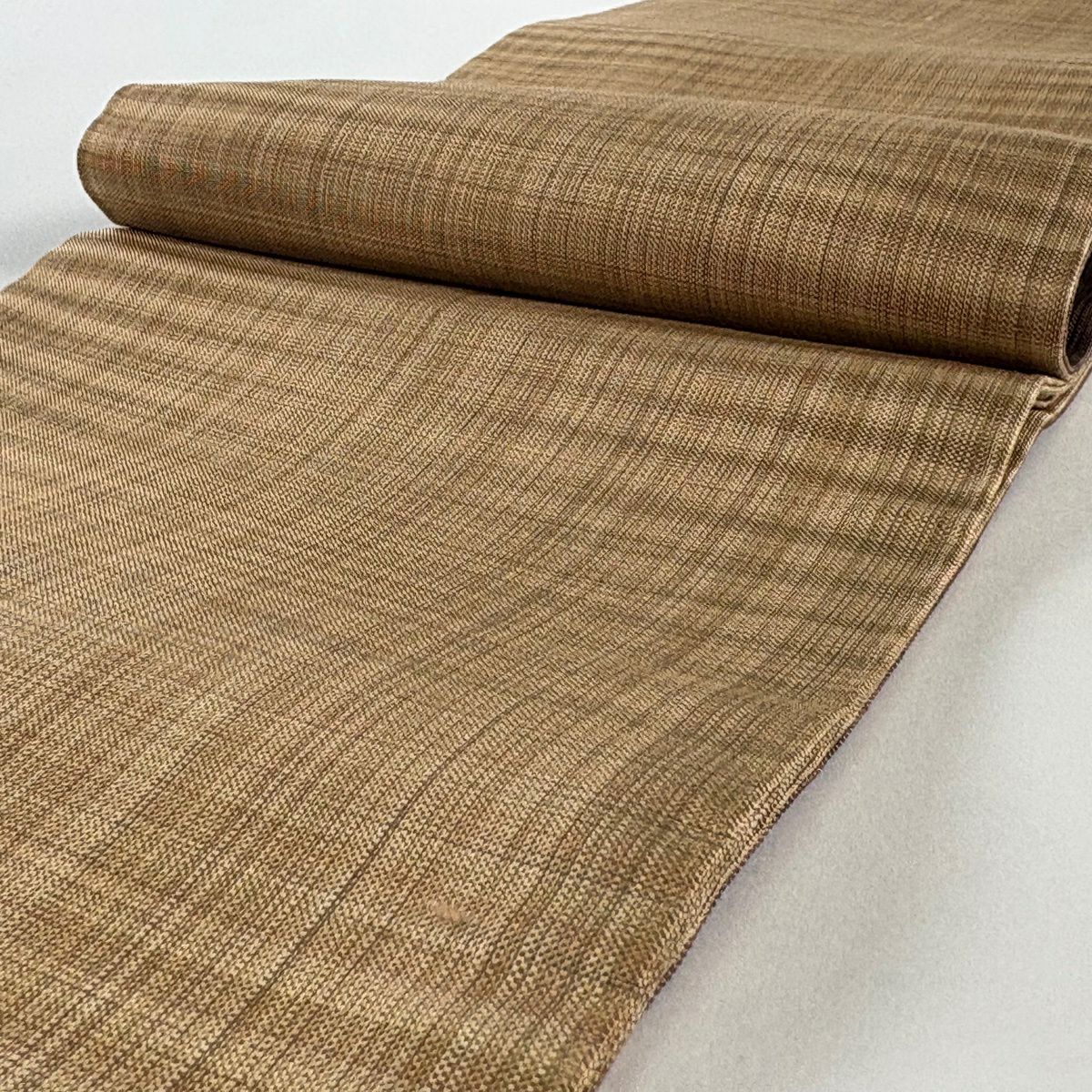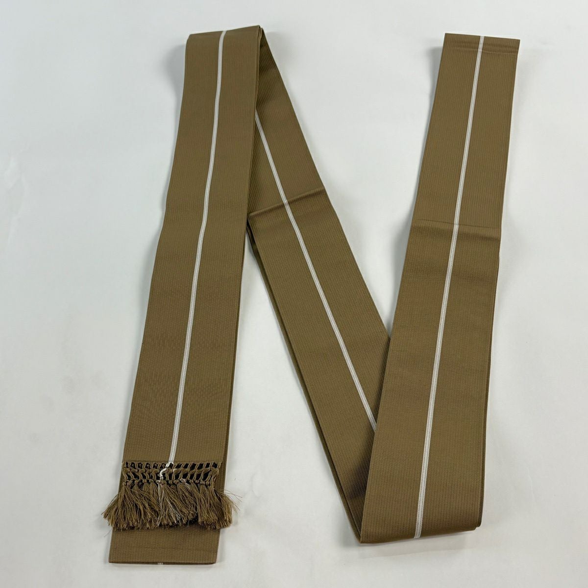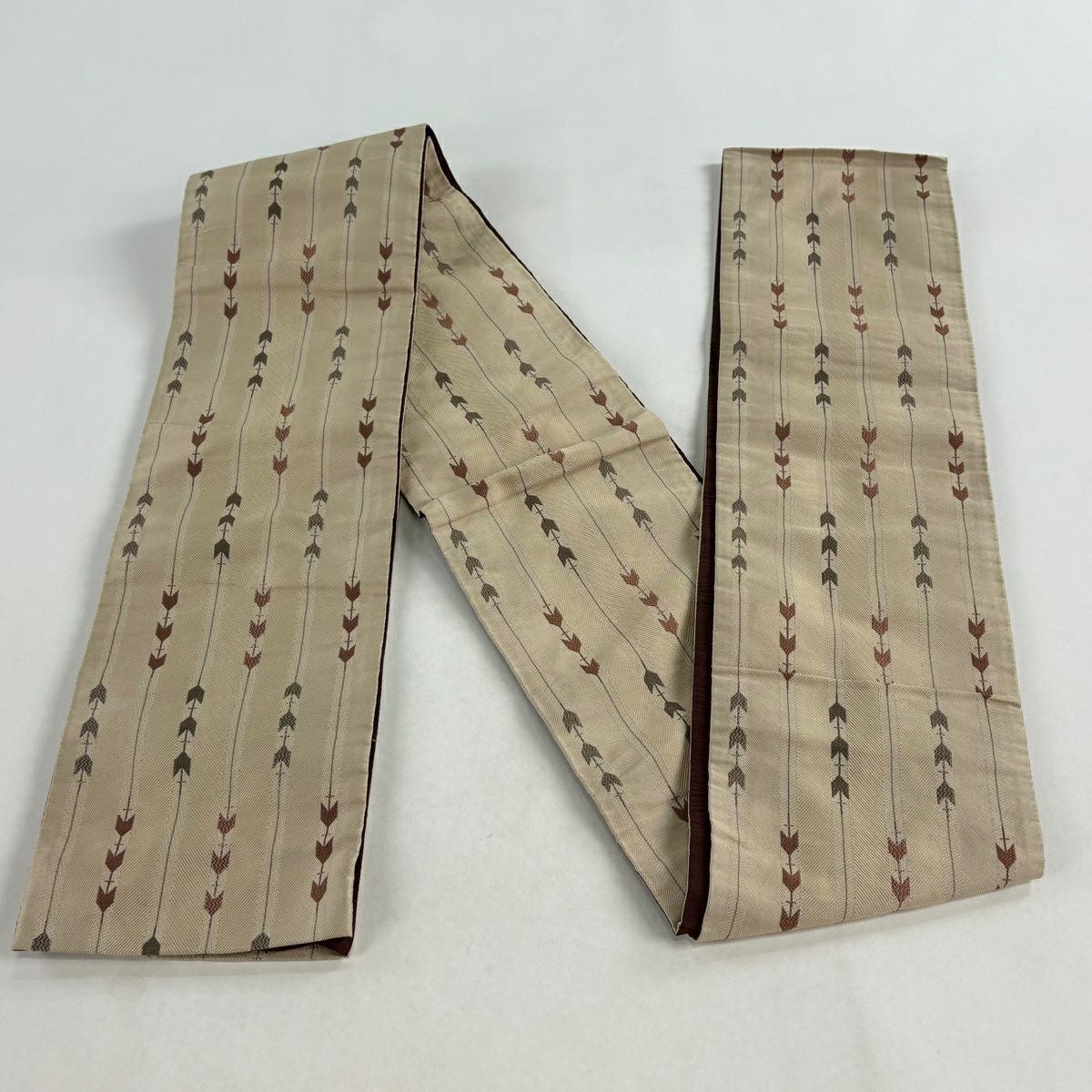半幅帯 優品 矢羽根 縞 薄茶色 化繊