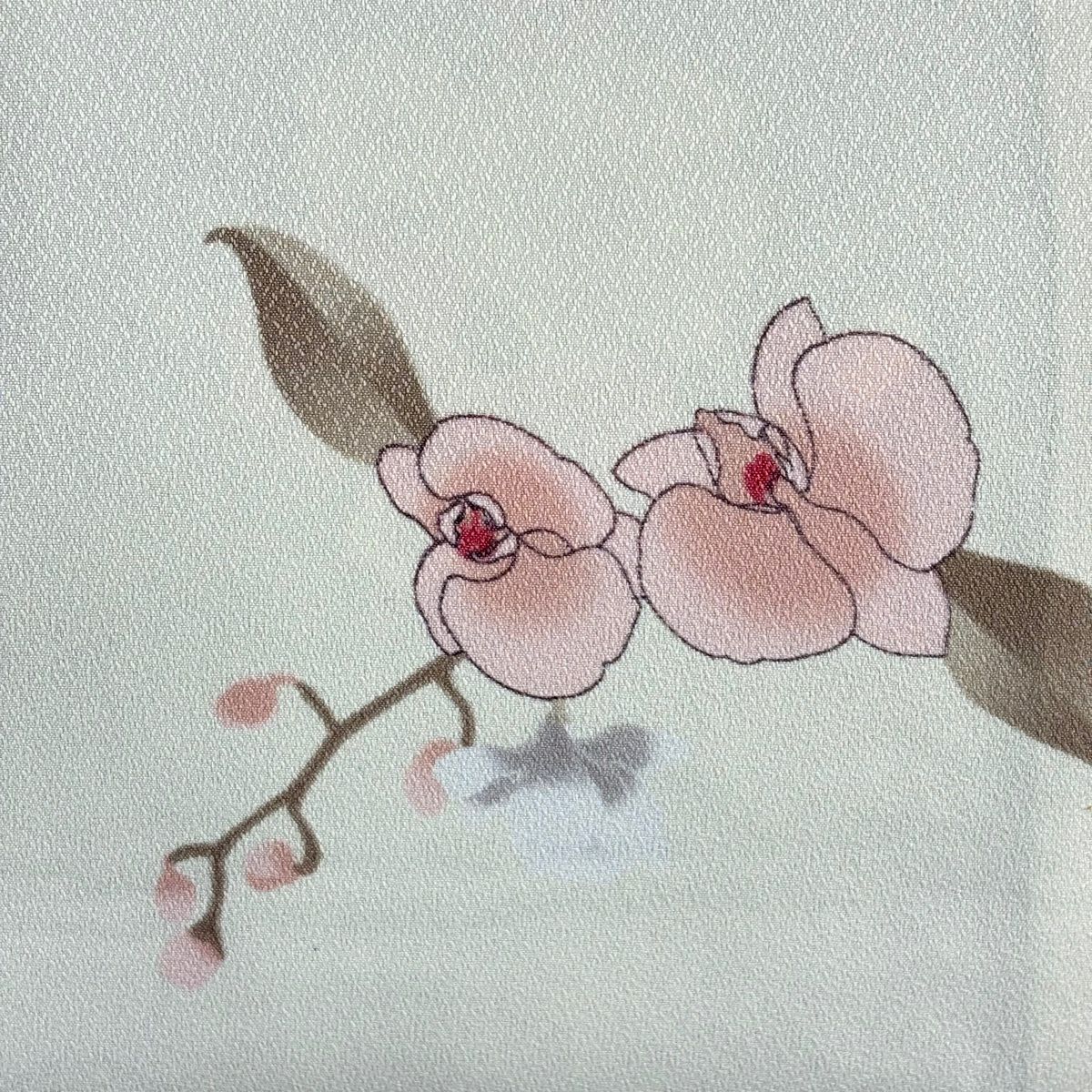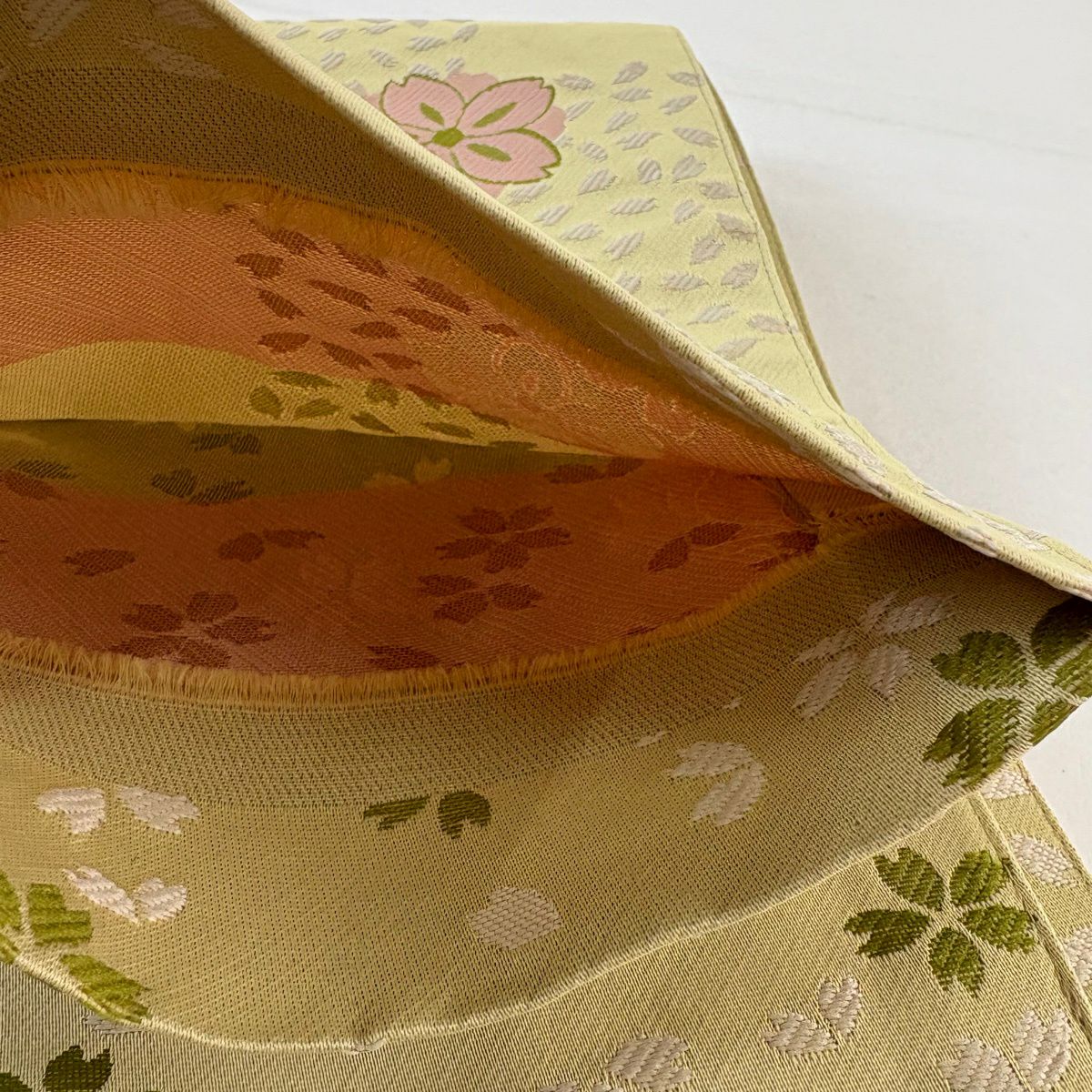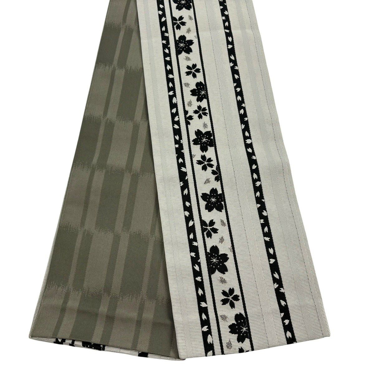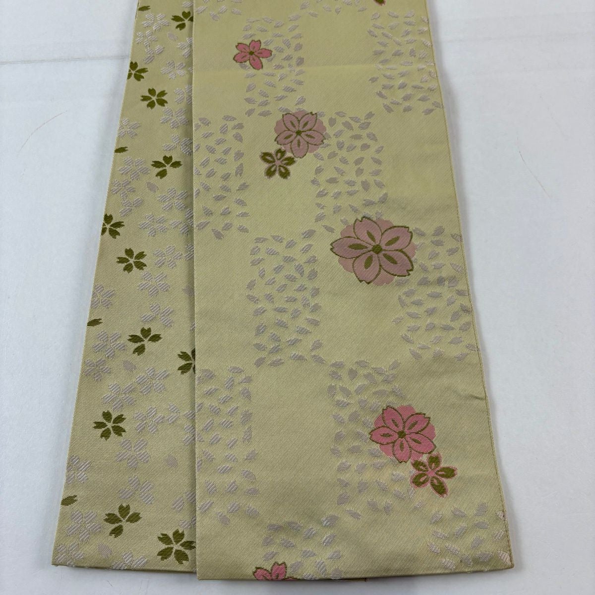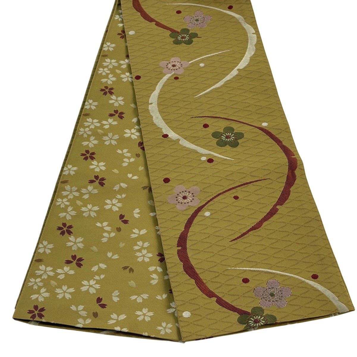 半幅帯 優品 桜 花びら 抹茶色 化繊
