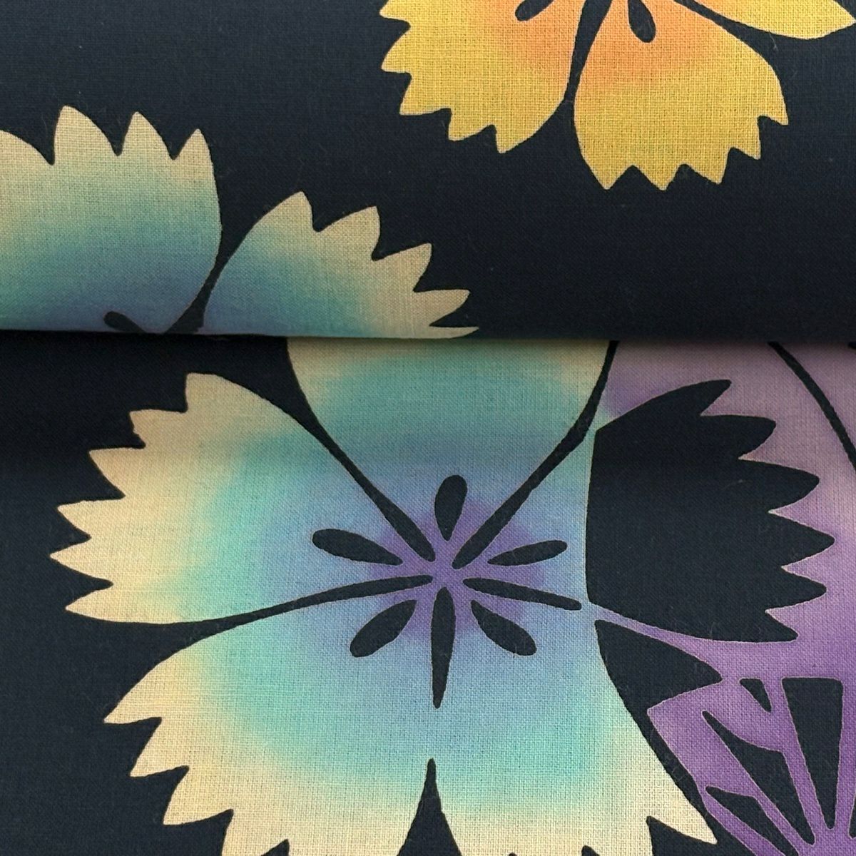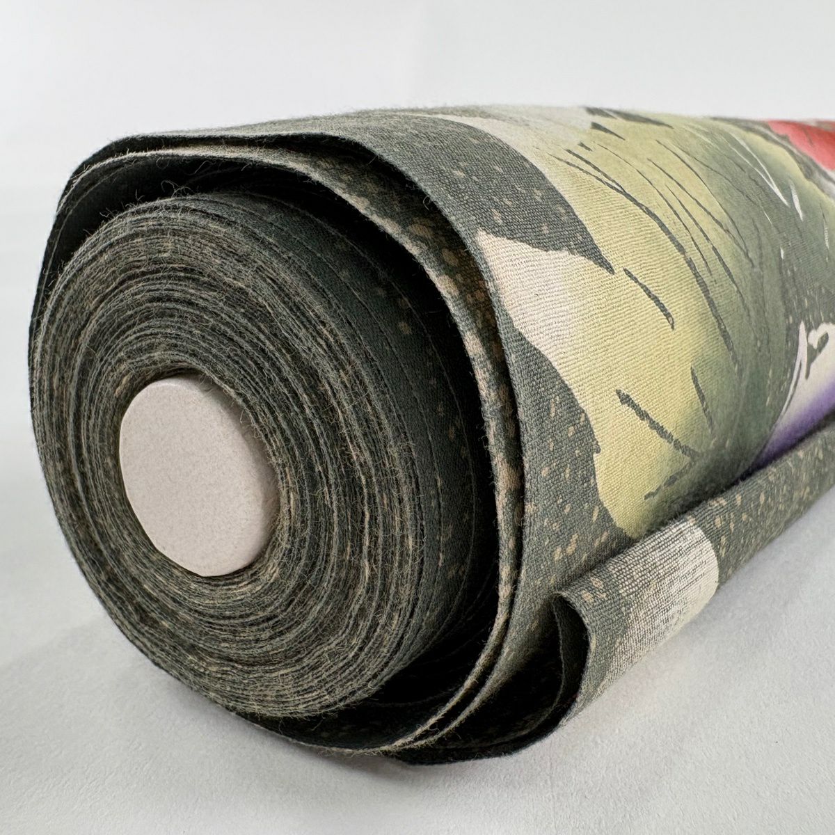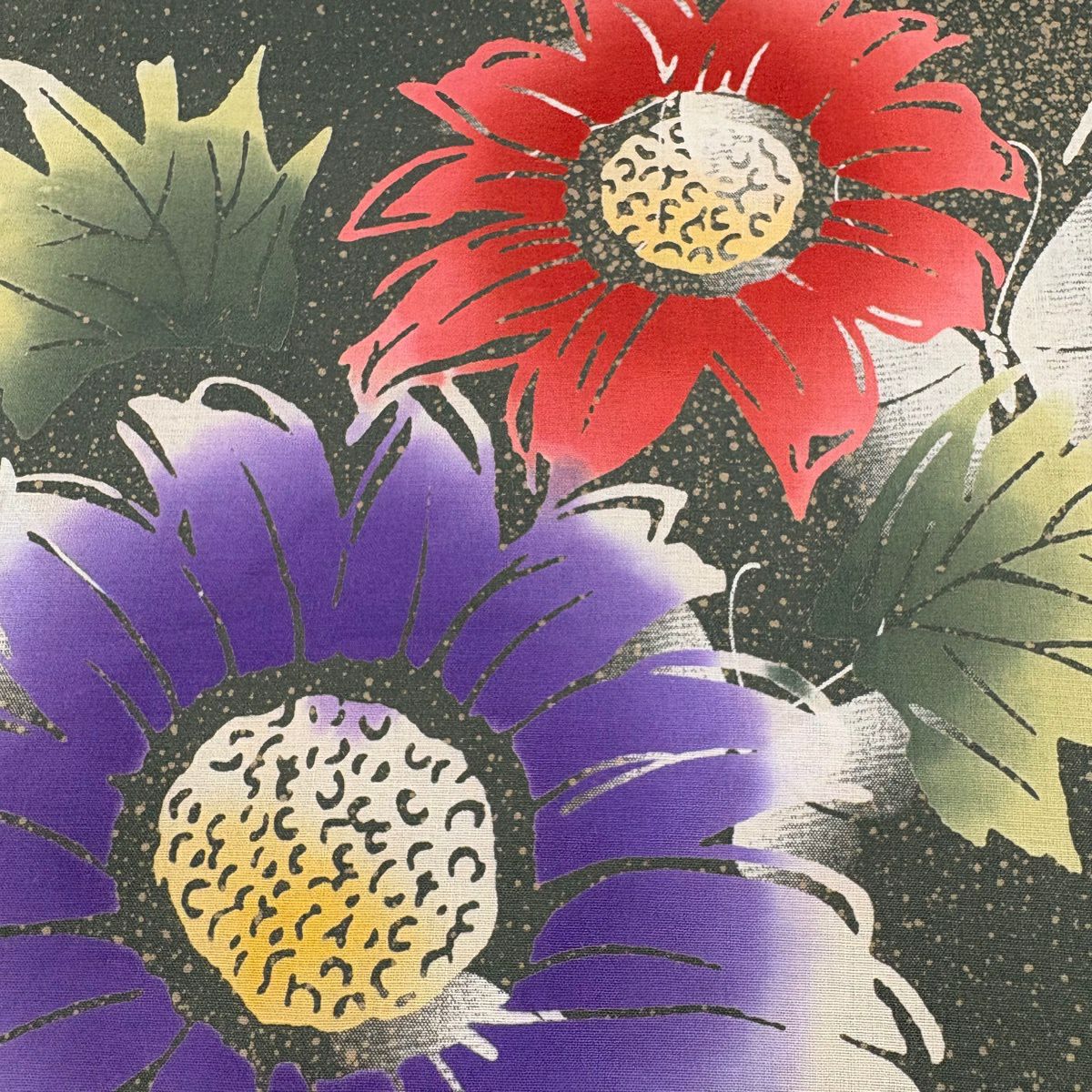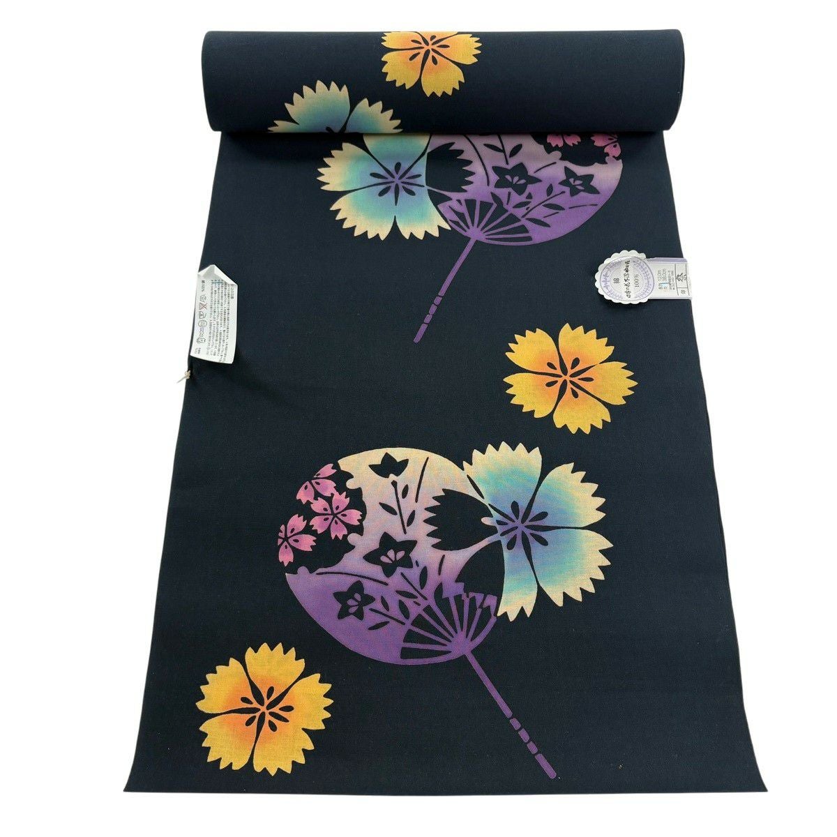 反物 優品 浴衣 団扇 草花 墨色 綿
