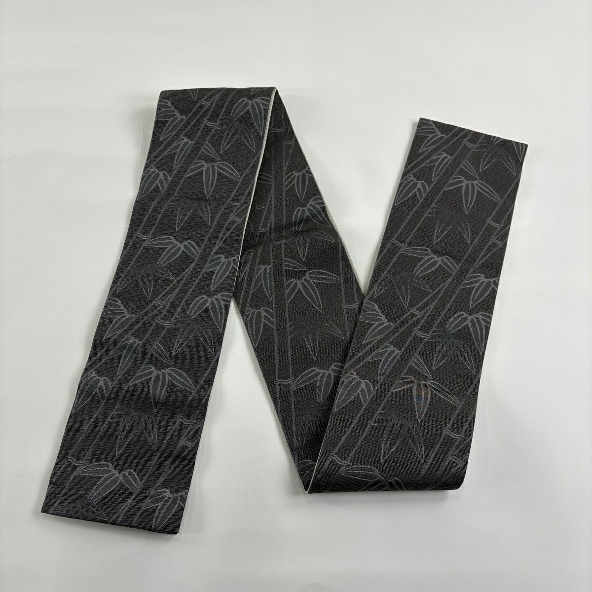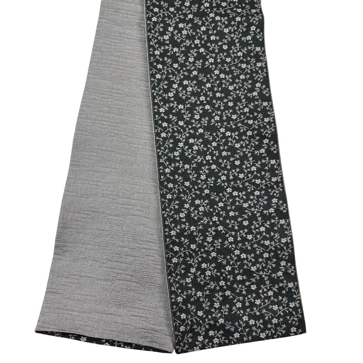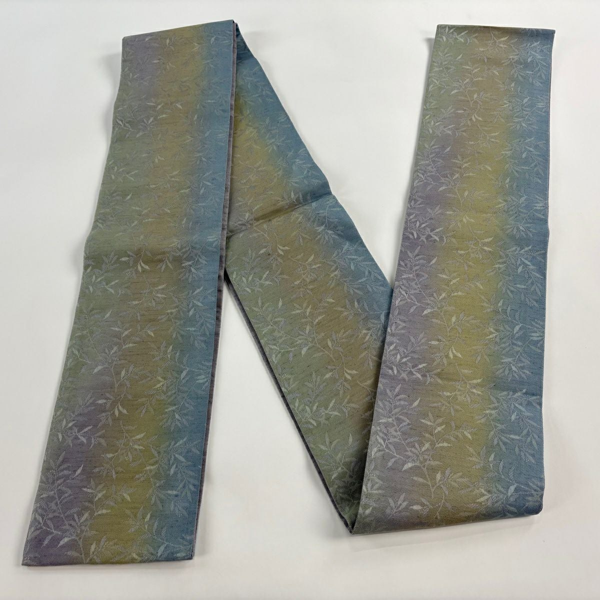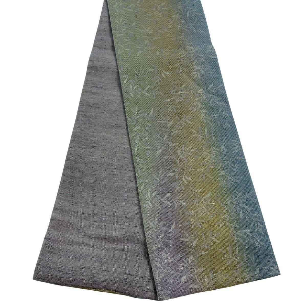 【美品】半幅帯 優品 葉柄 灰緑 化繊