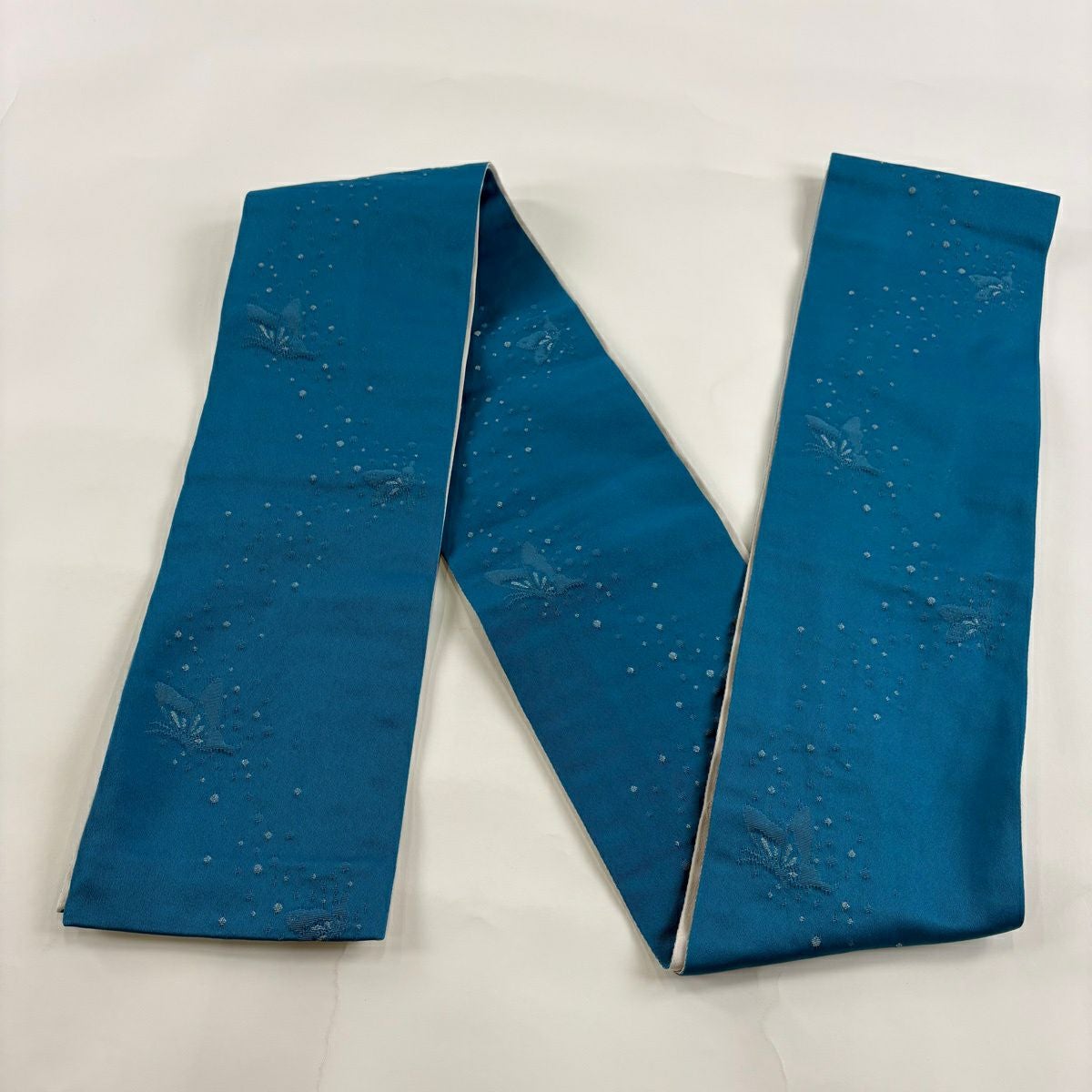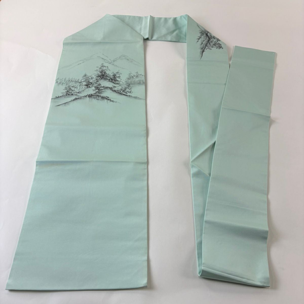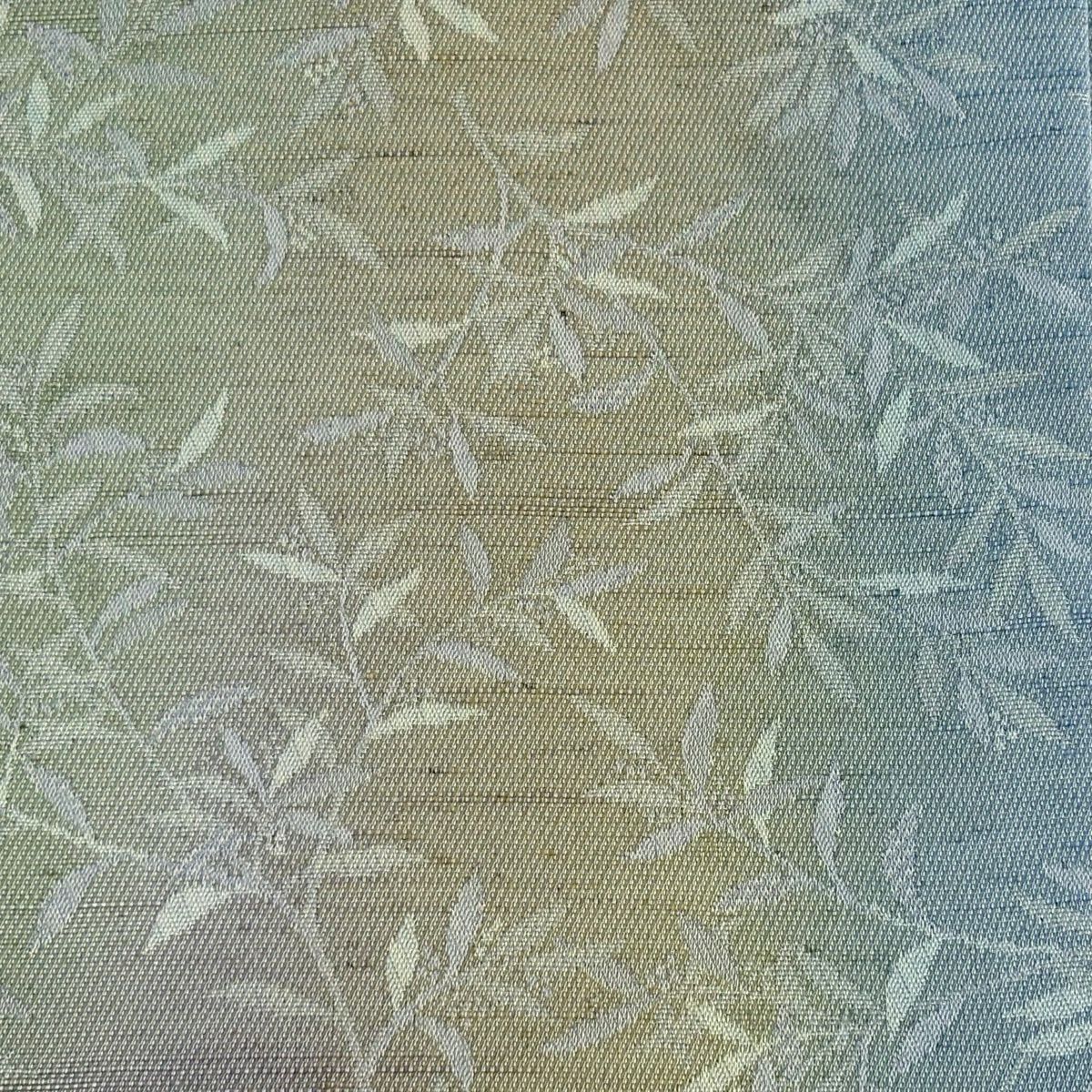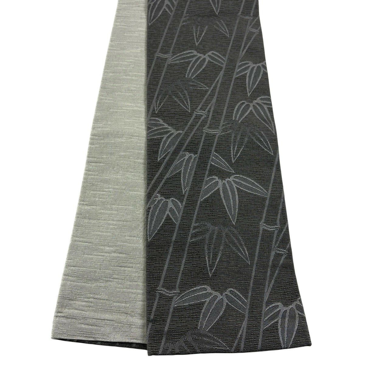【美品】半幅帯 優品 葉柄 灰緑 化繊